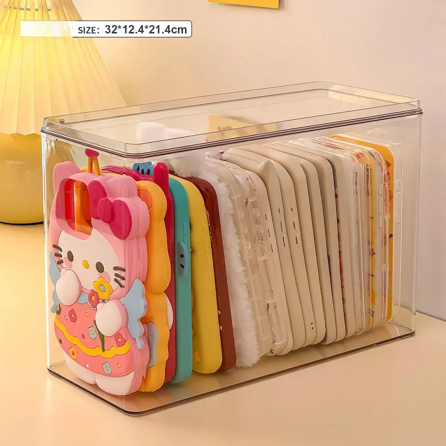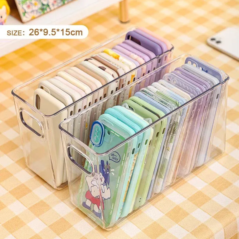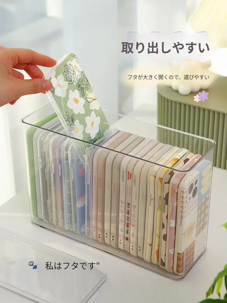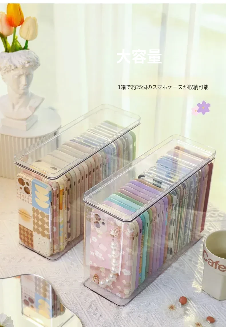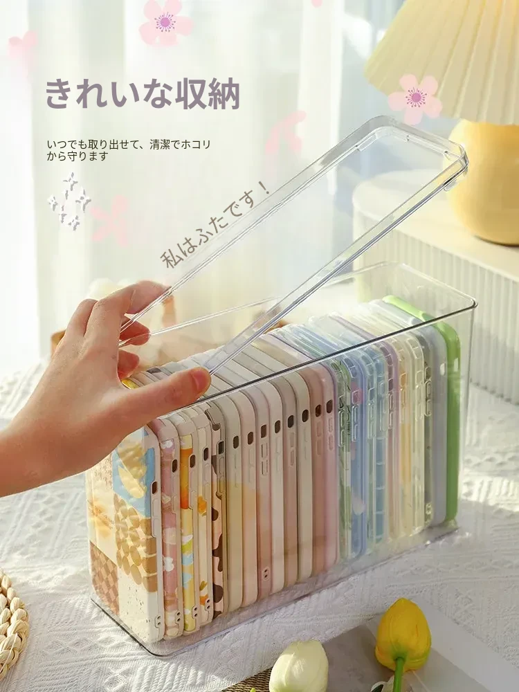 防塵透明アクリル収納ボックス - 蓋付きで大容量!多機能ハンドル付き整理ボックス、スマホケースや小物の整理に最適です。あなたの生活空間をスッキリ整えましょう!