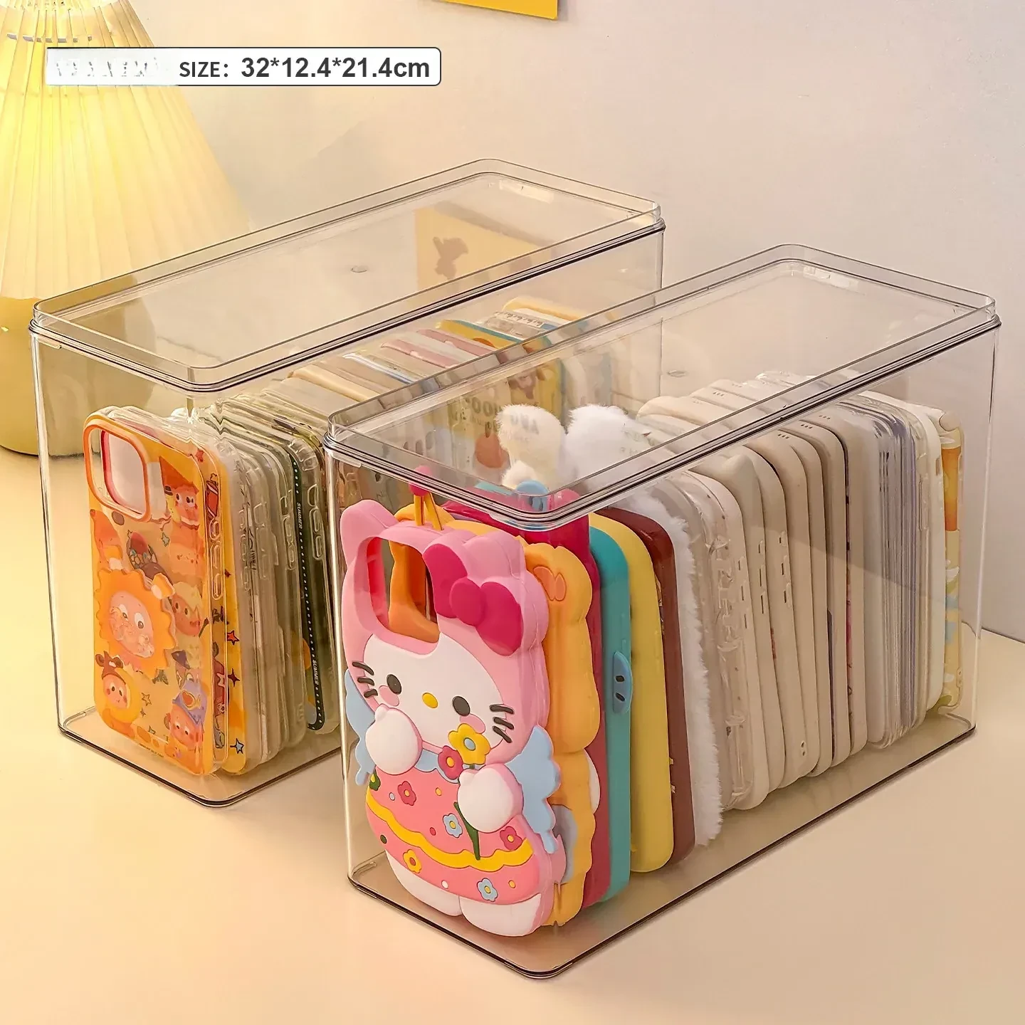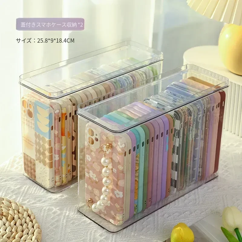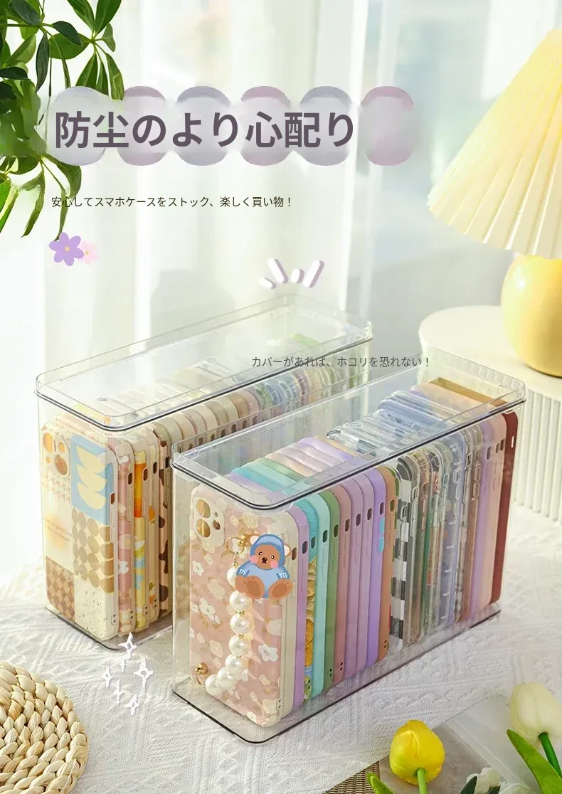 【2個入り-大きめ・幅広-異形スマホケース対応】フタ付き防塵スマホケース収納ボックス
