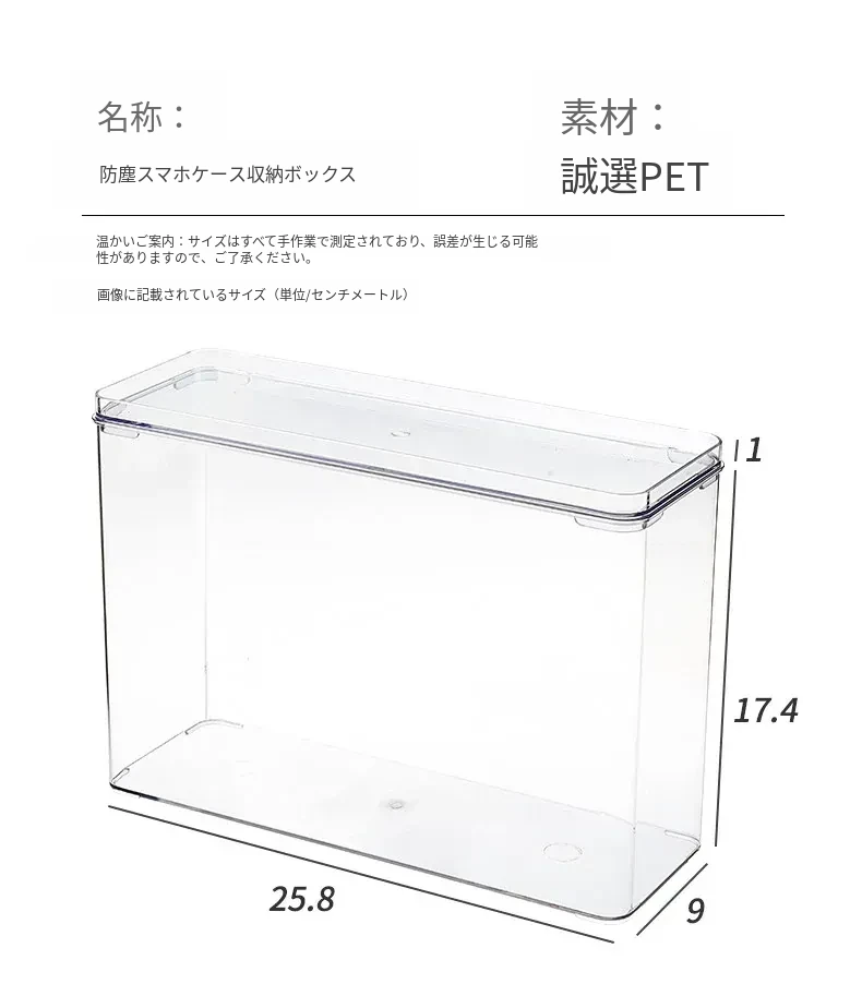 【1個入り-大きめ・幅広-異形スマホケース対応】フタ付き防塵スマホケース収納ボックス·SF1799