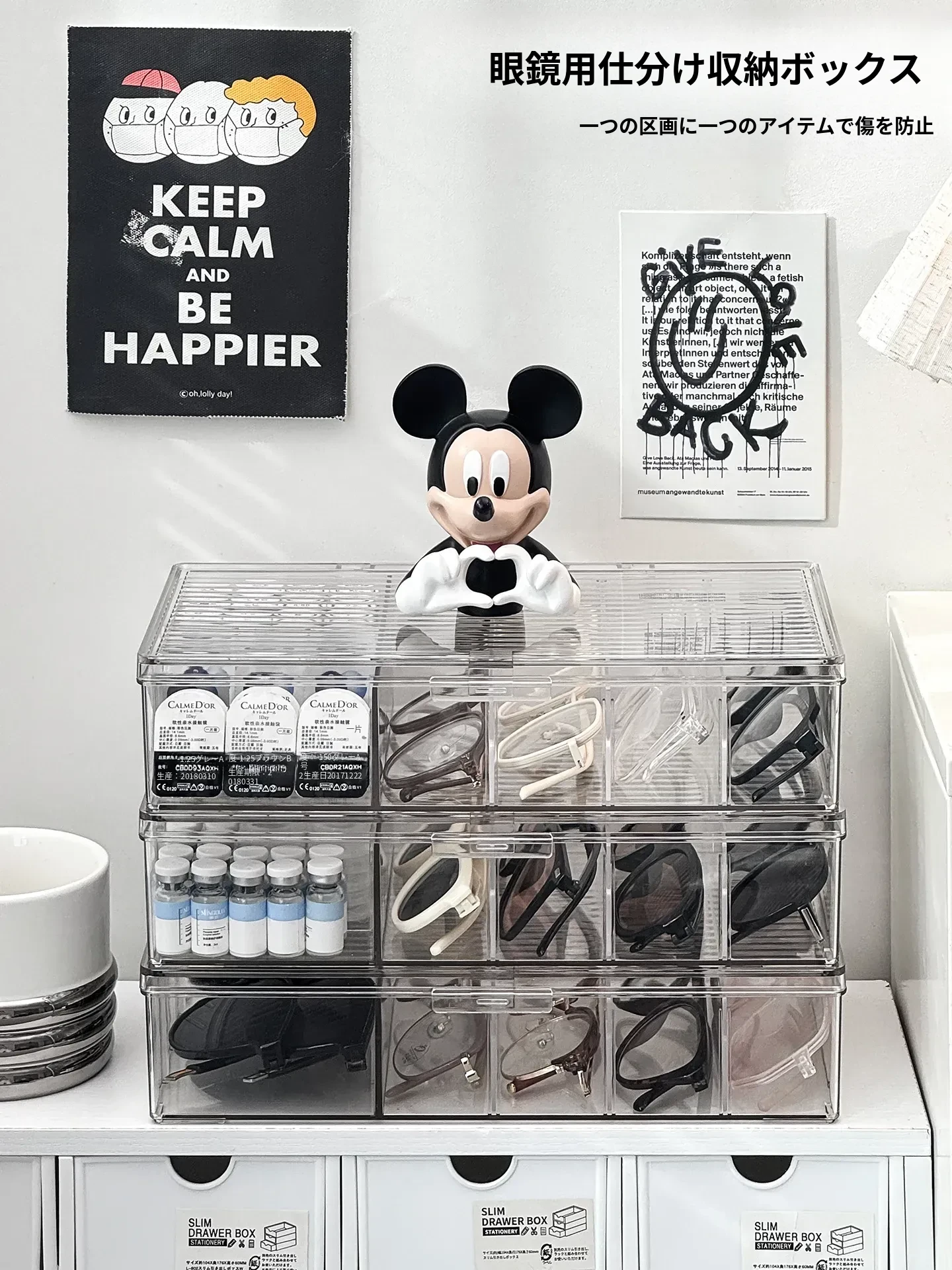 【3個セット-仕切りが取り外し可能】眼鏡収納ボックス