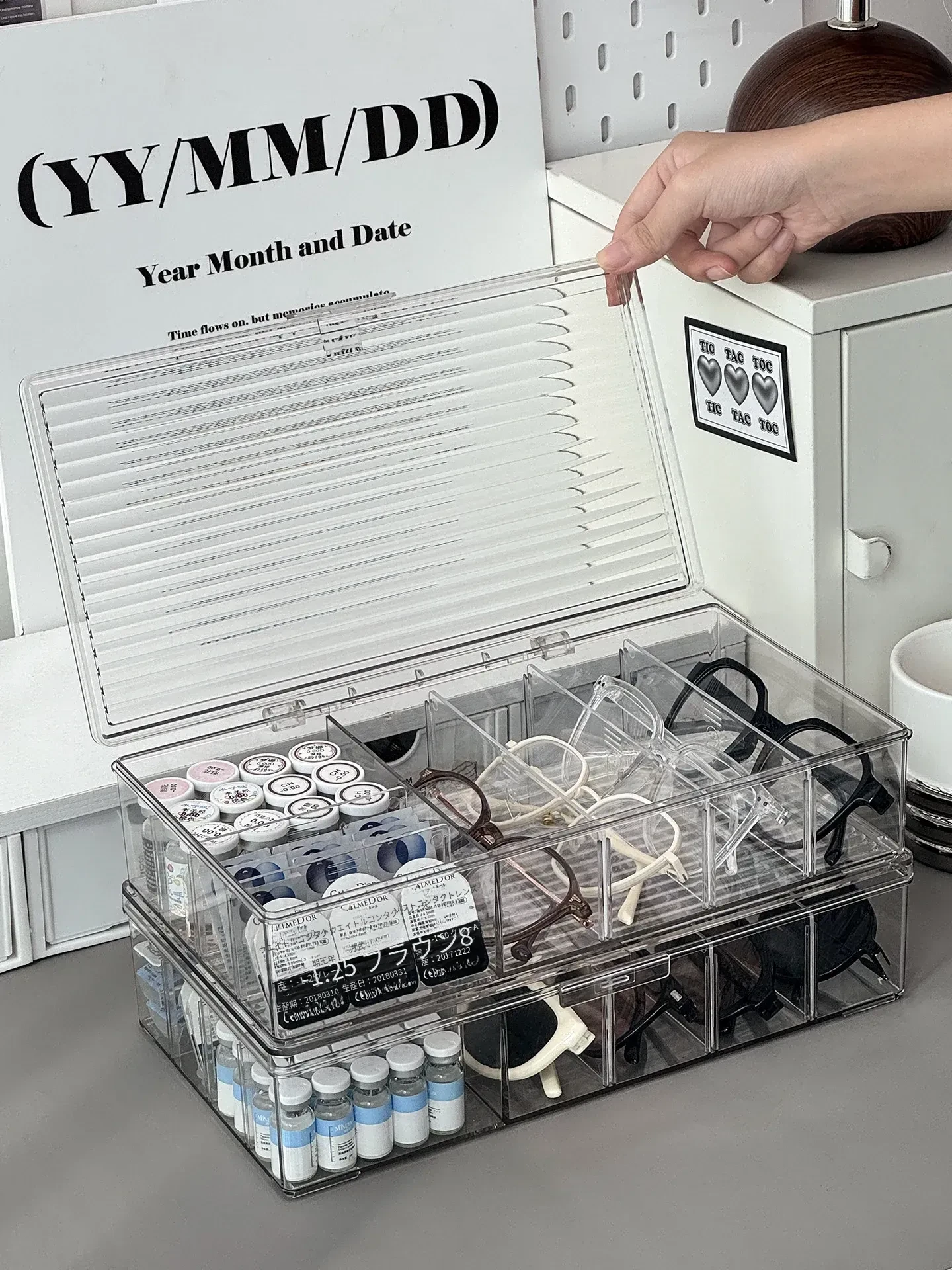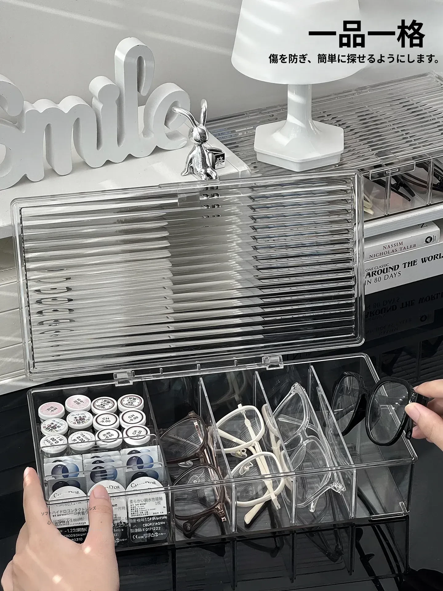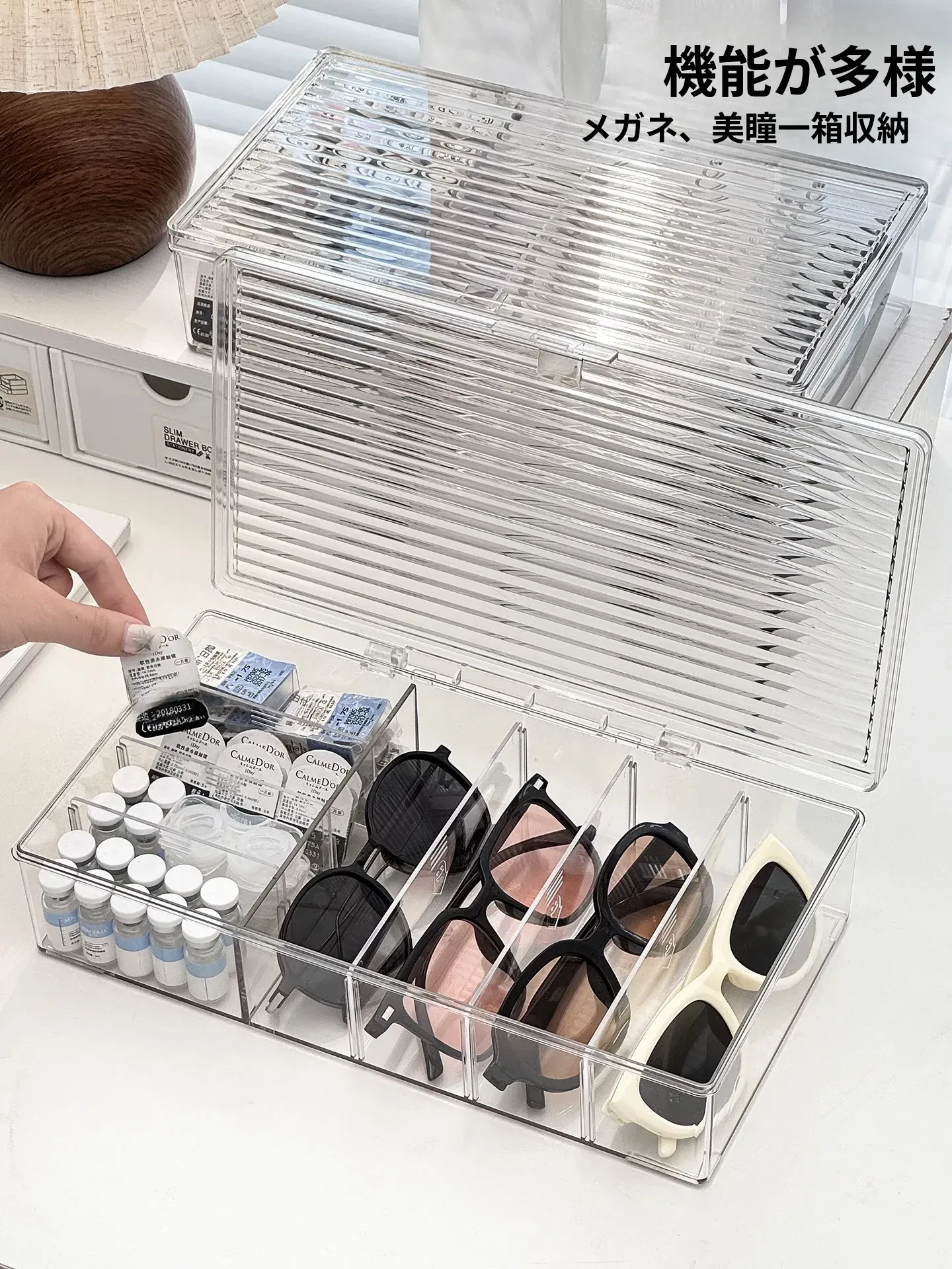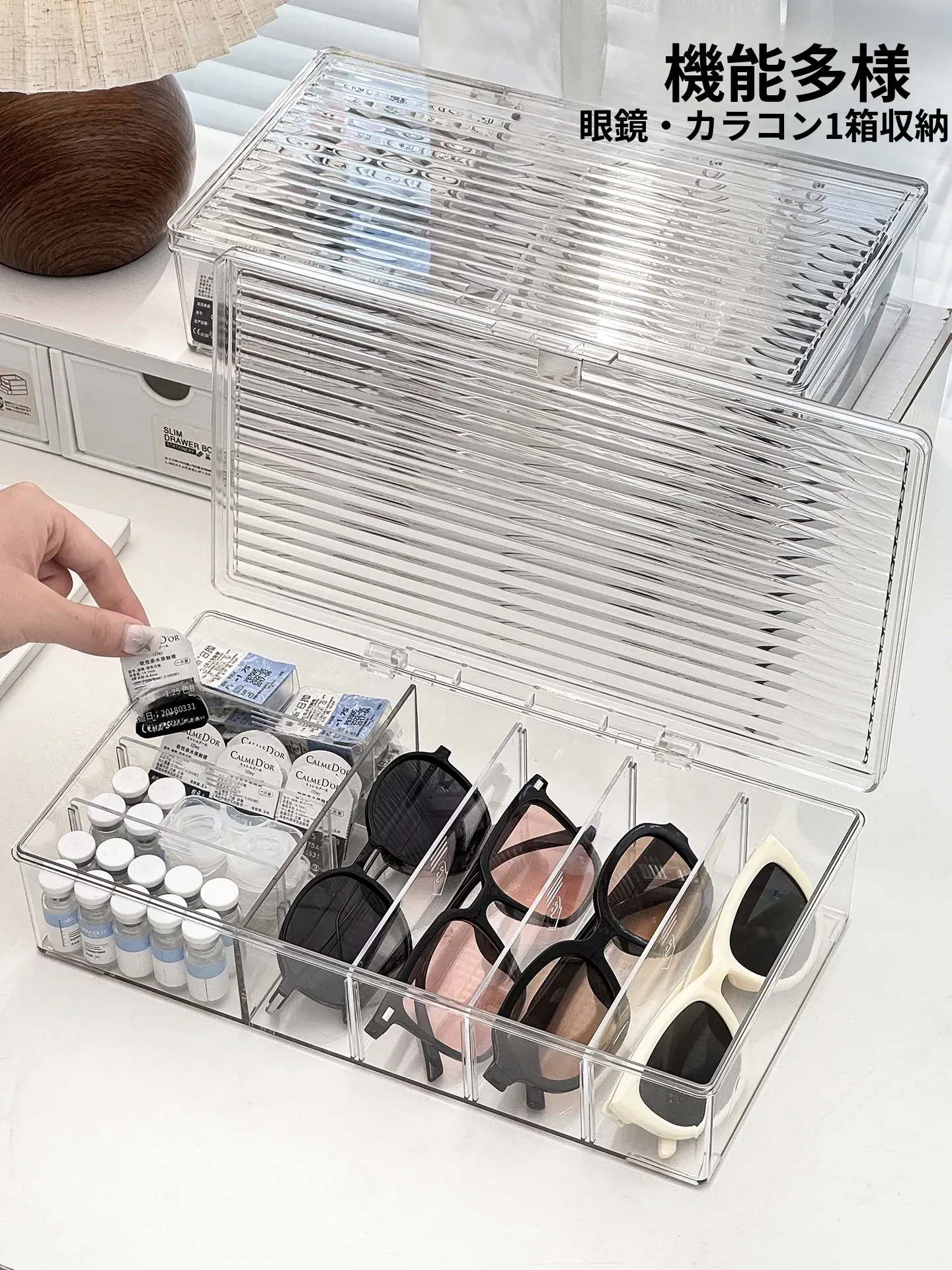 透明大容量眼鏡収納ボックス - サングラスやコンタクトレンズも整理整頓!多格デザインで防圧・防塵、あなたのアイテムをしっかり守ります。おしゃれで便利な整理アイテムを手に入れて、毎日をもっと素敵に!