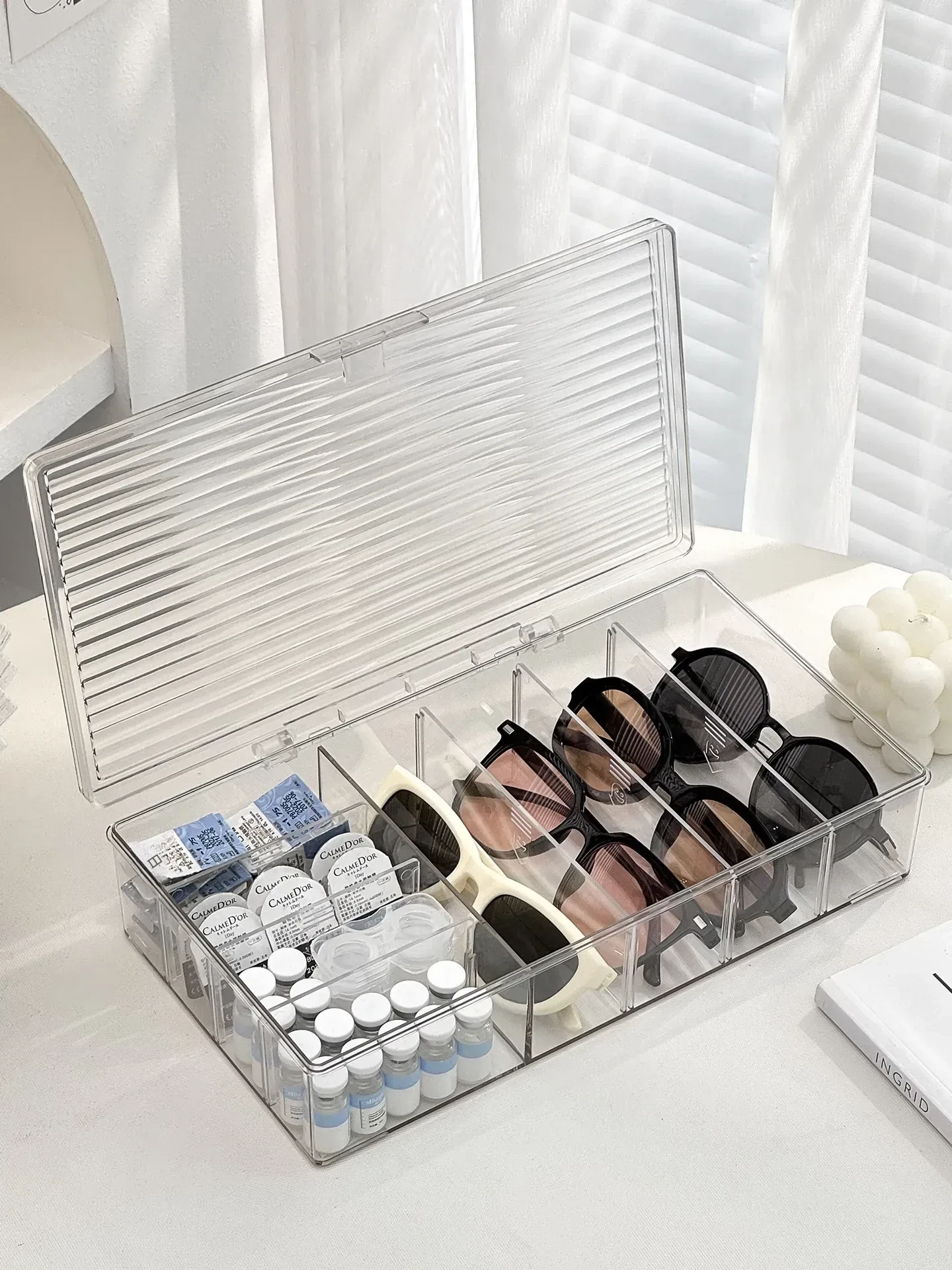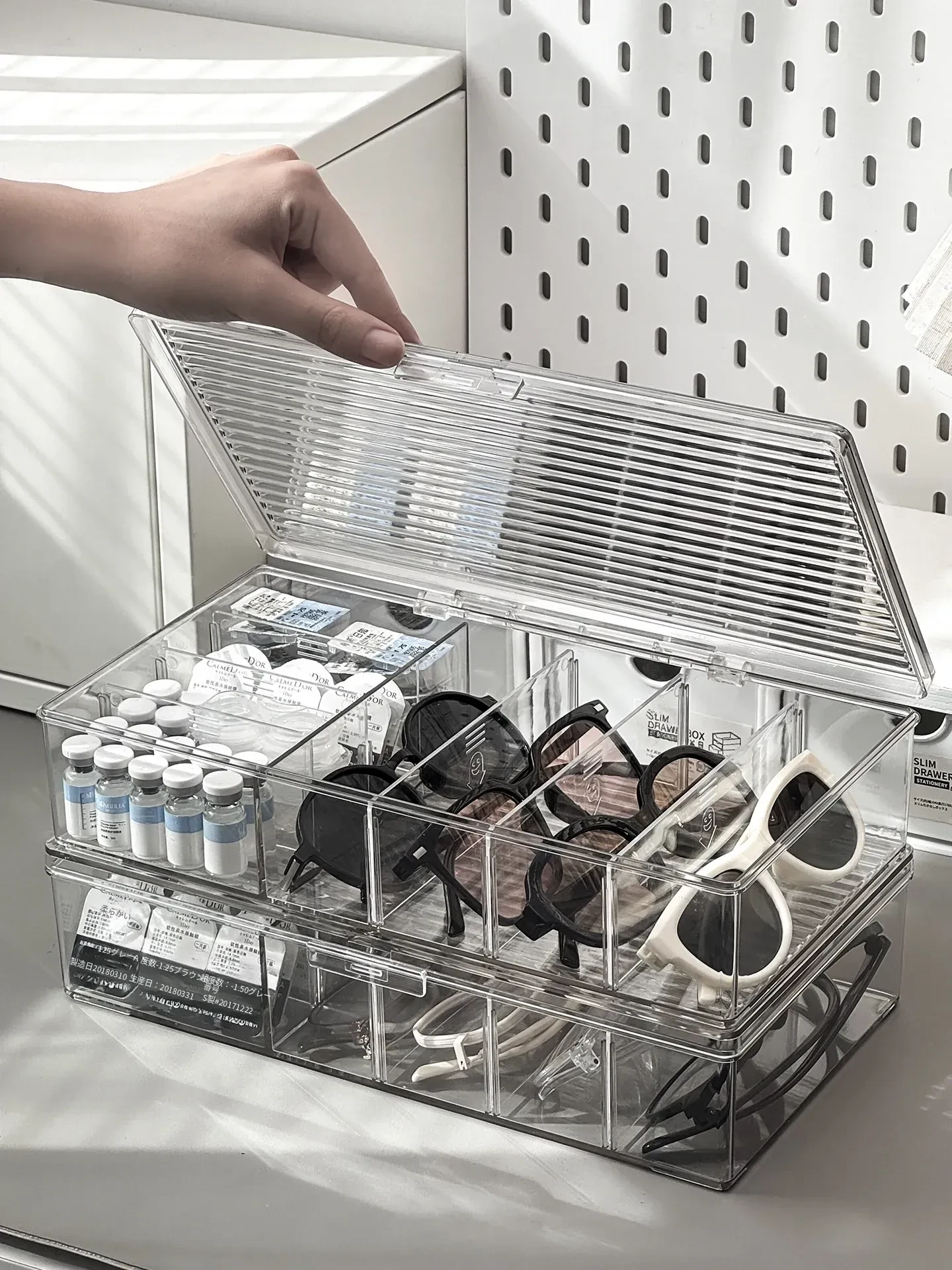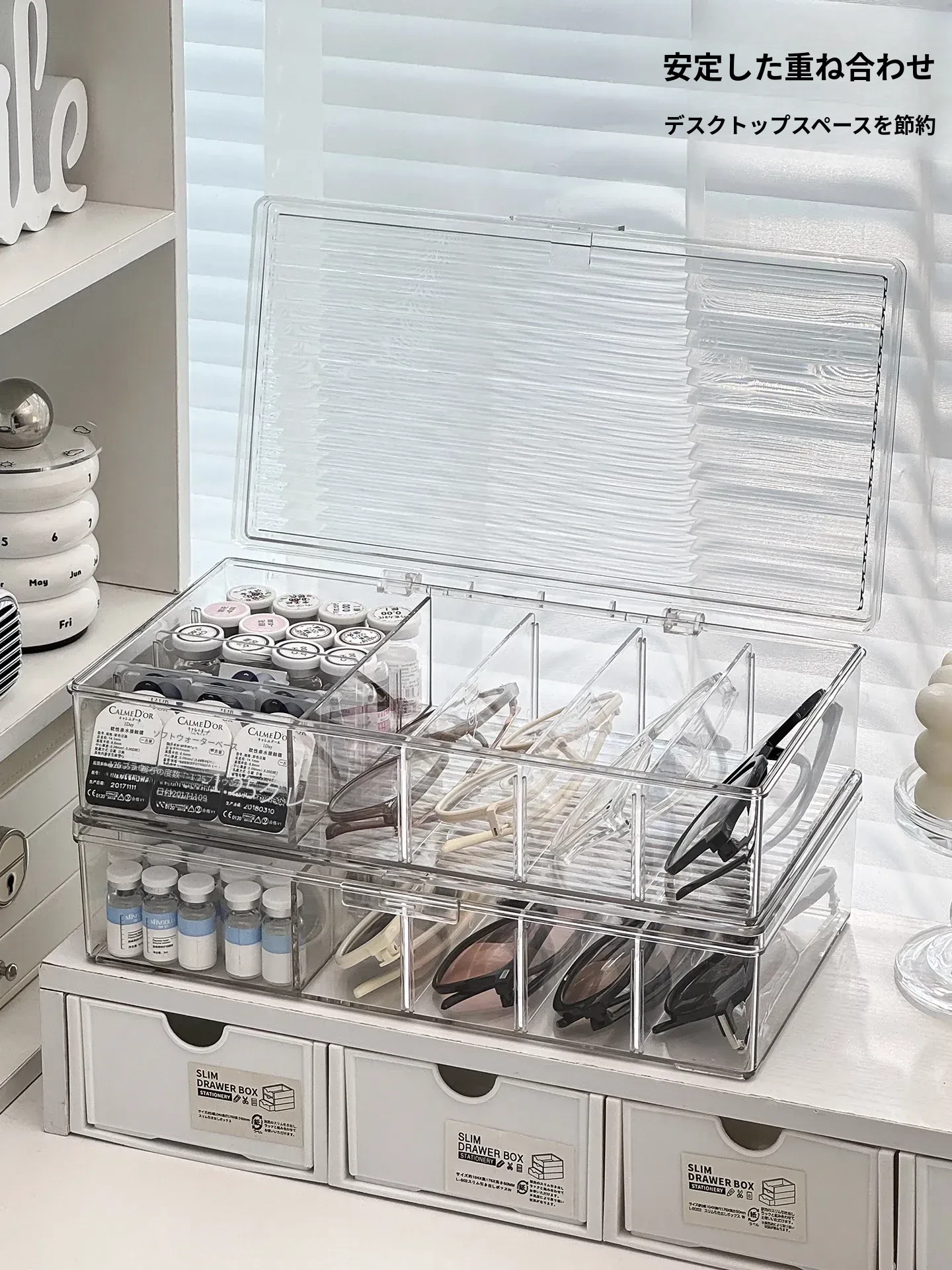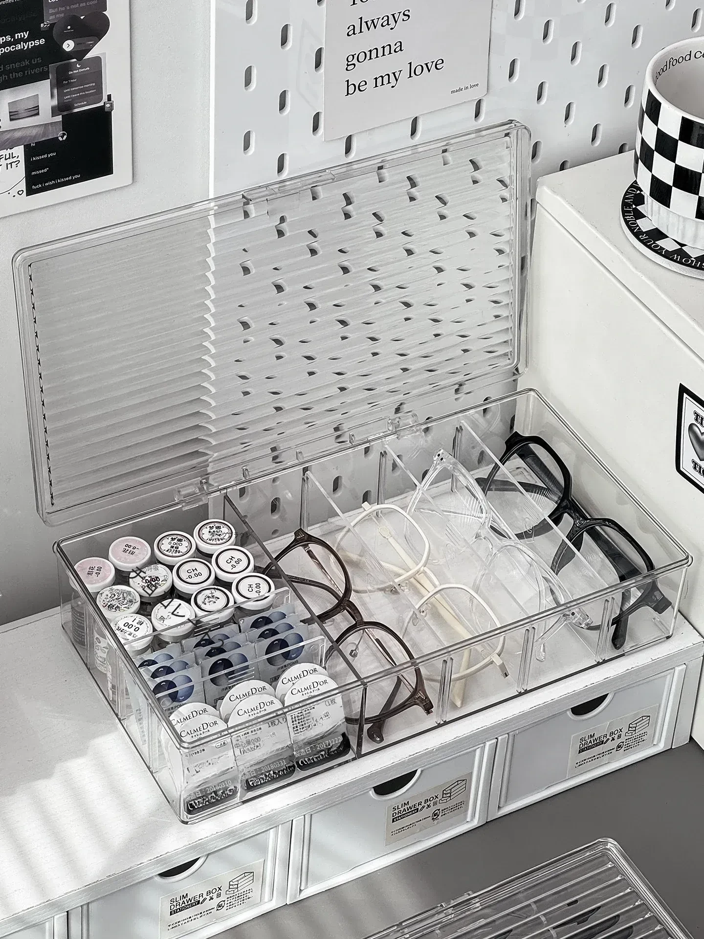 透明大容量眼鏡収納ボックス - サングラスやコンタクトレンズも整理整頓!多格デザインで防圧・防塵、あなたのアイテムをしっかり守ります。おしゃれで便利な整理アイテムを手に入れて、毎日をもっと素敵に!