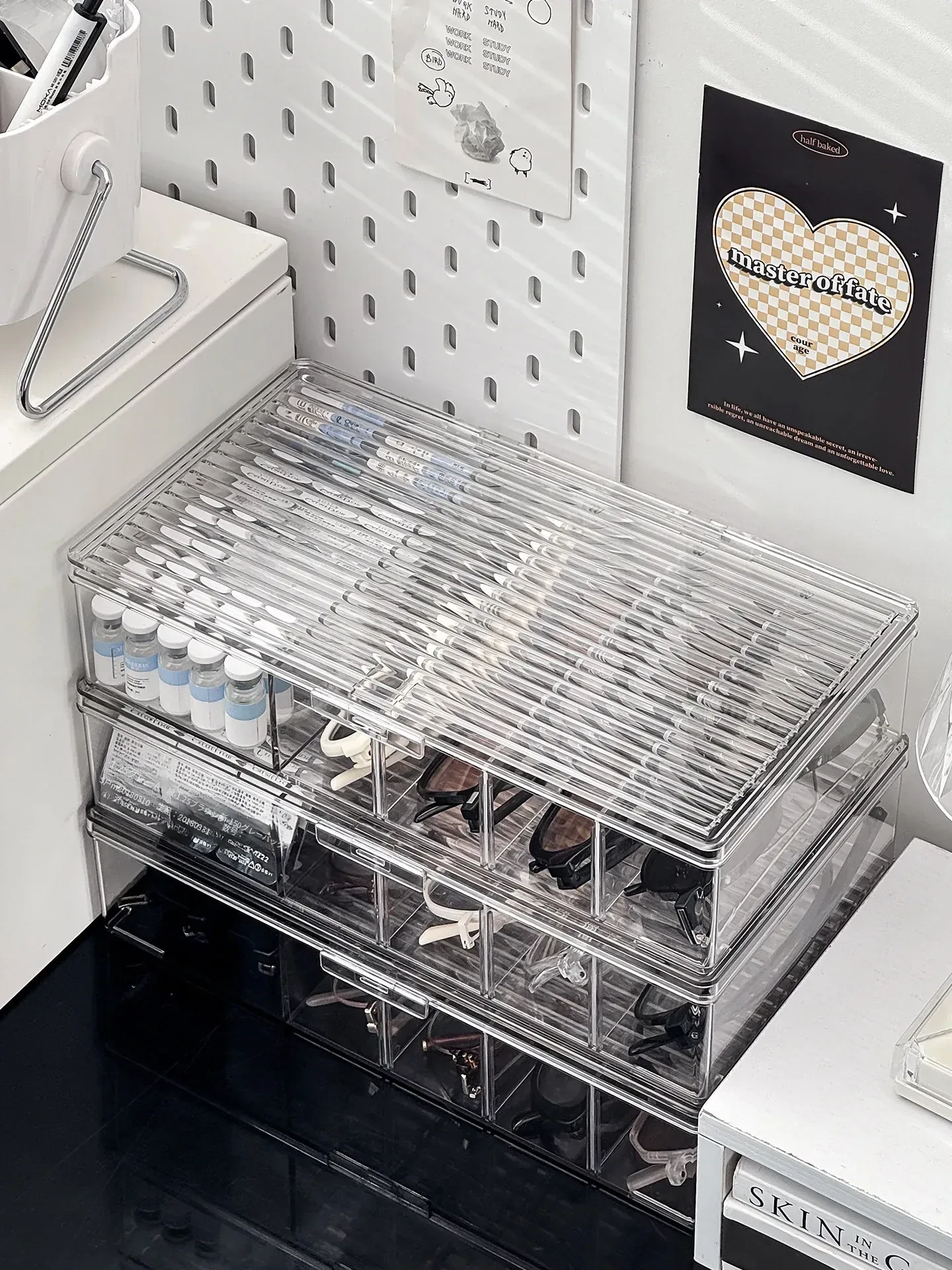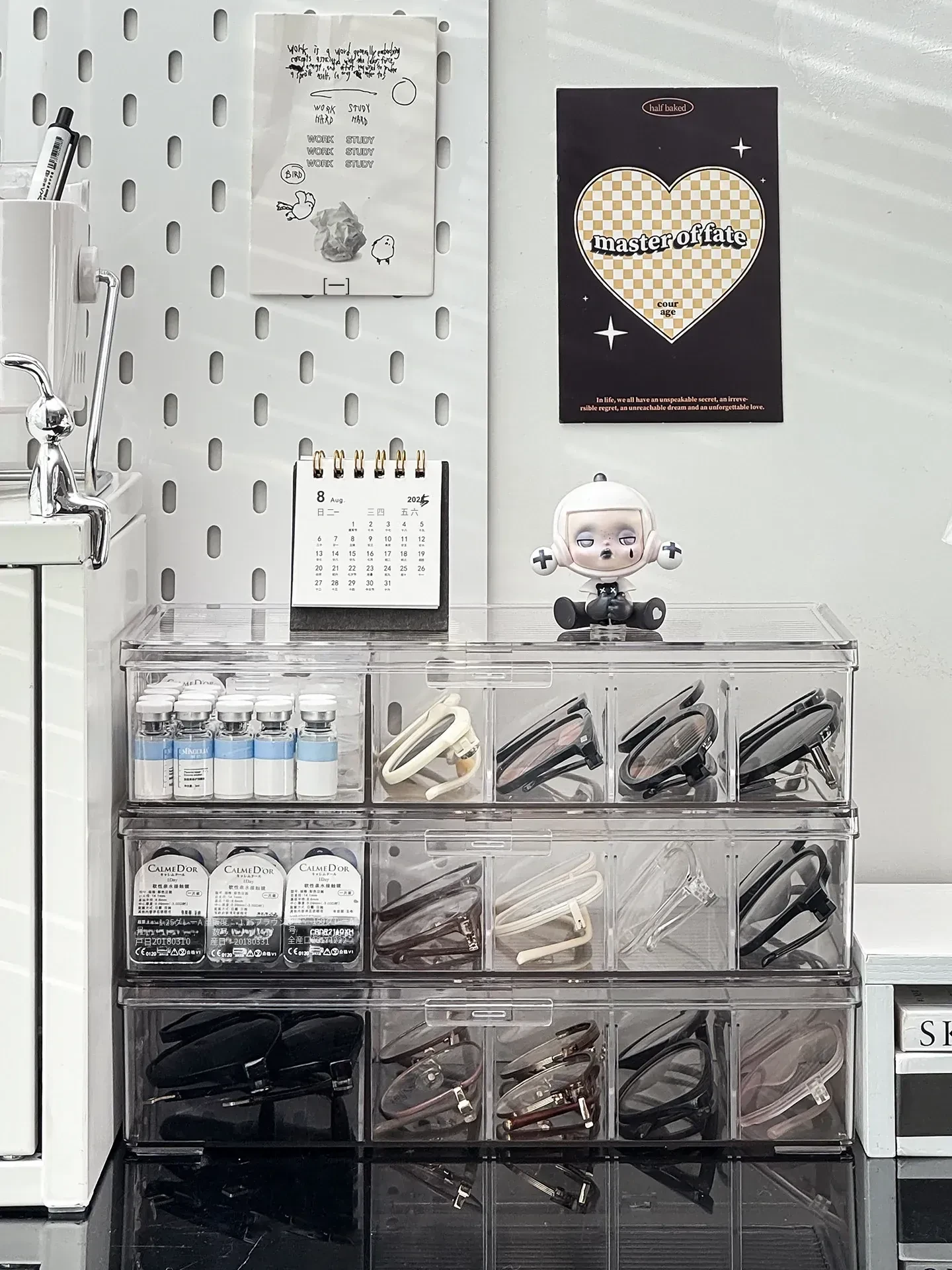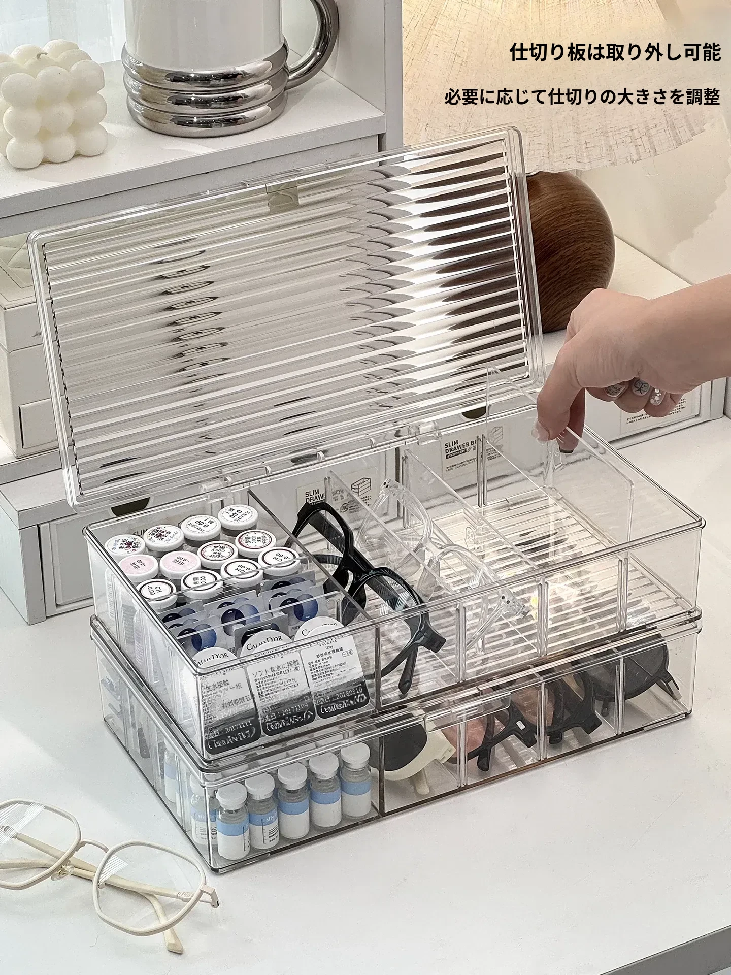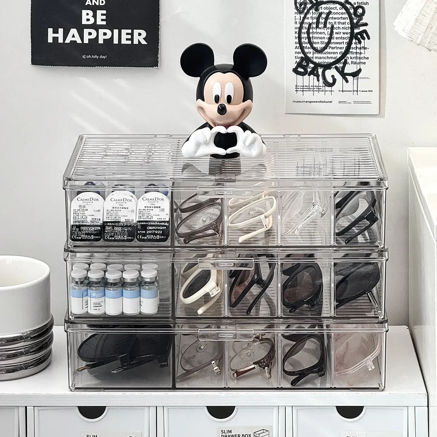 透明大容量眼鏡収納ボックス - サングラスやコンタクトレンズも整理整頓!多格デザインで防圧・防塵、あなたのアイテムをしっかり守ります。おしゃれで便利な整理アイテムを手に入れて、毎日をもっと素敵に!