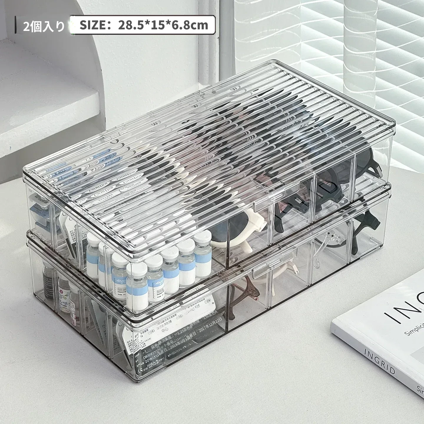 【2個セット-仕切りが取り外し可能】眼鏡収納ボックス