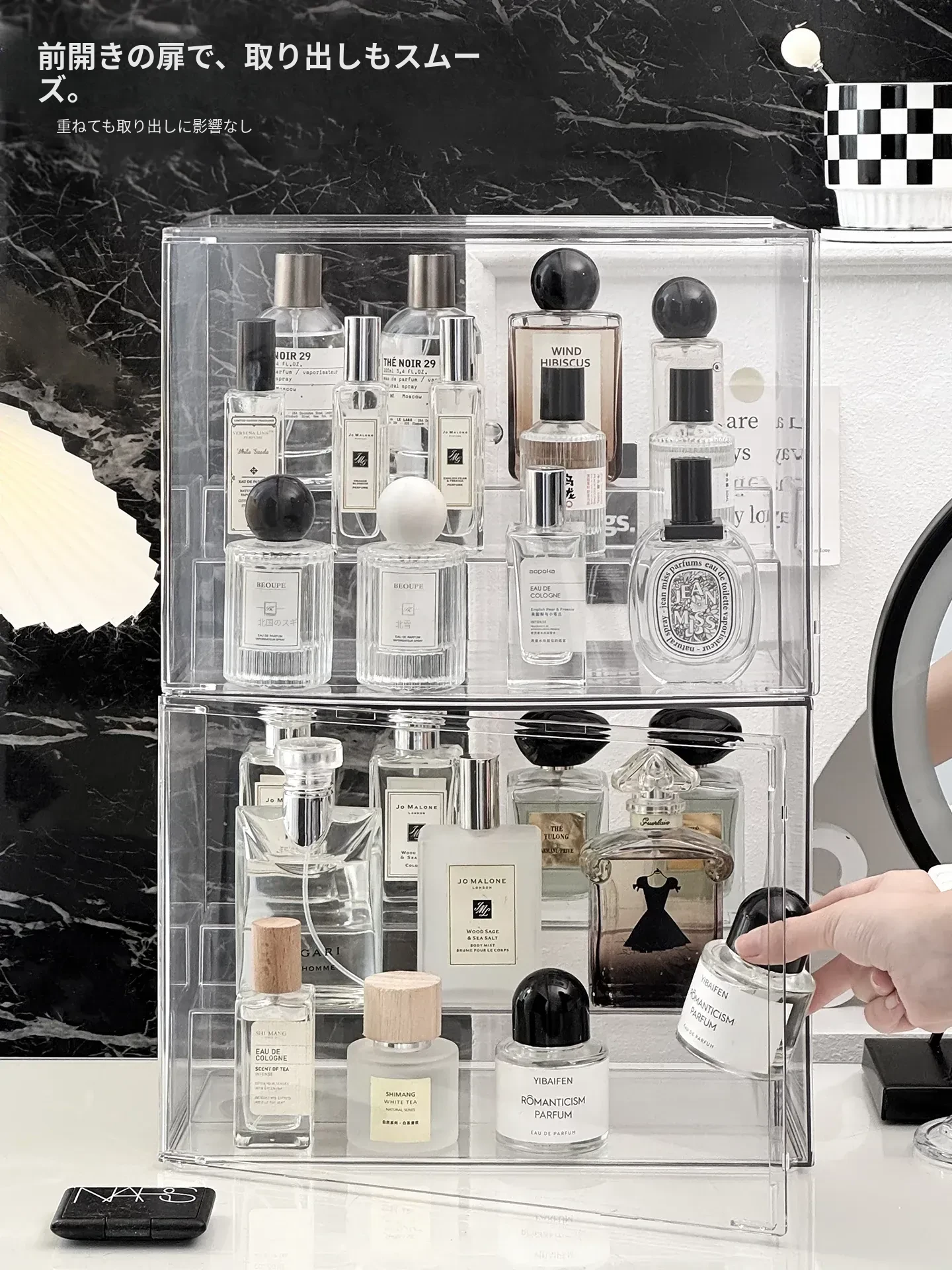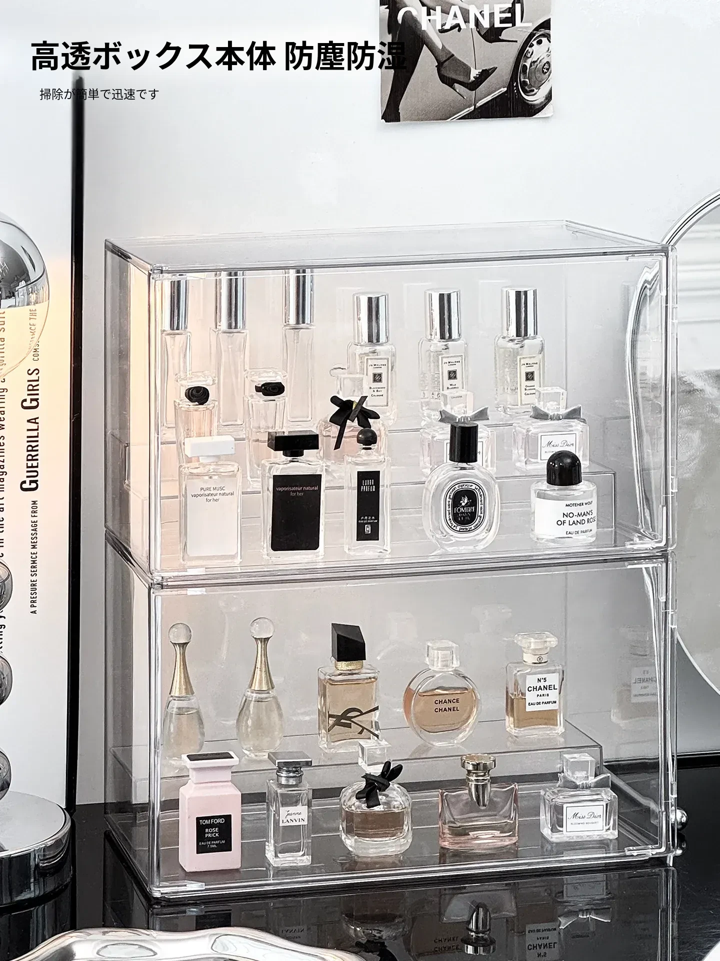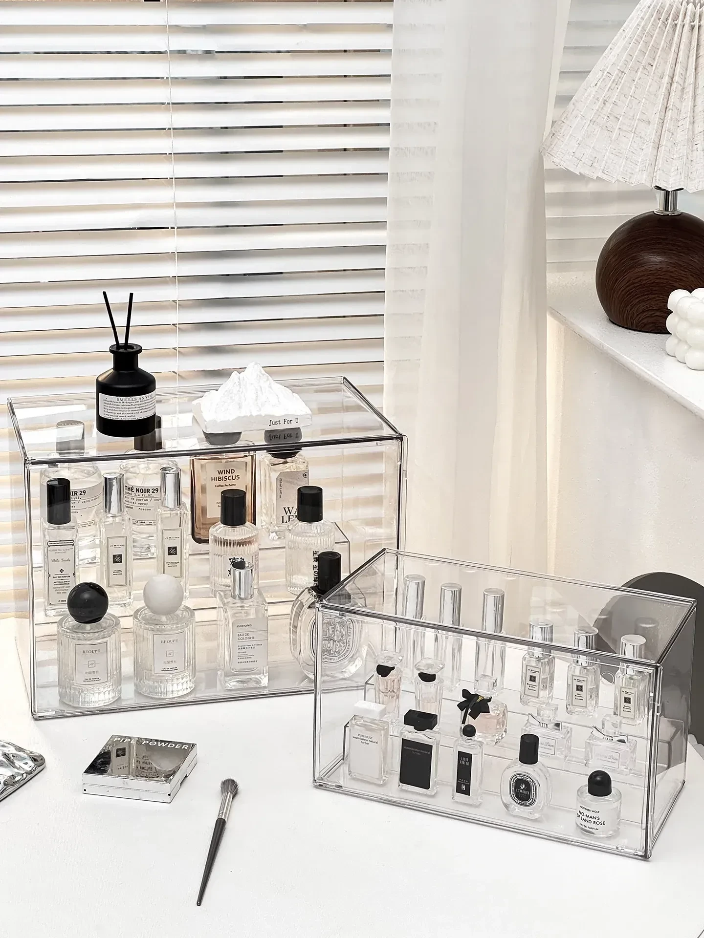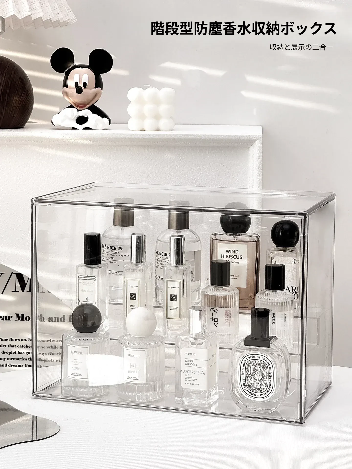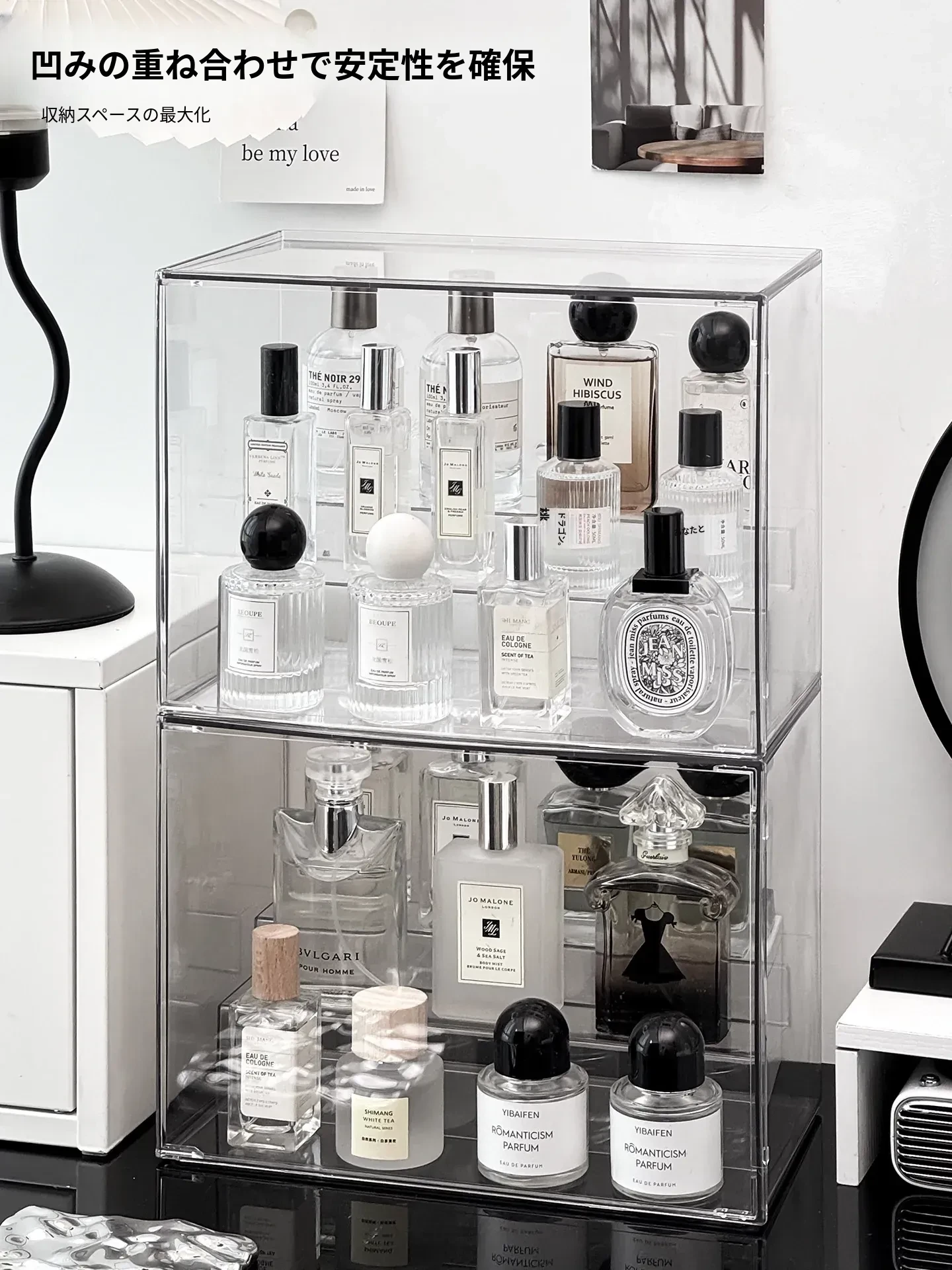 高級アクリル透明香水ディスプレイラック - 大容量化粧品収納ボックス!埃防止設計で、あなたの大切なコレクションを美しく整理。デスクの上をスタイリッシュに演出します!