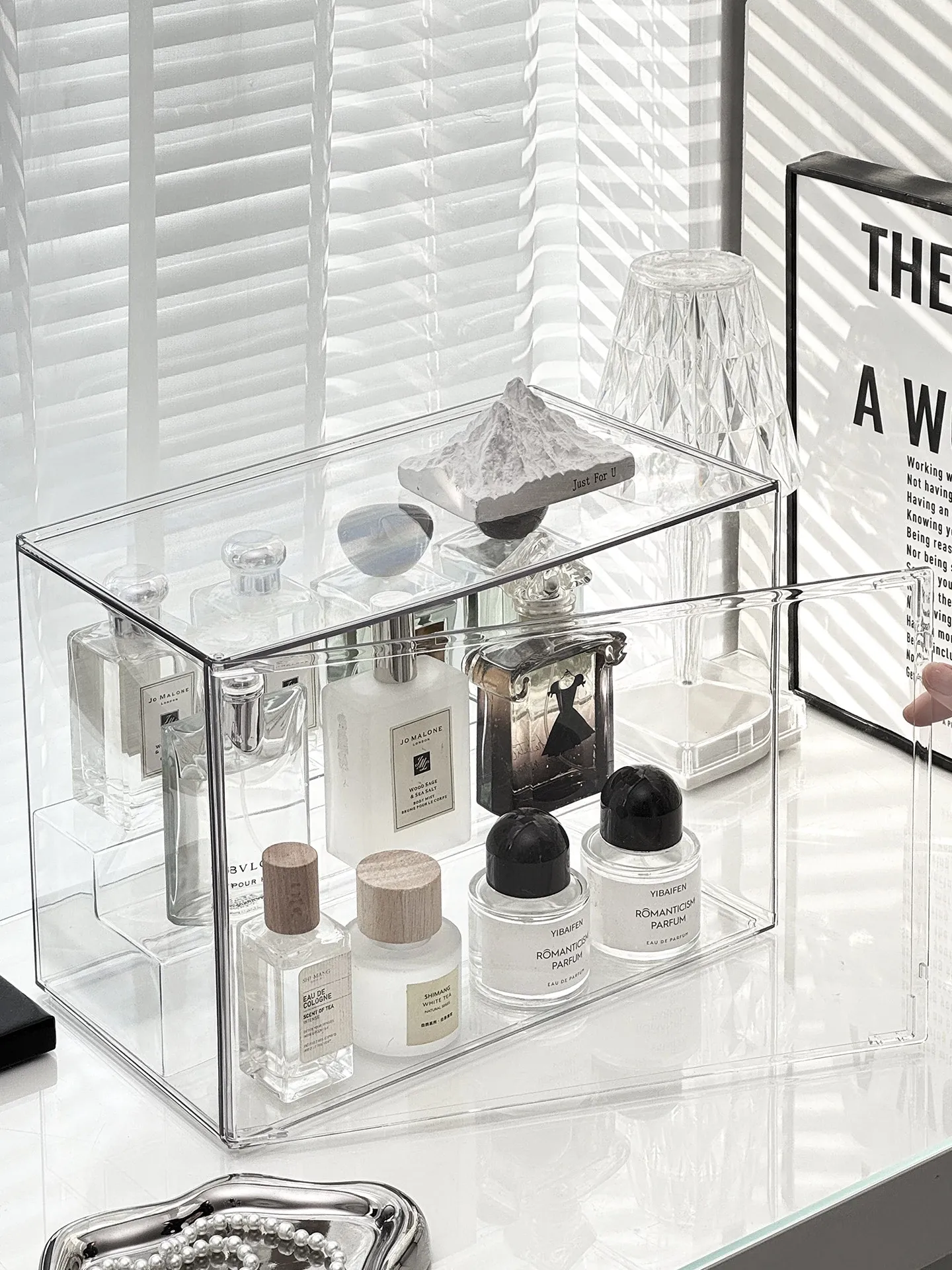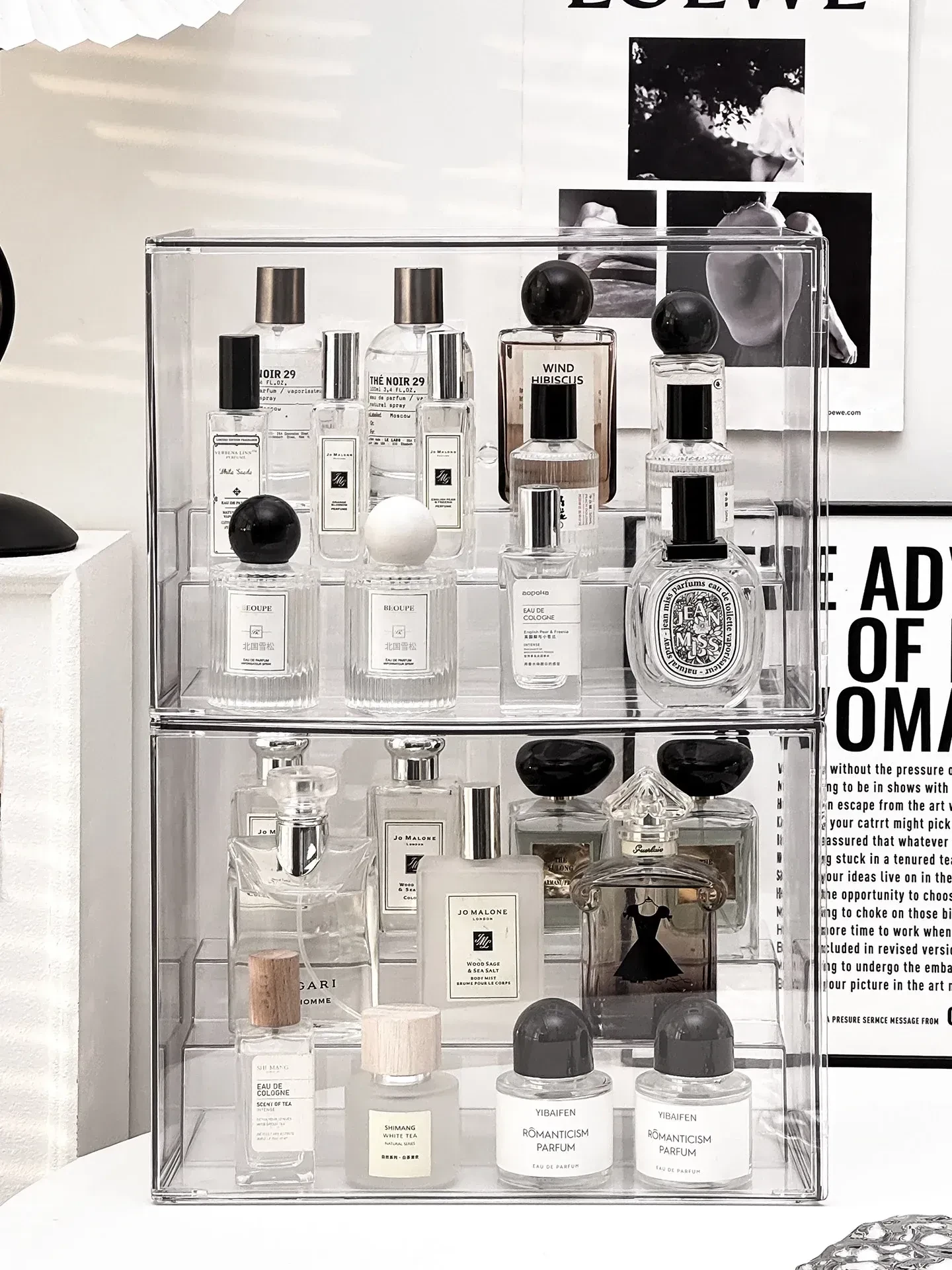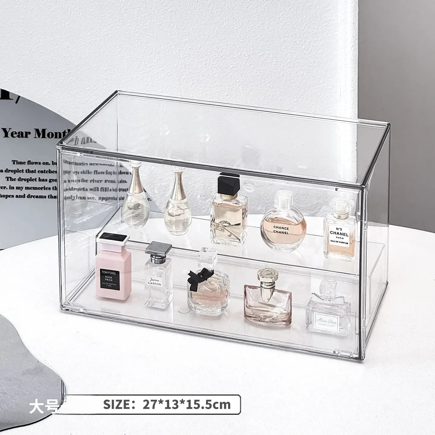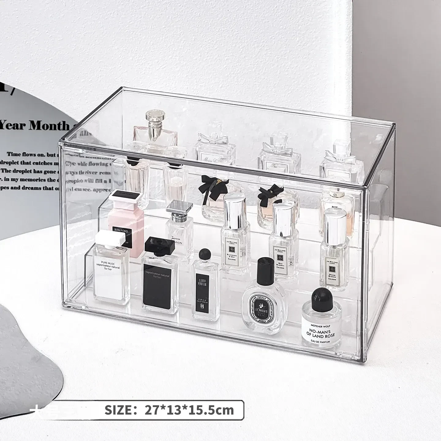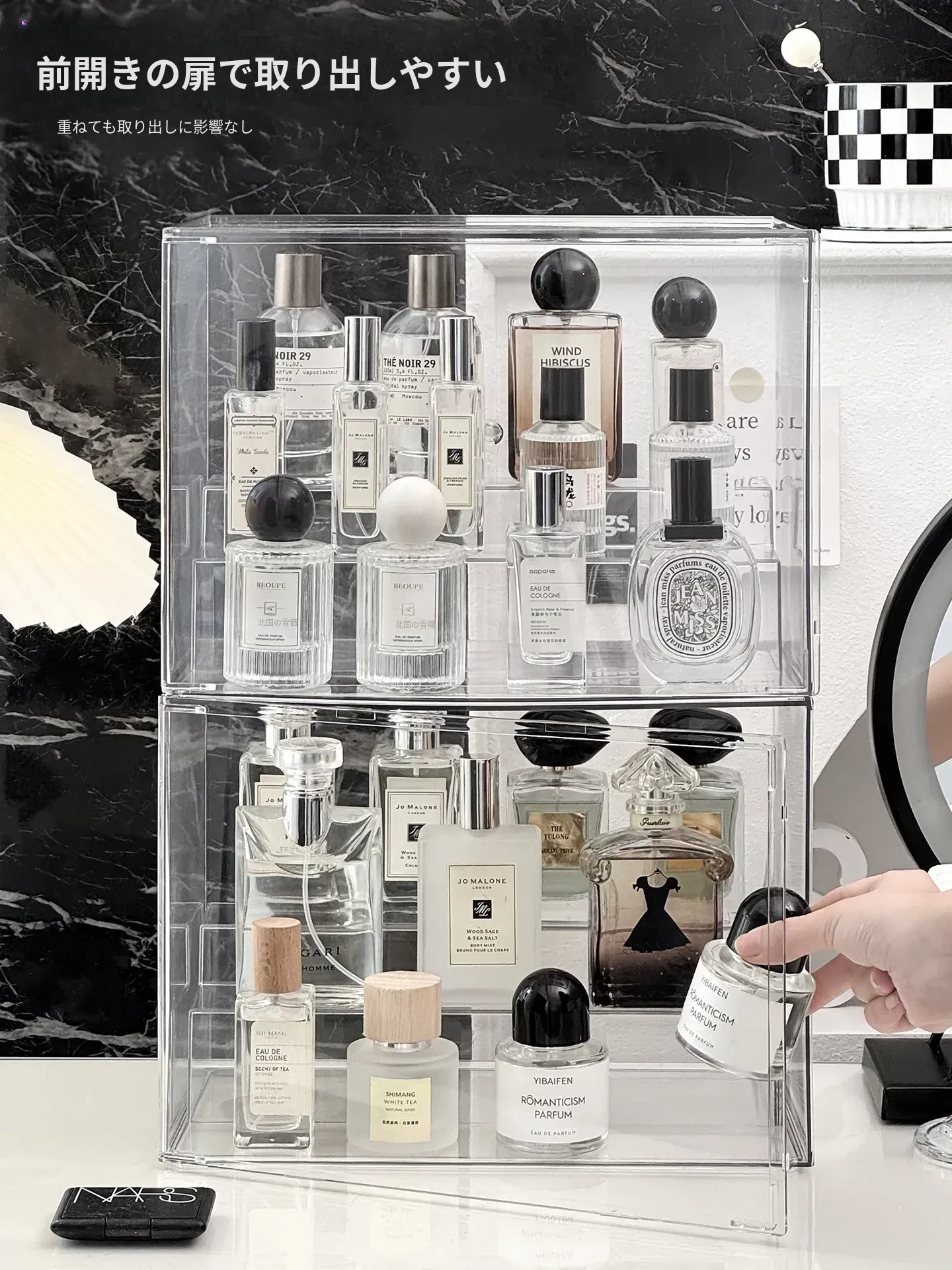 高級アクリル透明香水ディスプレイラック - 大容量化粧品収納ボックス!埃防止設計で、あなたの大切なコレクションを美しく整理。デスクの上をスタイリッシュに演出します!