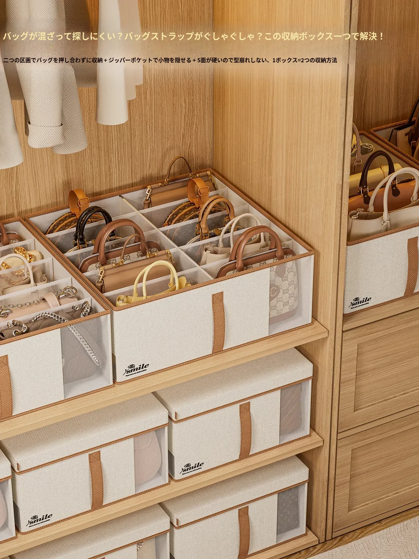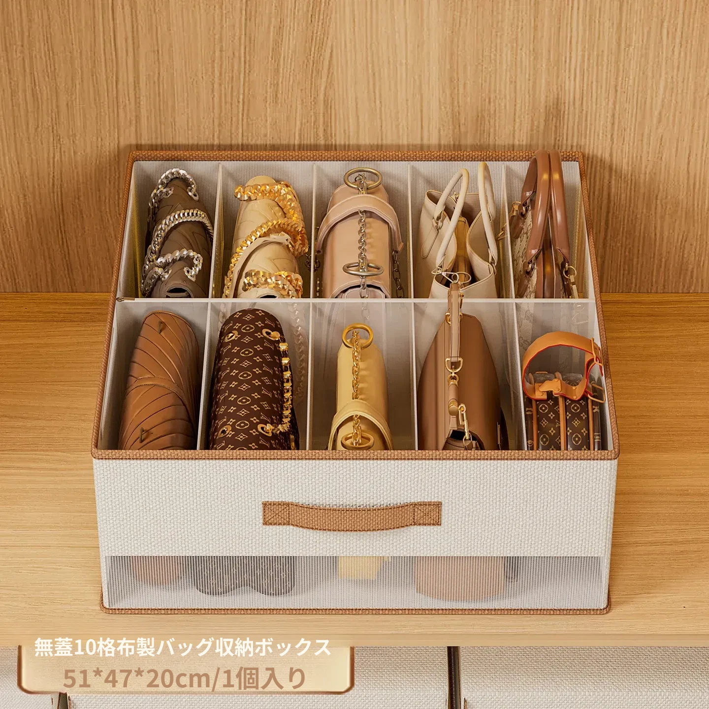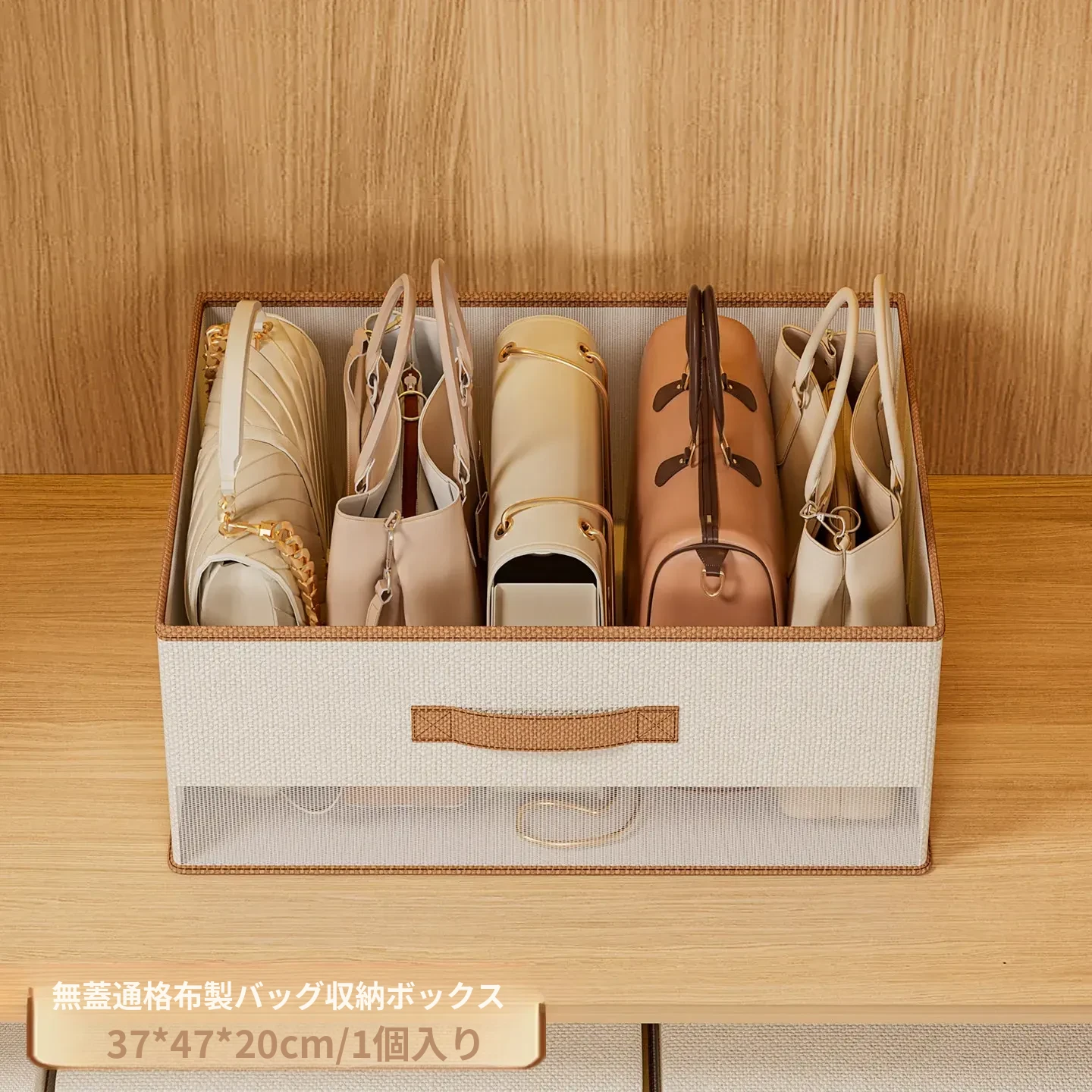 バッグ収納の神アイテム!クローゼット用布製仕切りで高級バッグを守る防塵袋。トートバッグもスッキリ整理、省スペースでおしゃれに収納!