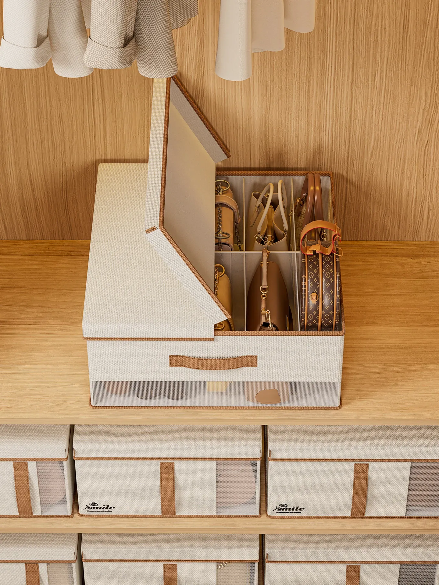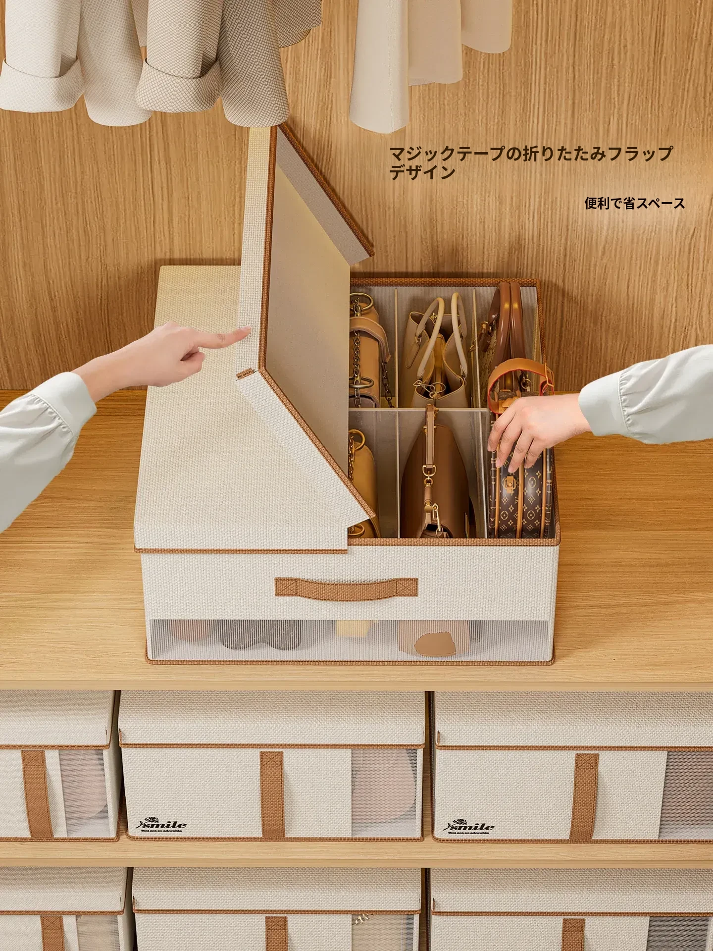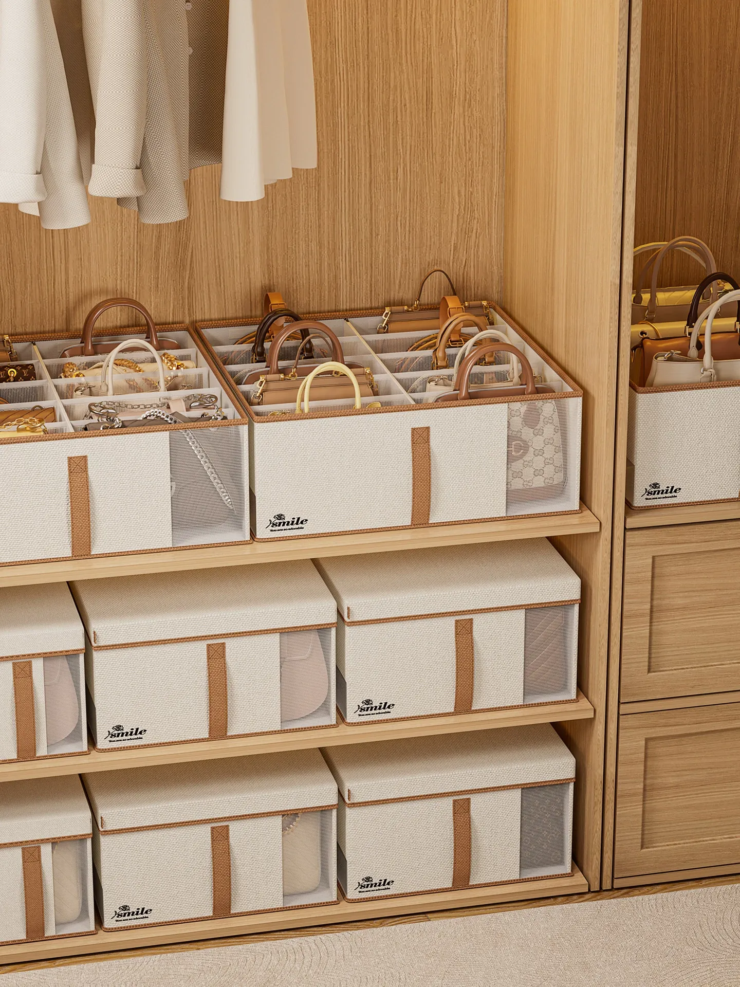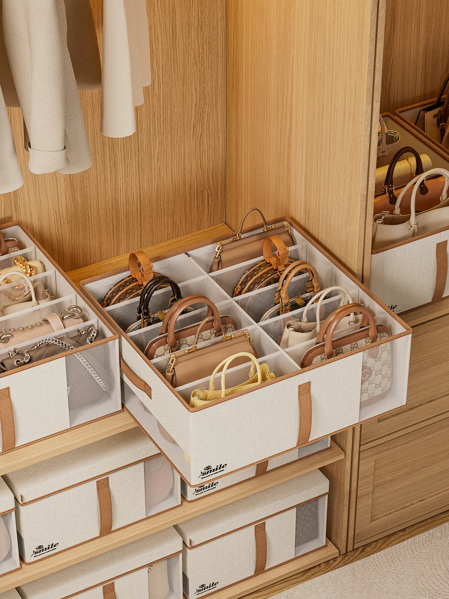 バッグ収納の神アイテム!クローゼット用布製仕切りで高級バッグを守る防塵袋。トートバッグもスッキリ整理、省スペースでおしゃれに収納!