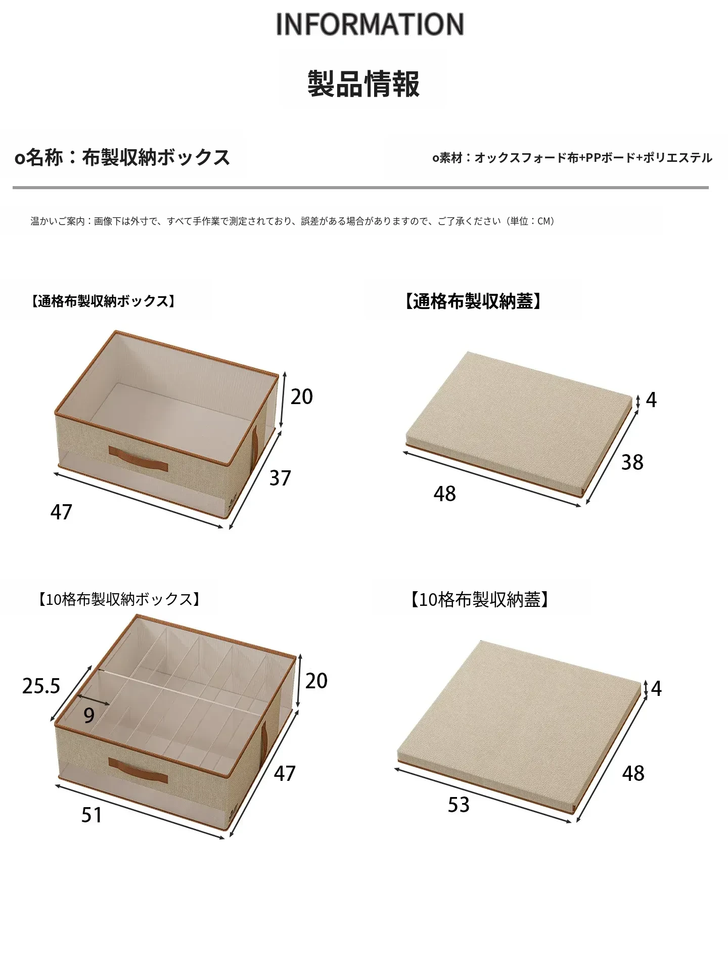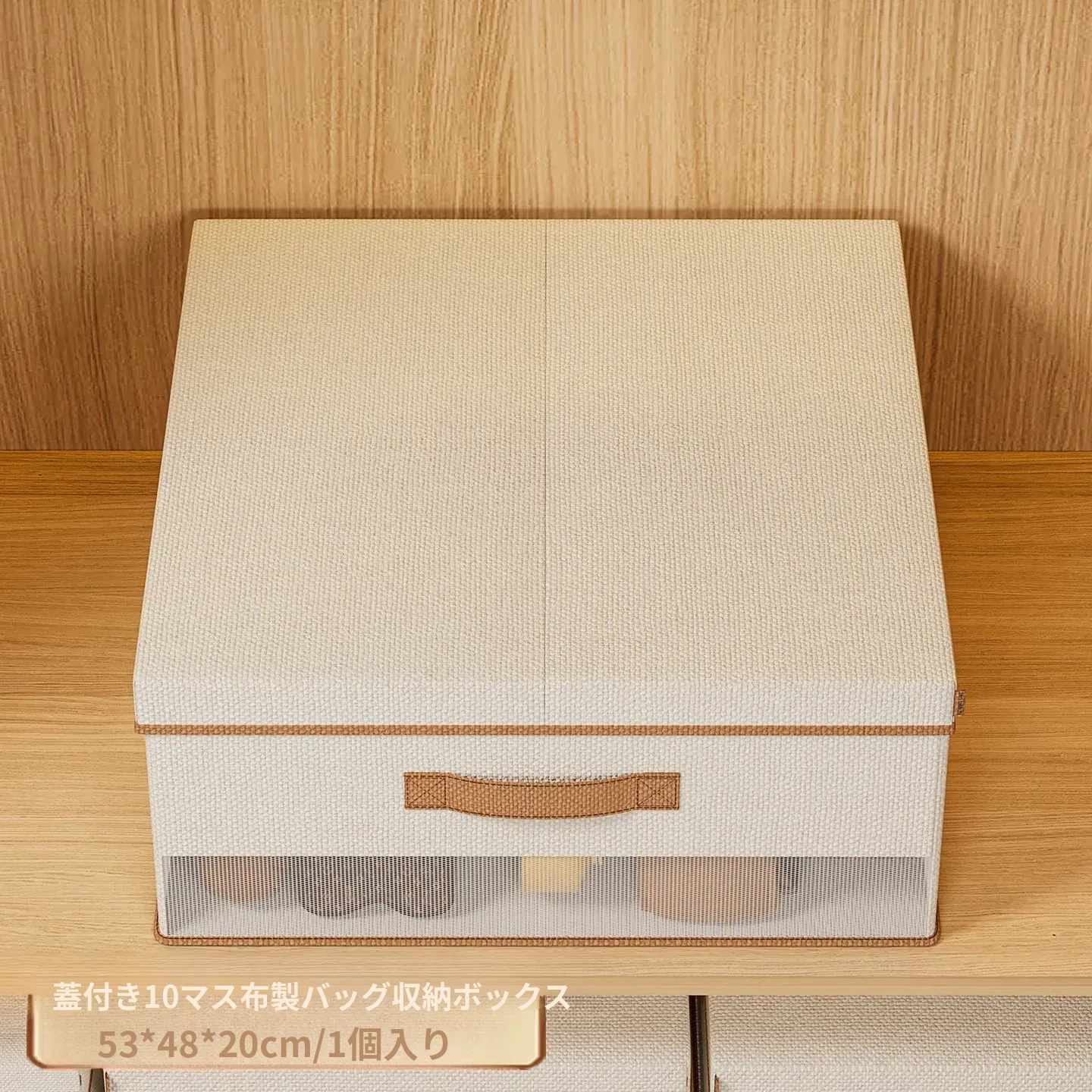 【フタ付き10格/持ち手付き】オックスフォード布製バッグ収納ボックス