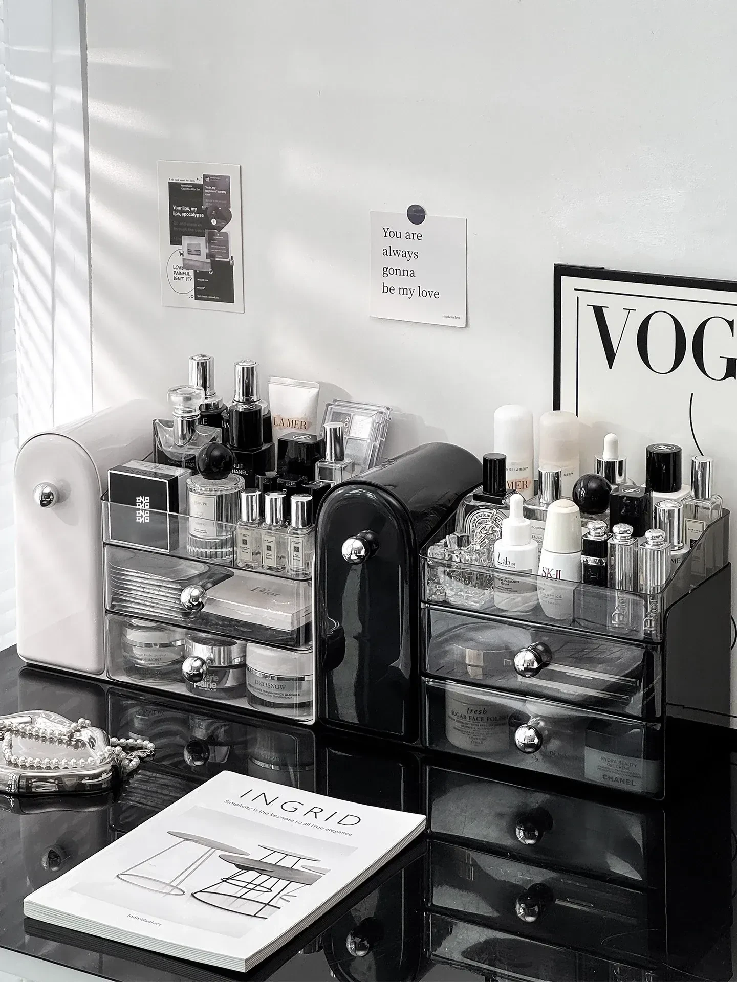 高級感溢れる化粧品収納ボックス!デスク上に最適な斜め差し式の防塵メイクブラシホルダー。化粧台をスタイリッシュに彩る香水・口紅収納ラック!