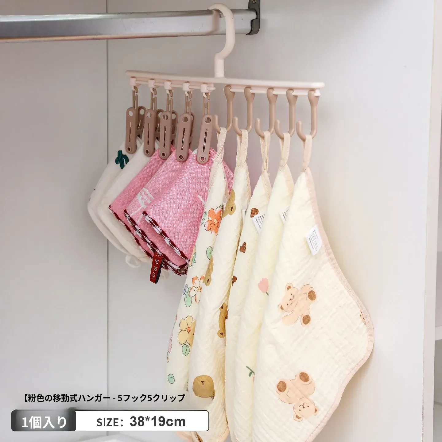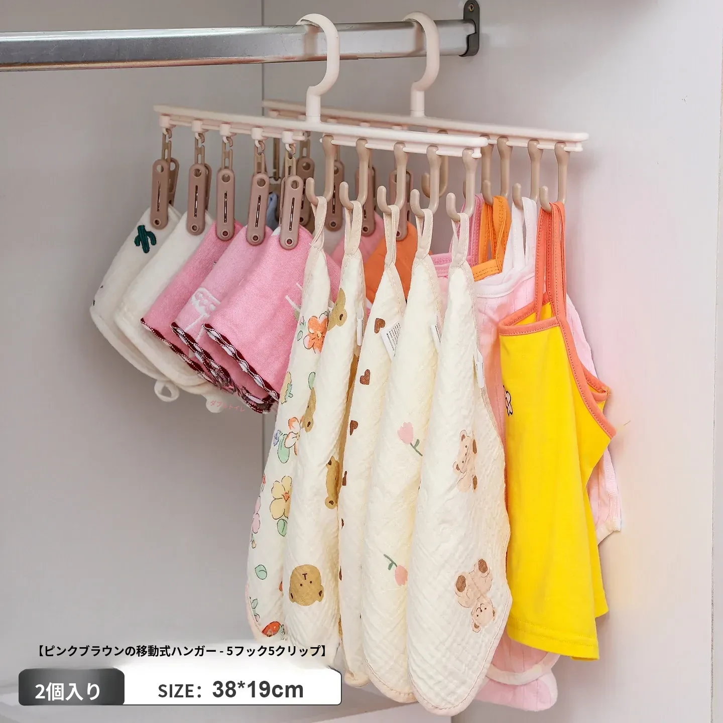 【2個入り】ピンクブラウン5フック5クリップ可動ハンガー