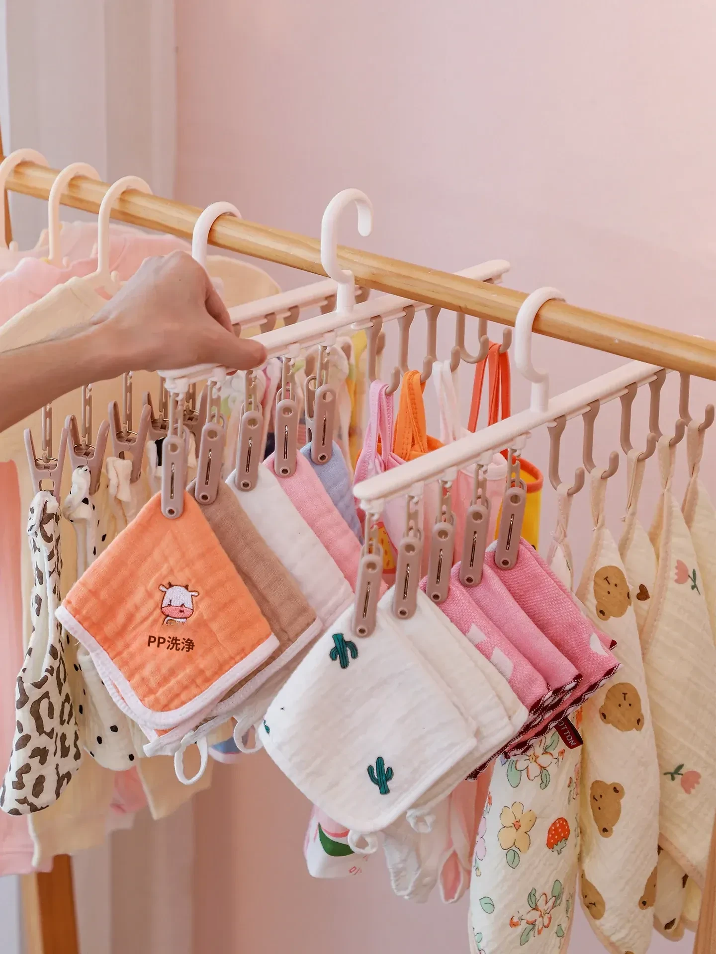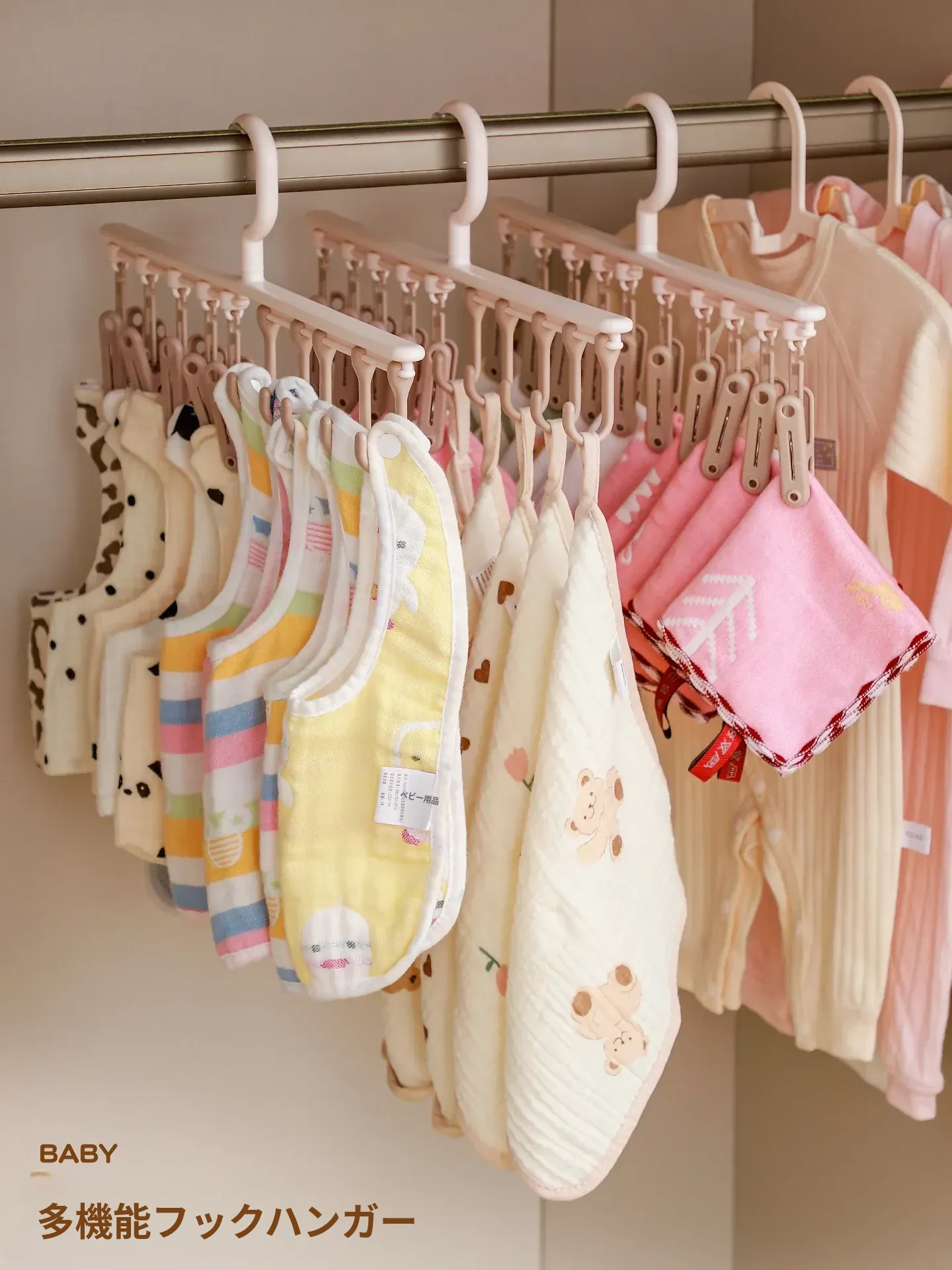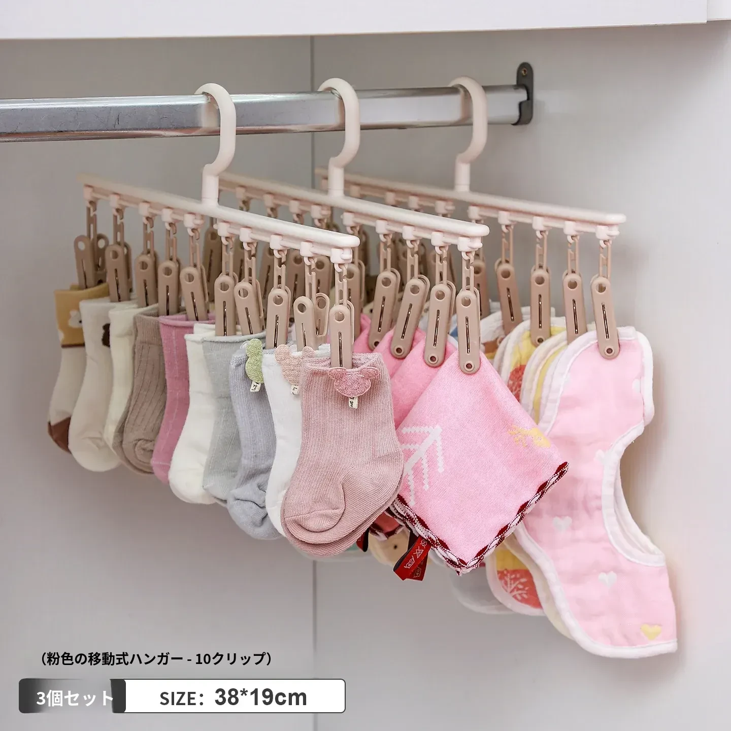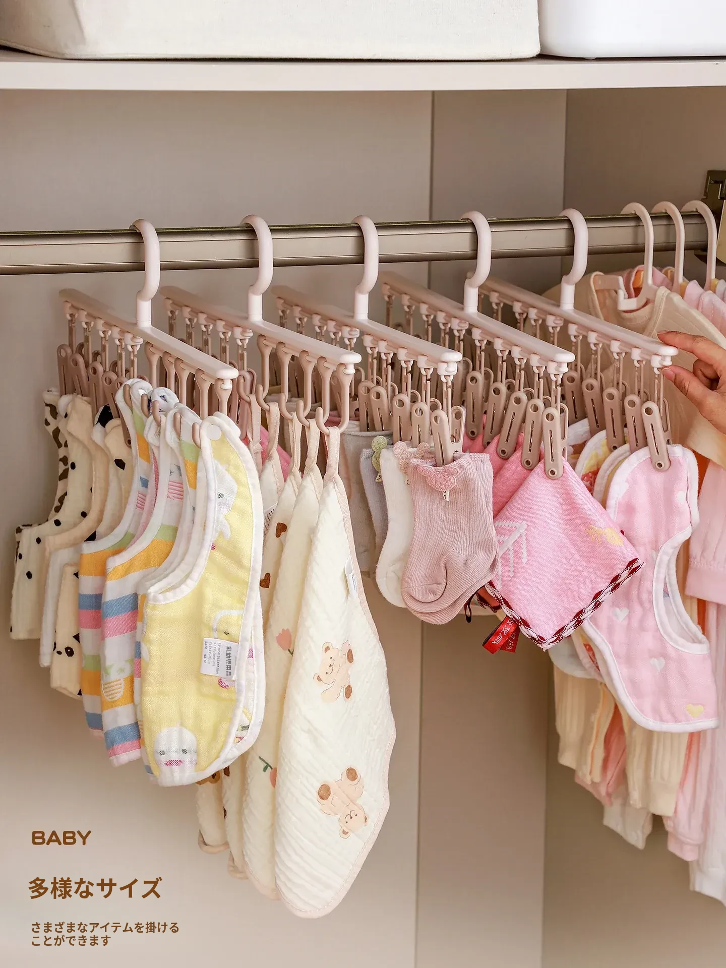 赤ちゃん専用ハンガー 多クリップ 新生児やベビーソックスの乾燥に最適!家庭用マルチ機能衣類ハンガーで、収納も簡単&スペース節約!