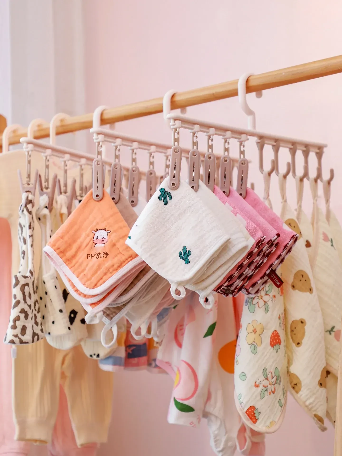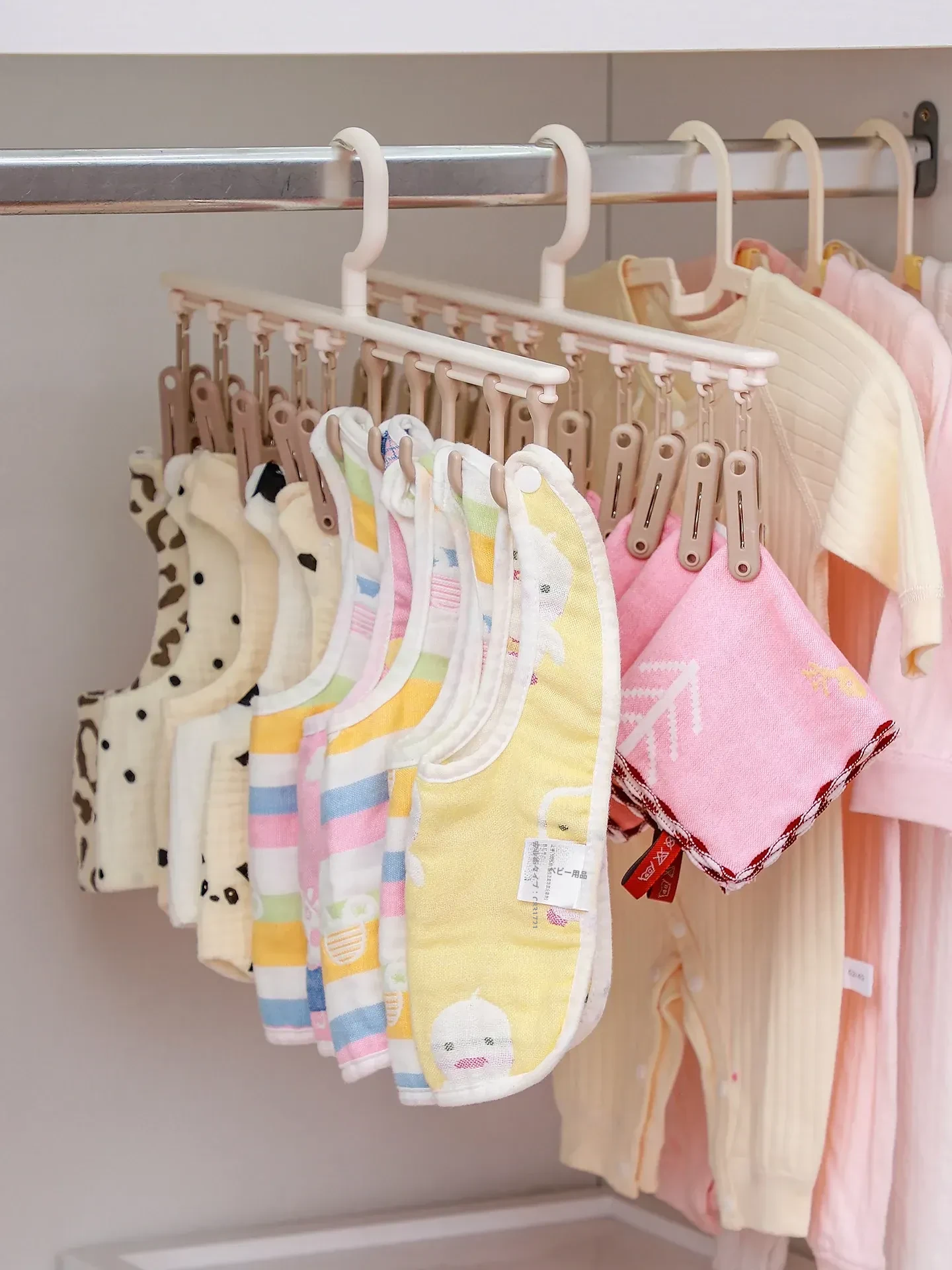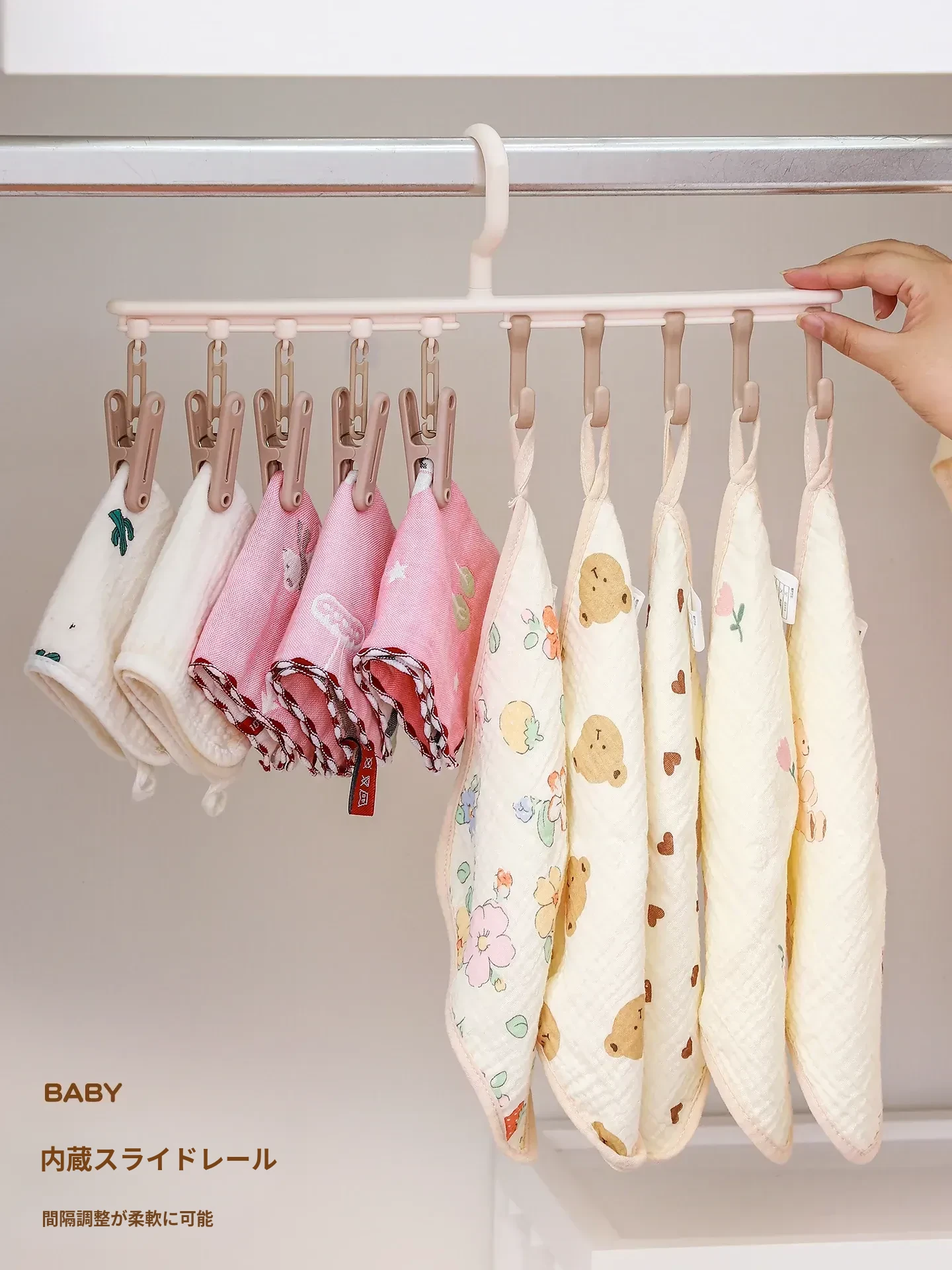赤ちゃん専用ハンガー 多クリップ 新生児やベビーソックスの乾燥に最適!家庭用マルチ機能衣類ハンガーで、収納も簡単&スペース節約!