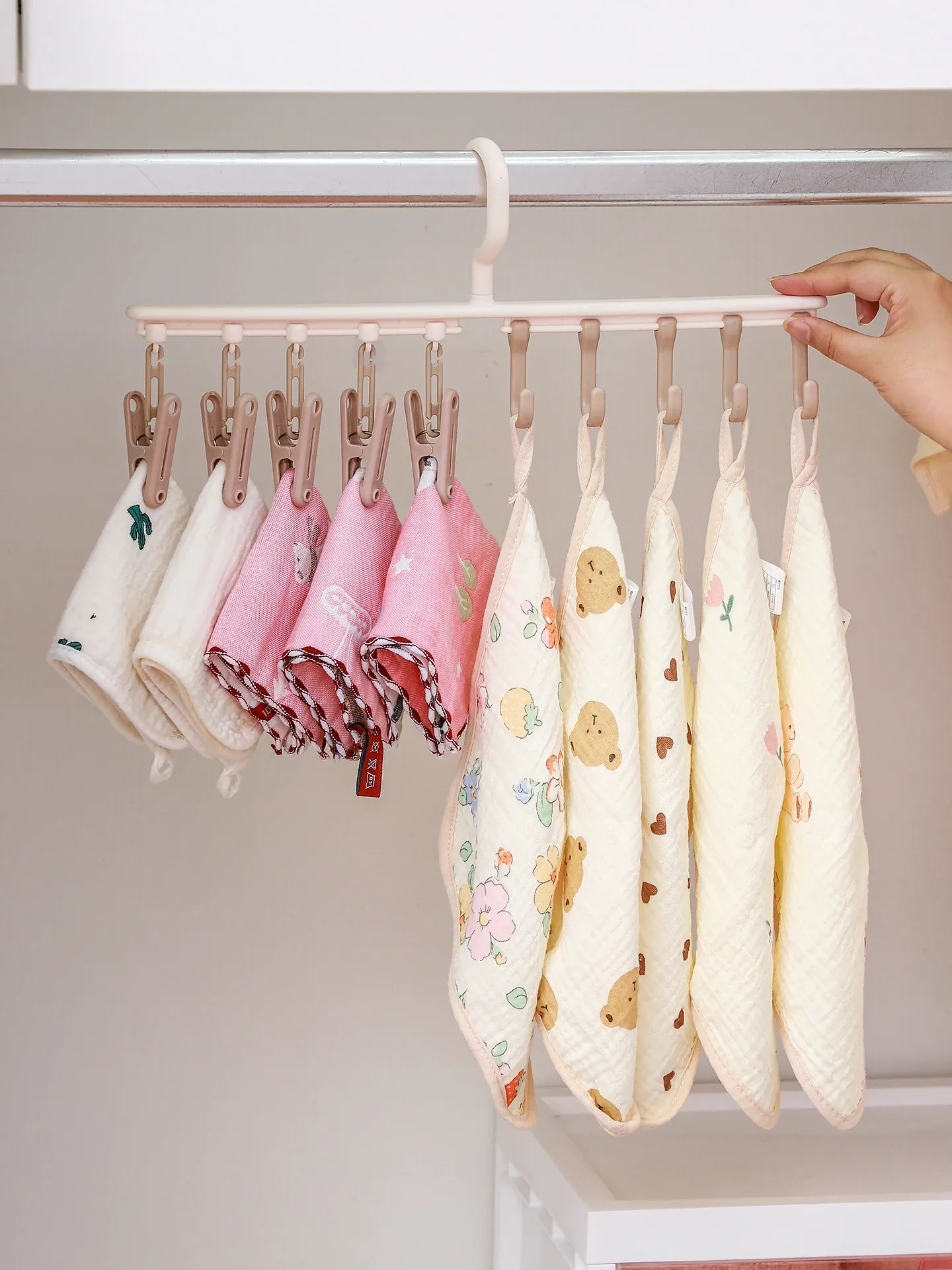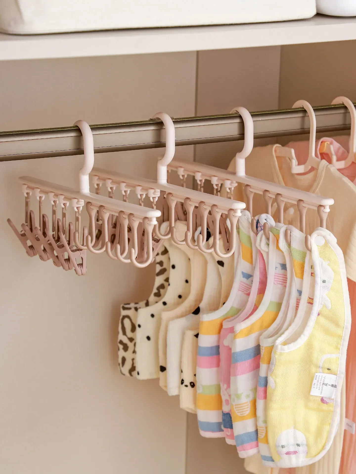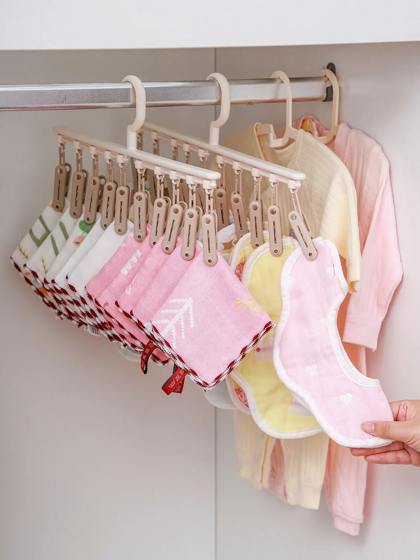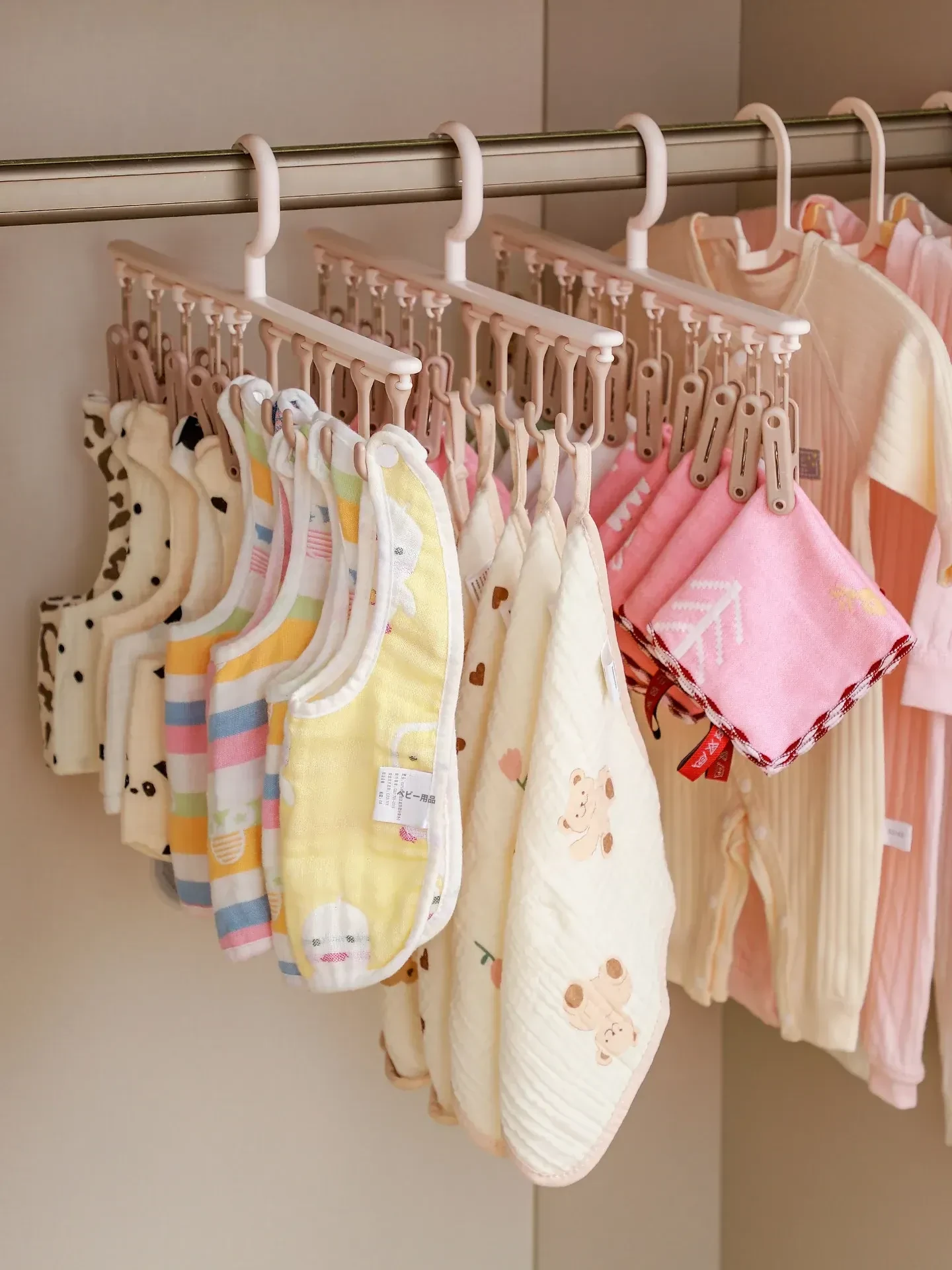 赤ちゃん専用ハンガー 多クリップ 新生児やベビーソックスの乾燥に最適!家庭用マルチ機能衣類ハンガーで、収納も簡単&スペース節約!