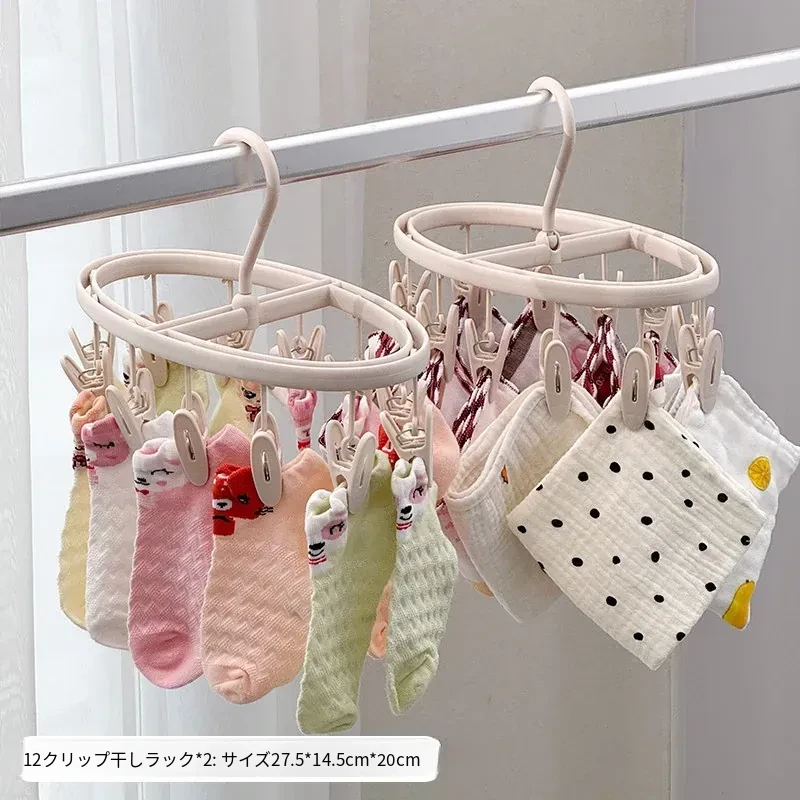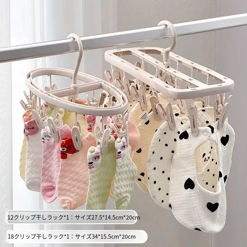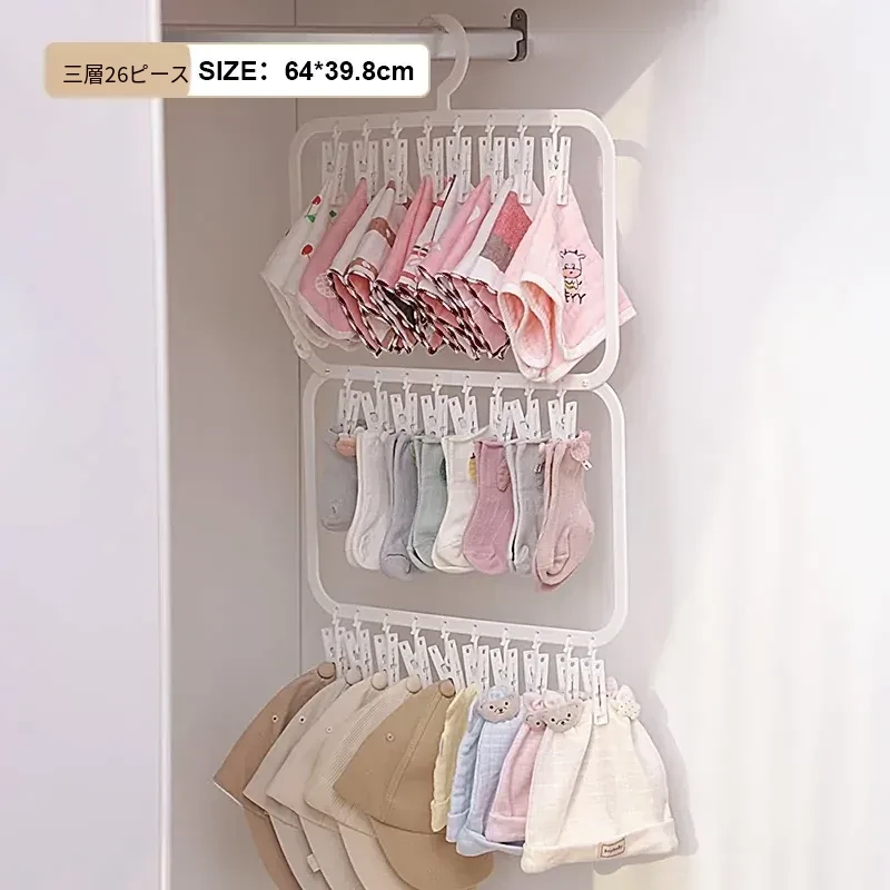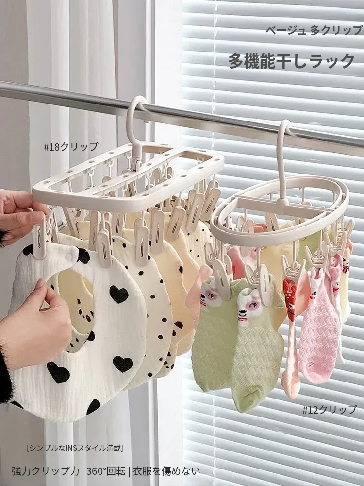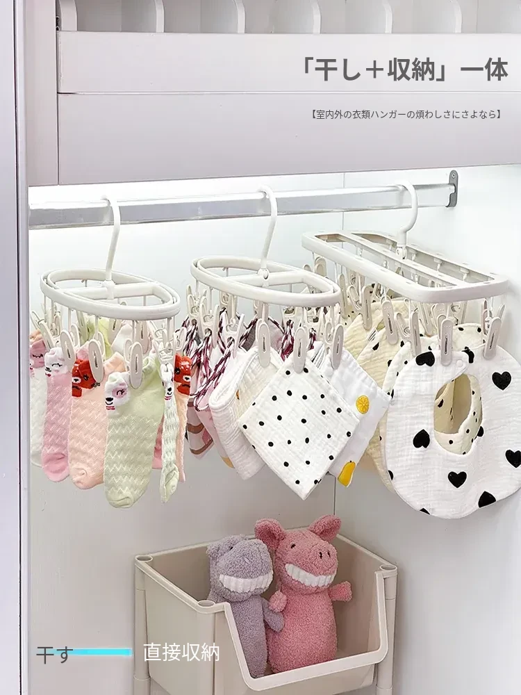 多機能ベビー用干しラック - 家庭用バルコニーに最適!赤ちゃんの衣類や靴下も一気に干せる便利なアイテム!収納も簡単で、スペースを有効活用!