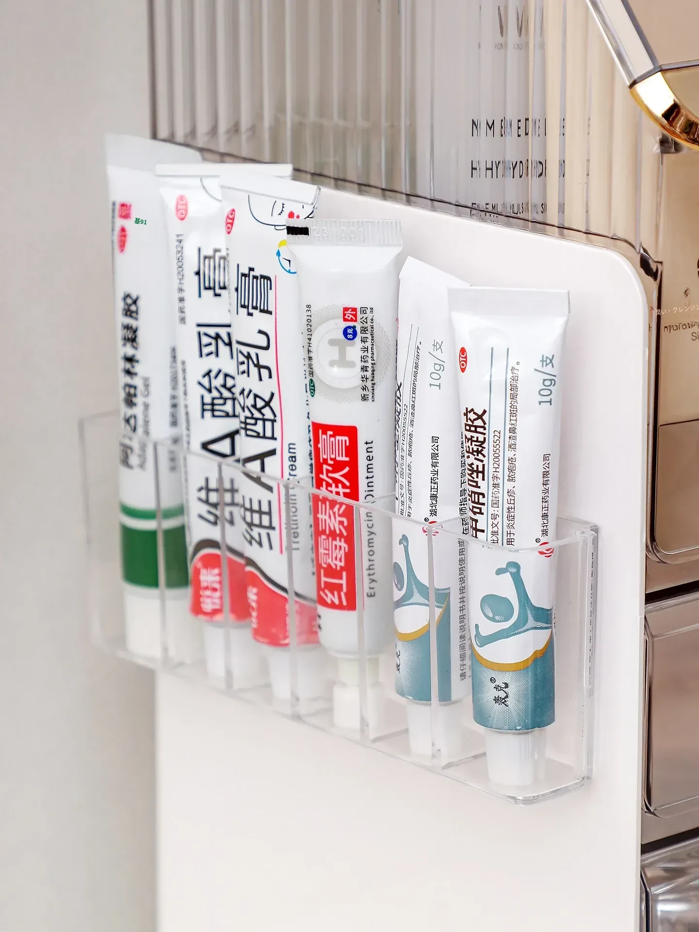 薬膏収納ボックス デスクトップ仕切り付き 薬品整理の必需品!家庭用多機能小型クリーム薬物ラックで、すっきりとした空間を実現!