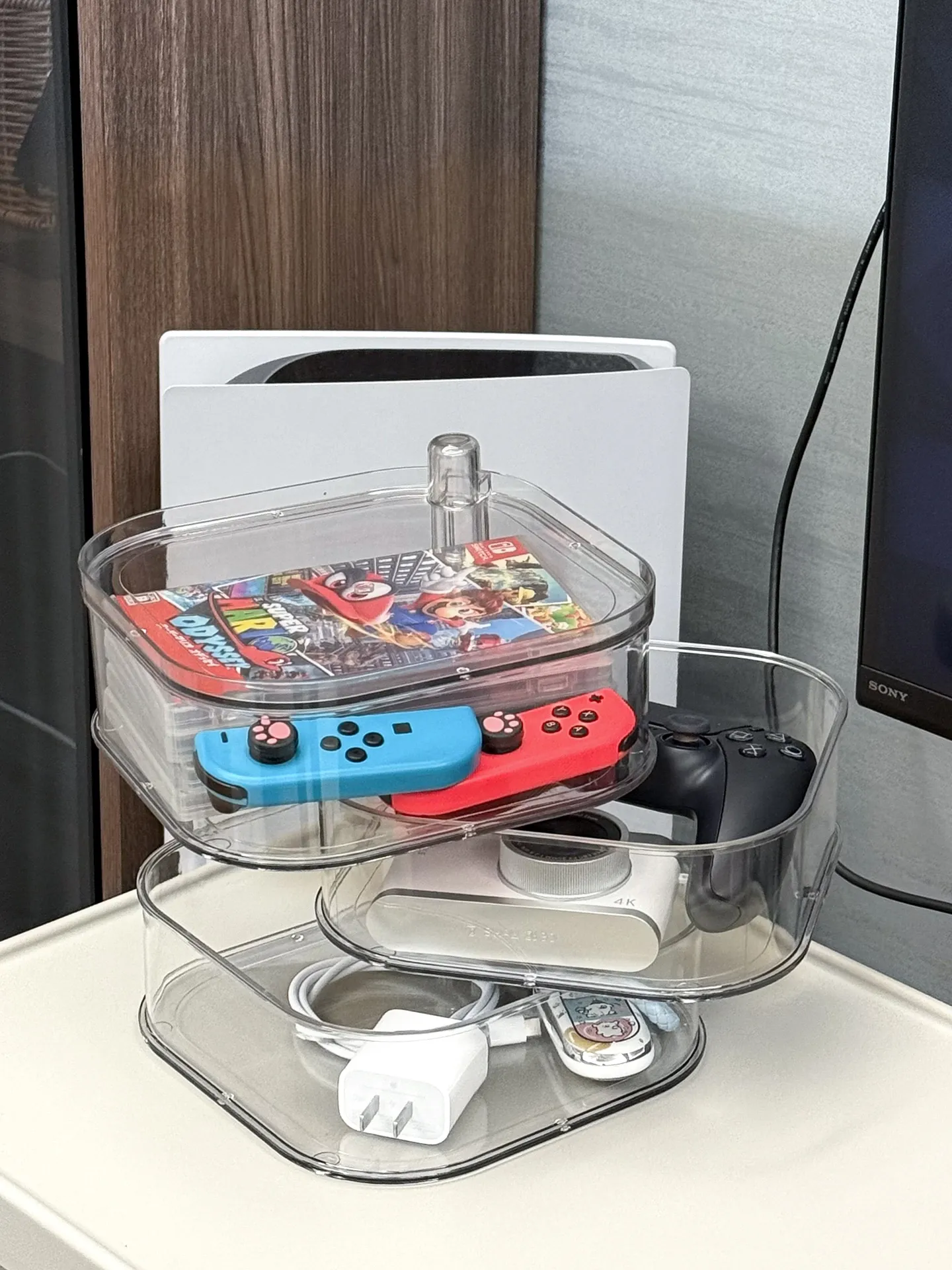 ゲームコントローラー用アクリルスタンド - 回転式Nintendo Switchゲームカード収納ボックス&多機能充電ケーブルホルダー!整理整頓もおしゃれに、ゲームライフをもっと快適に!