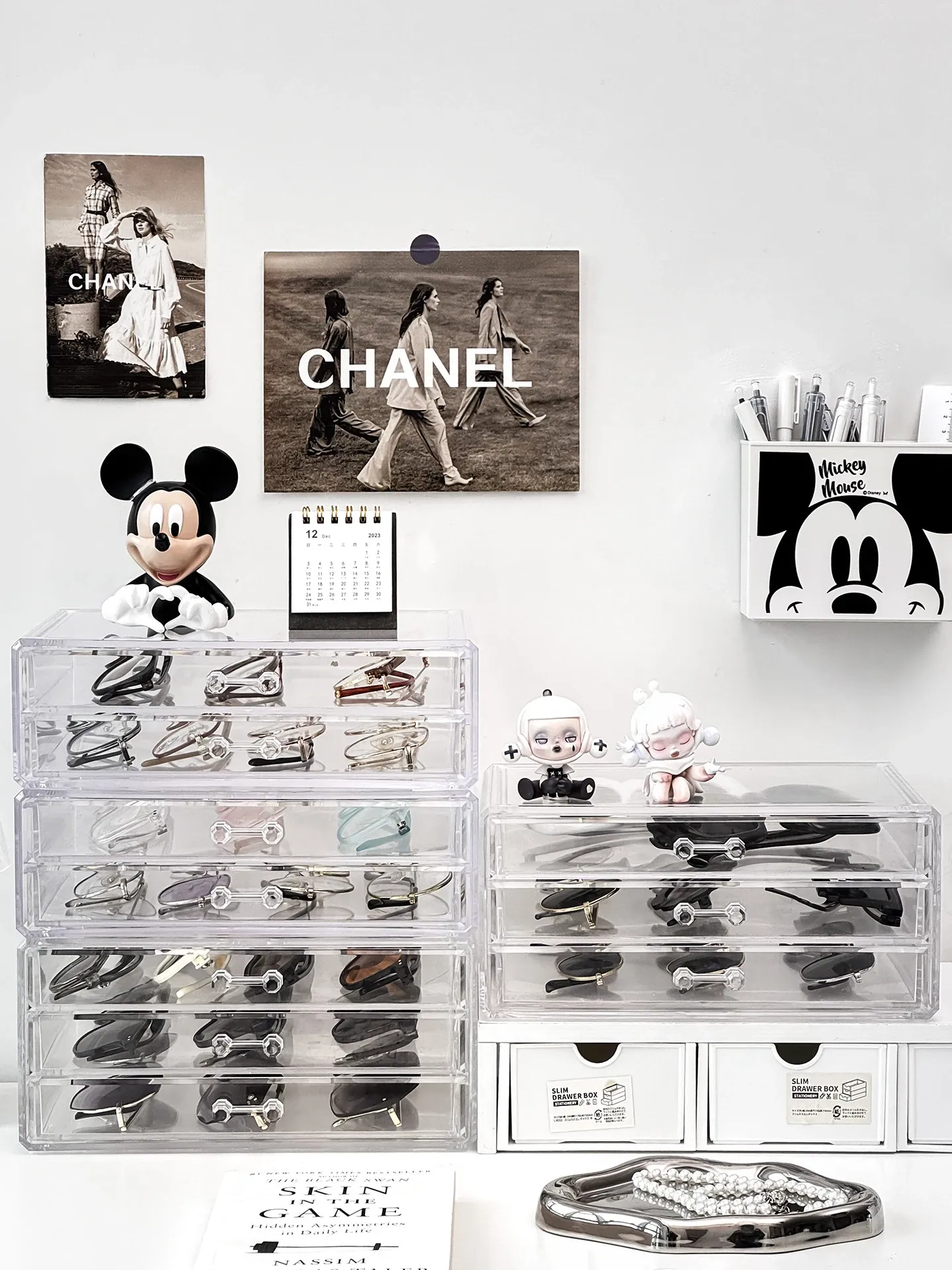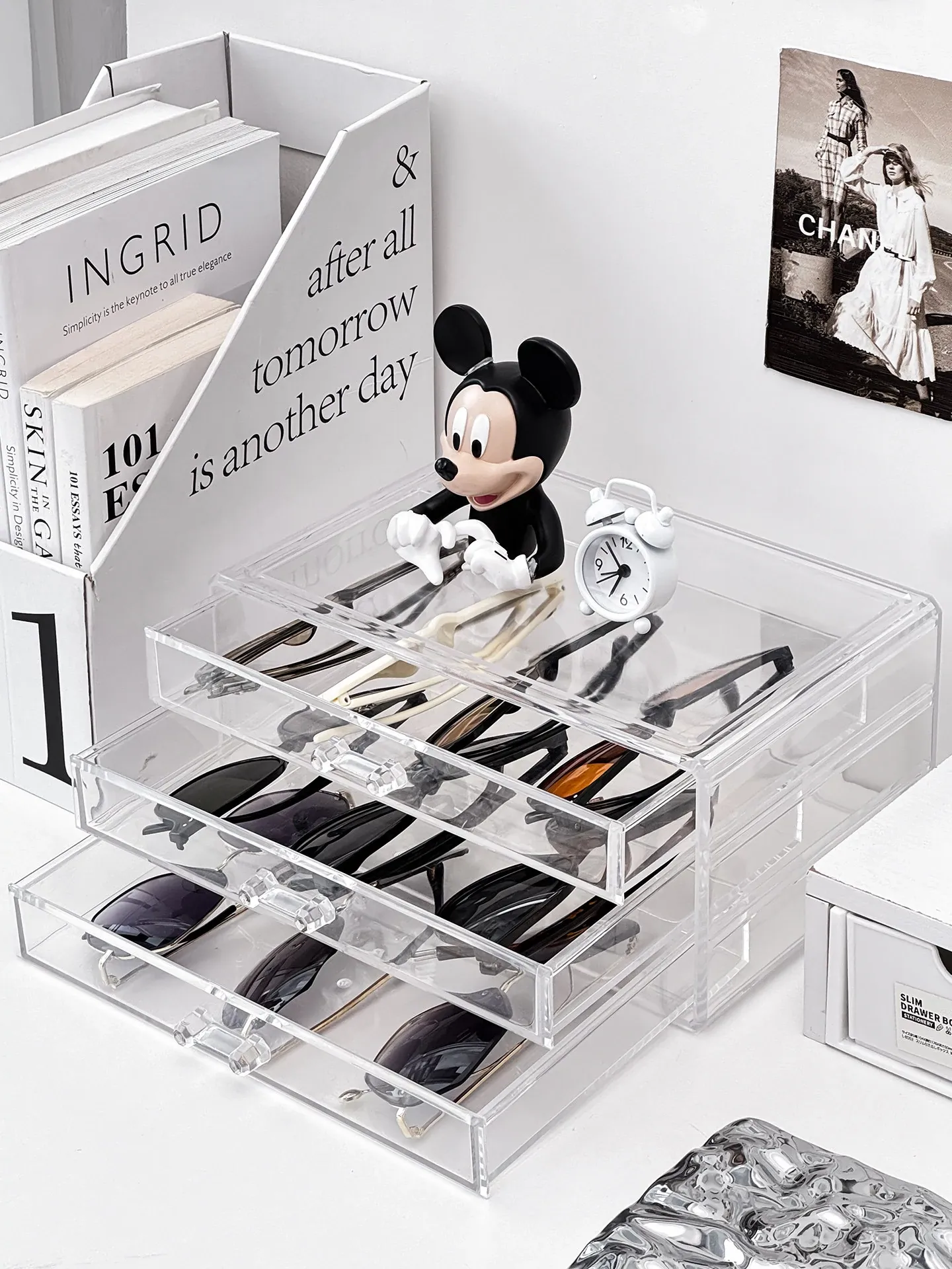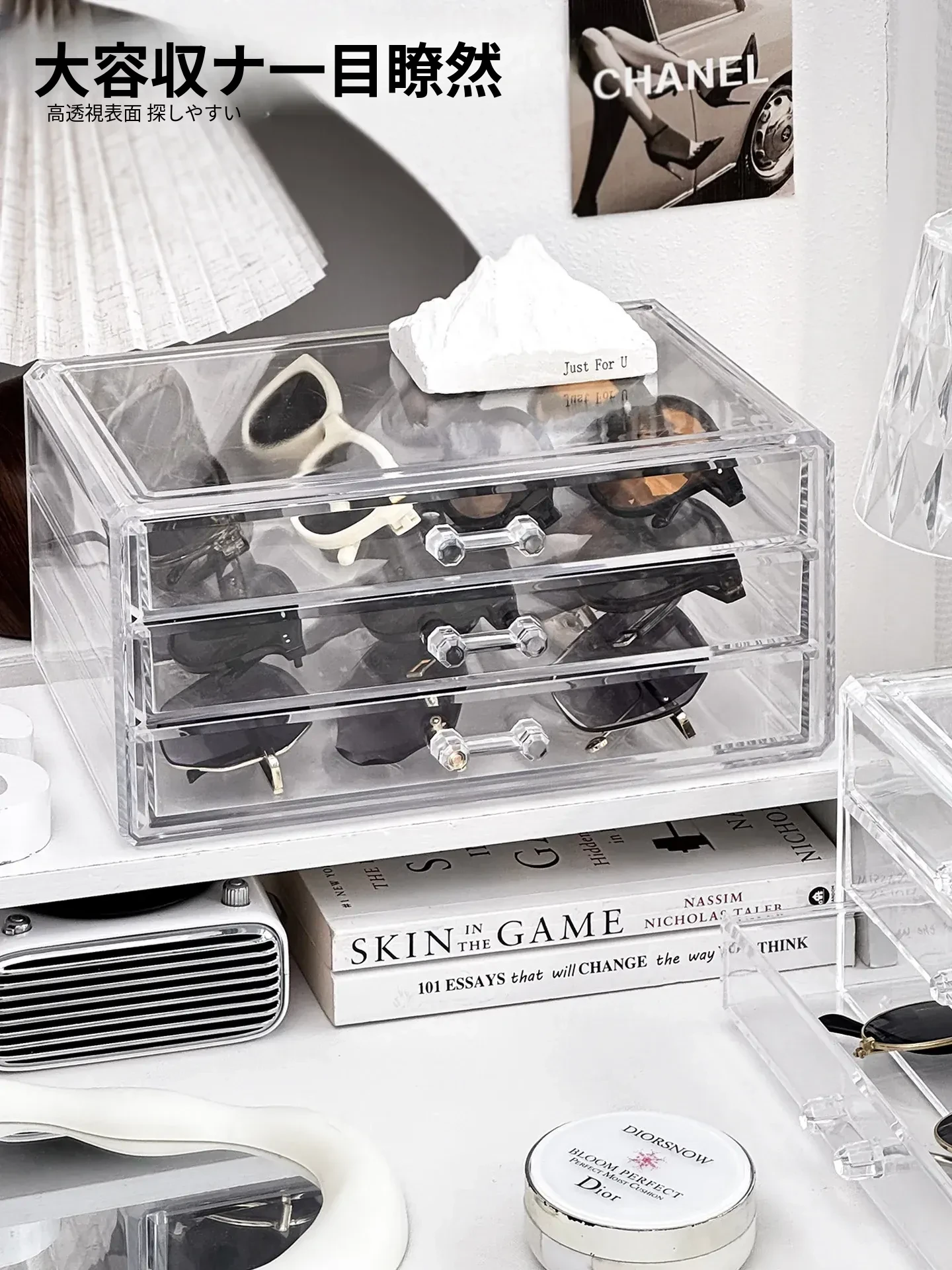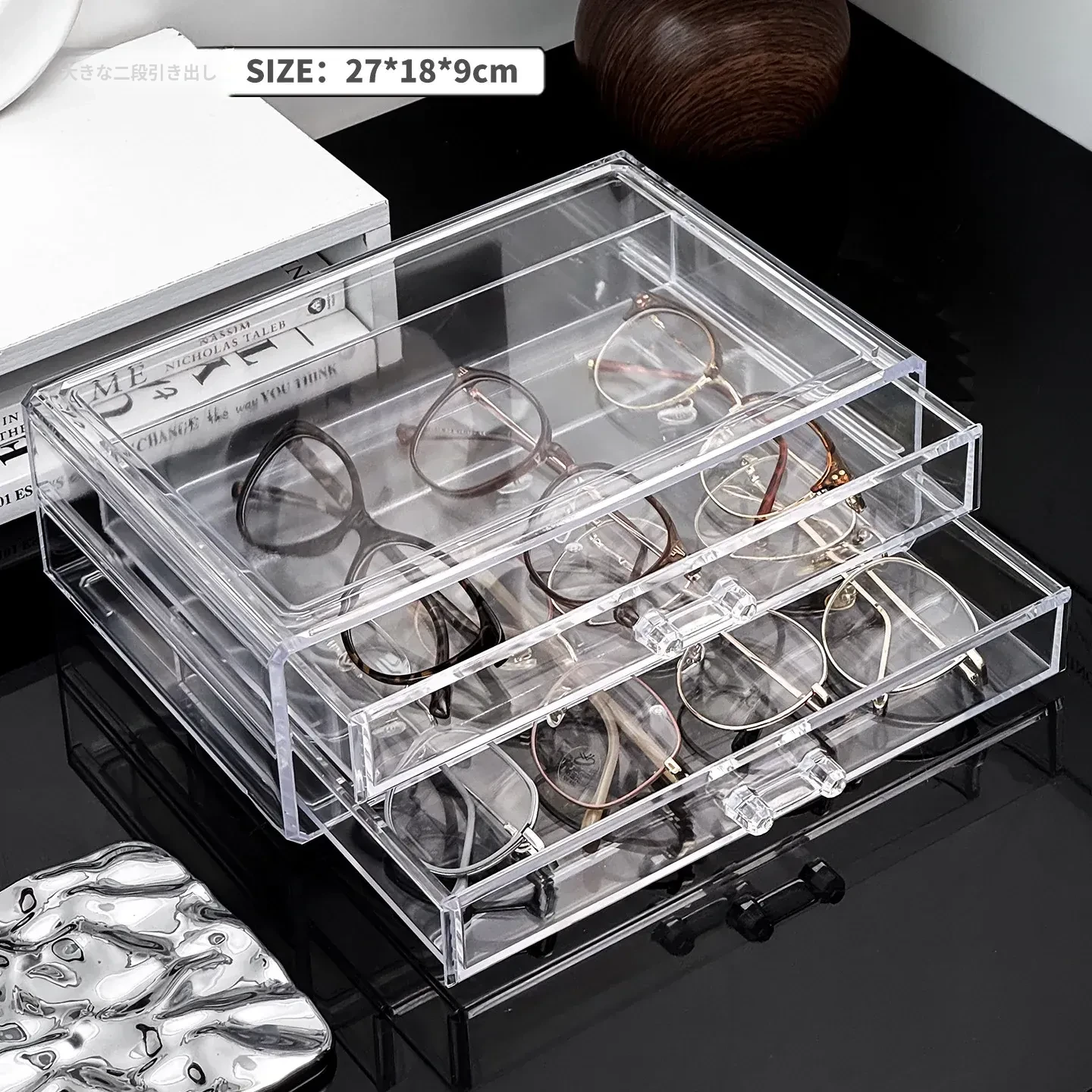 多層アクリル製サングラス収納ボックス - 引き出し式デザインで、デスク上のスペースを有効活用!防塵・耐衝撃で、大切なサングラスをしっかり守ります。おしゃれなディスプレイにも最適!