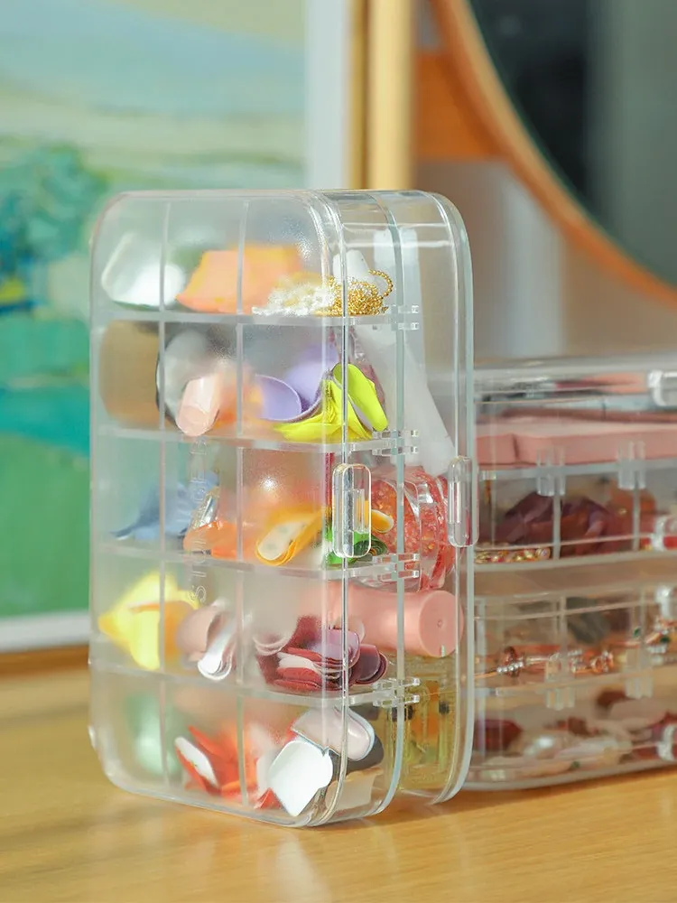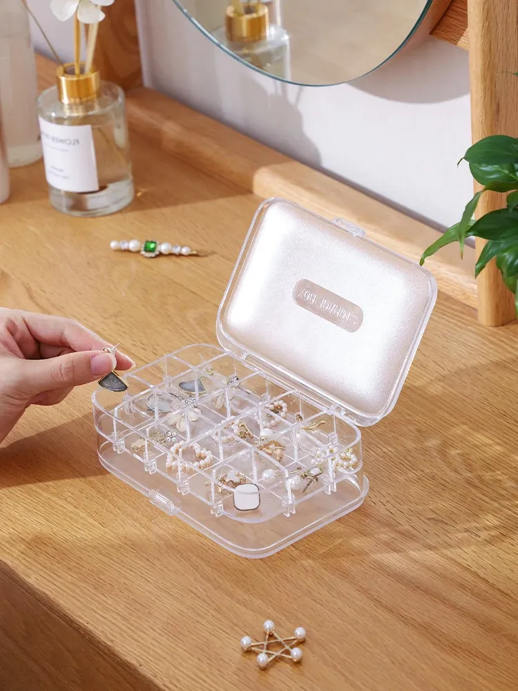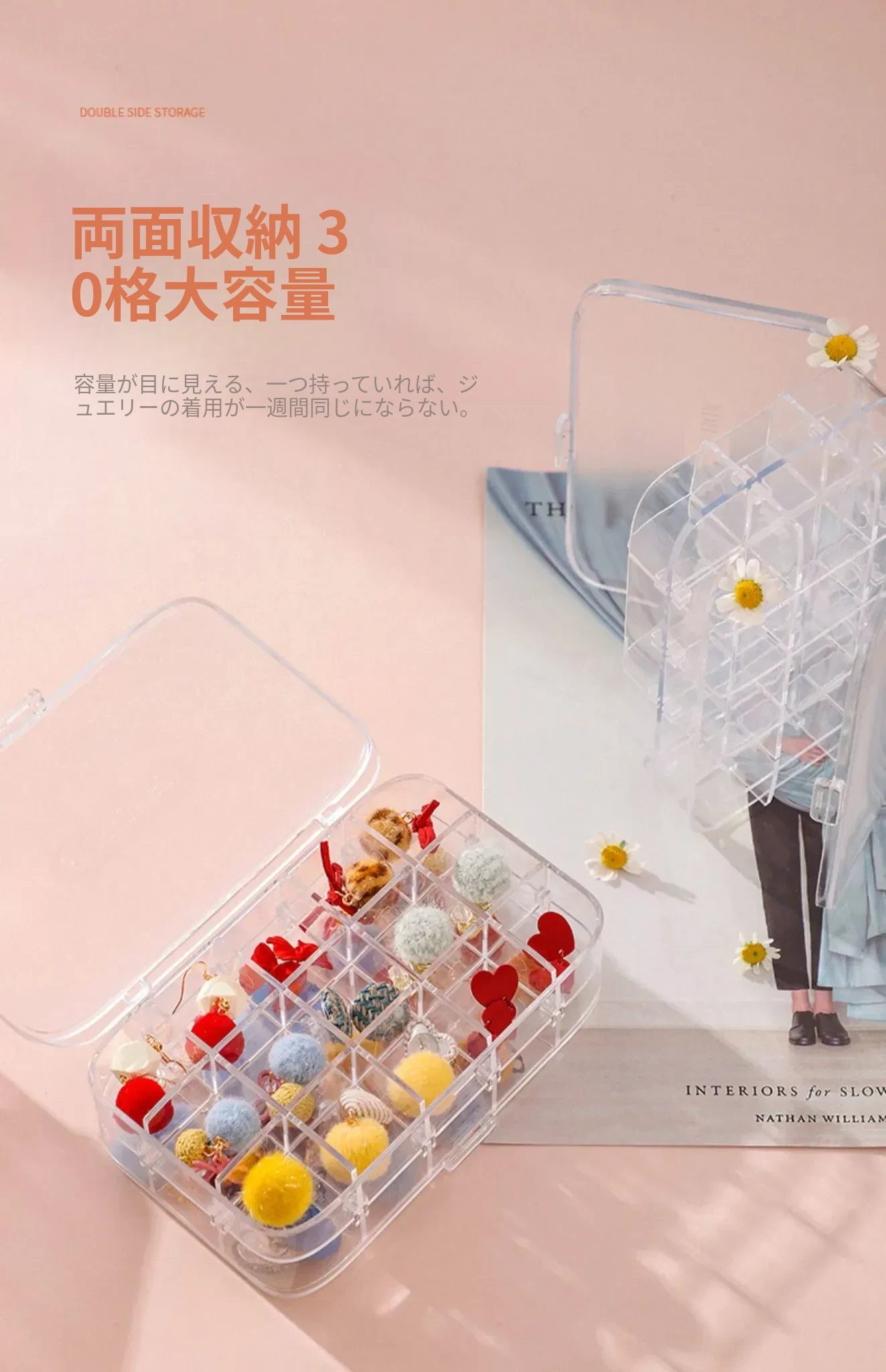 多層アクセサリー収納ボックス - 耳飾りやピアスをしっかり守る防塵ケース!コンパクトで持ち運び便利、透明デザインで中身が一目瞭然。あなたの大切なジュエリーを美しく収納しましょう!