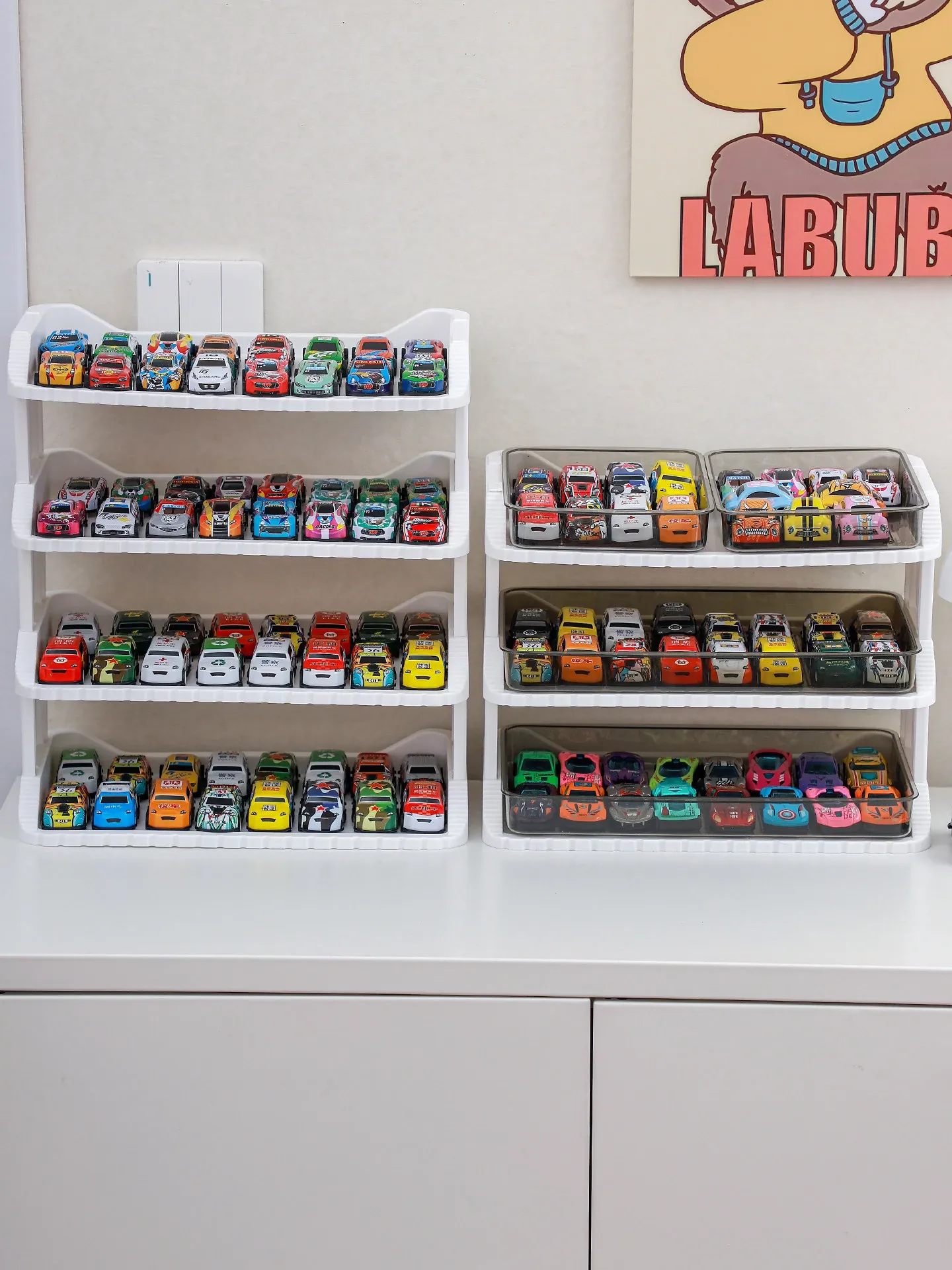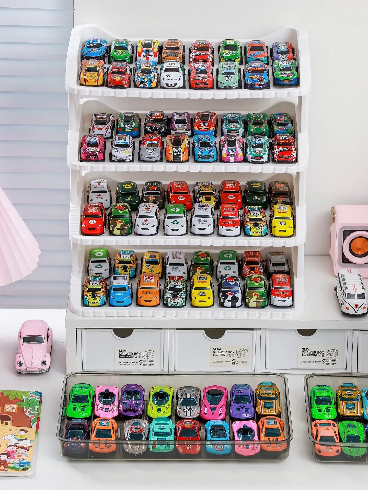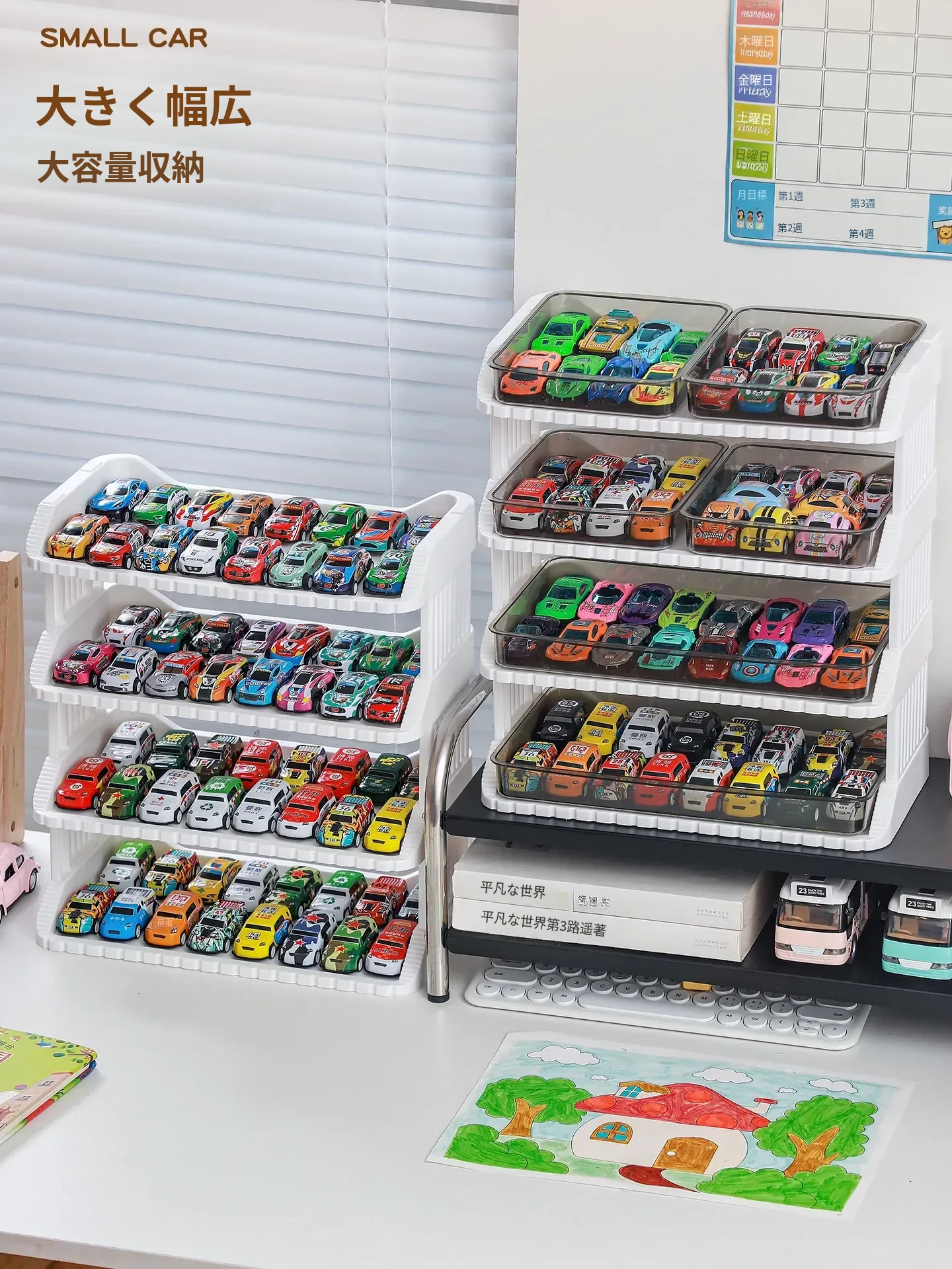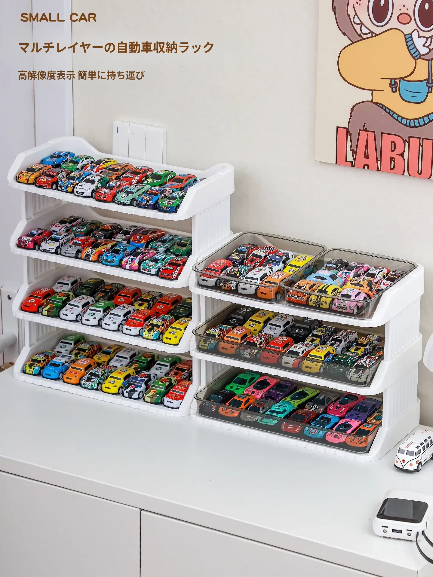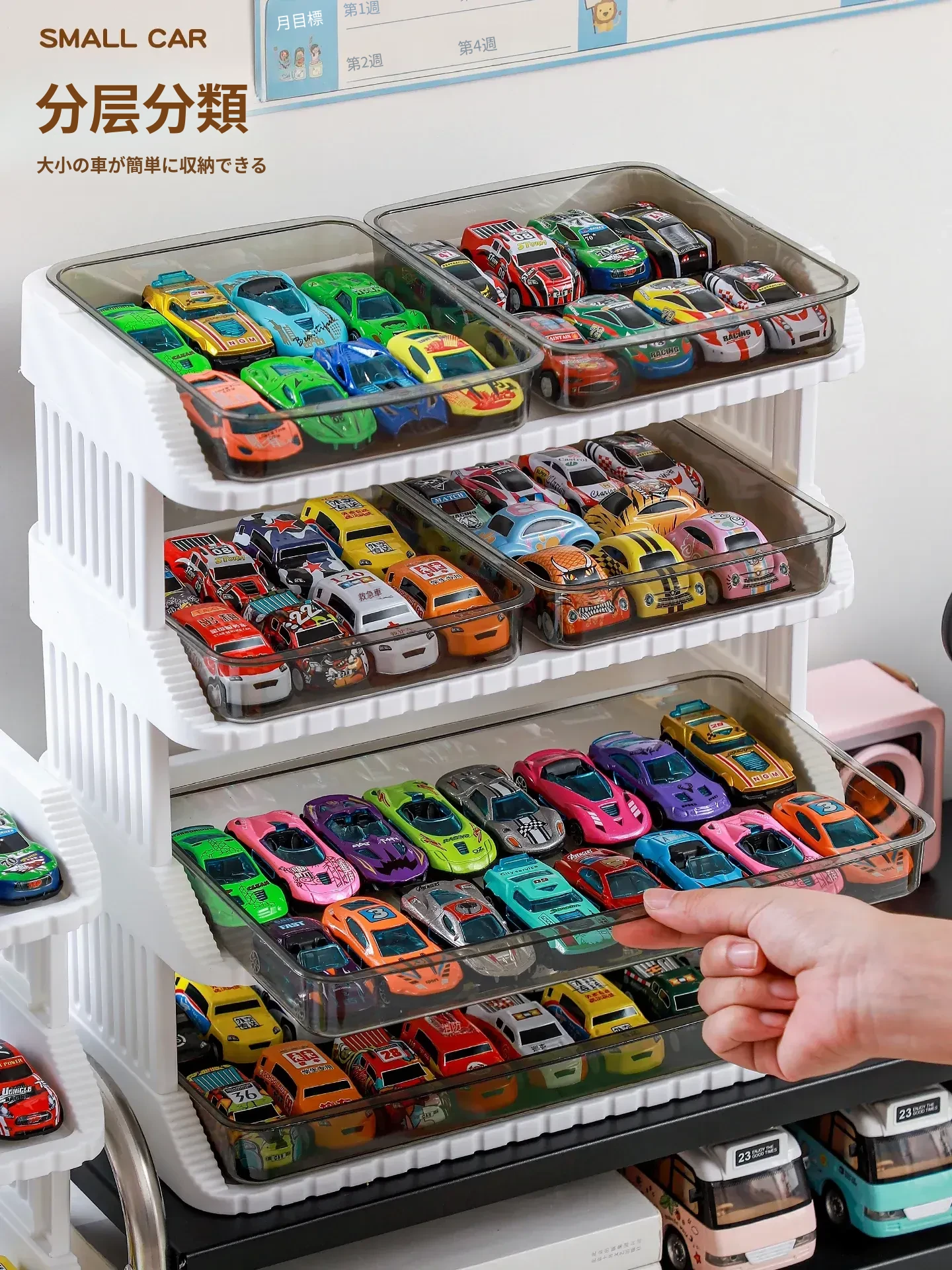 子供向け!1:64スケールの多層収納ボックス付き、魅力的な合金ミニカーコレクション。ホットウィールやダイキャストカーを美しくディスプレイ!お部屋を彩る素敵なインテリアにも最適です。