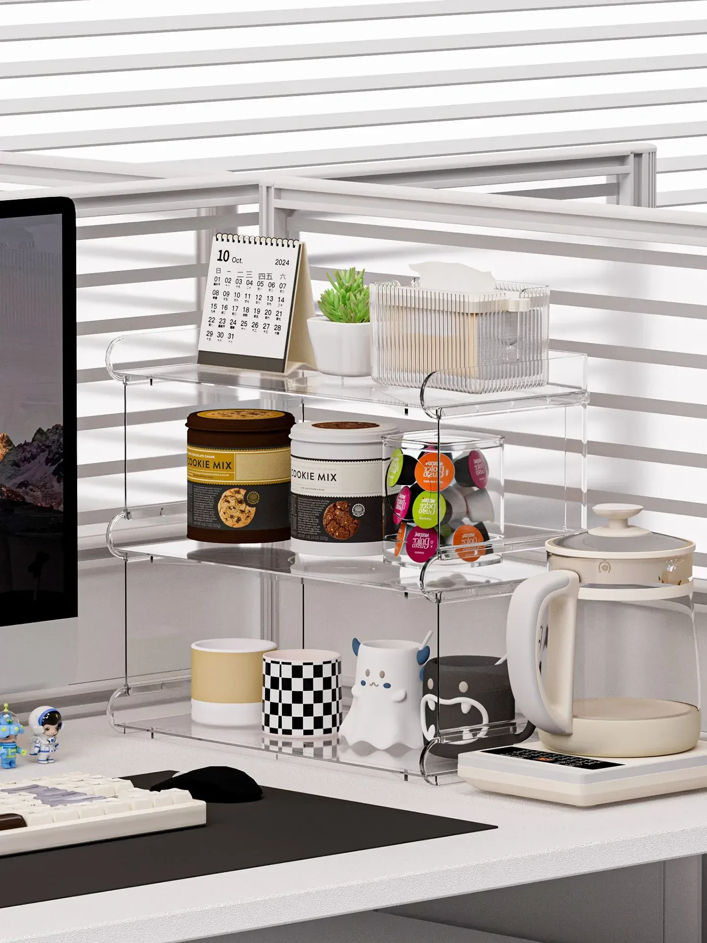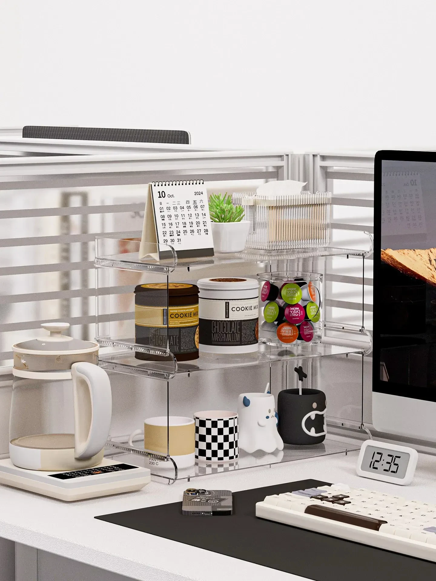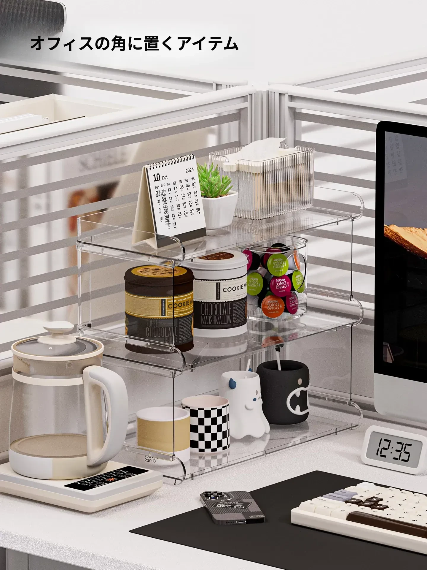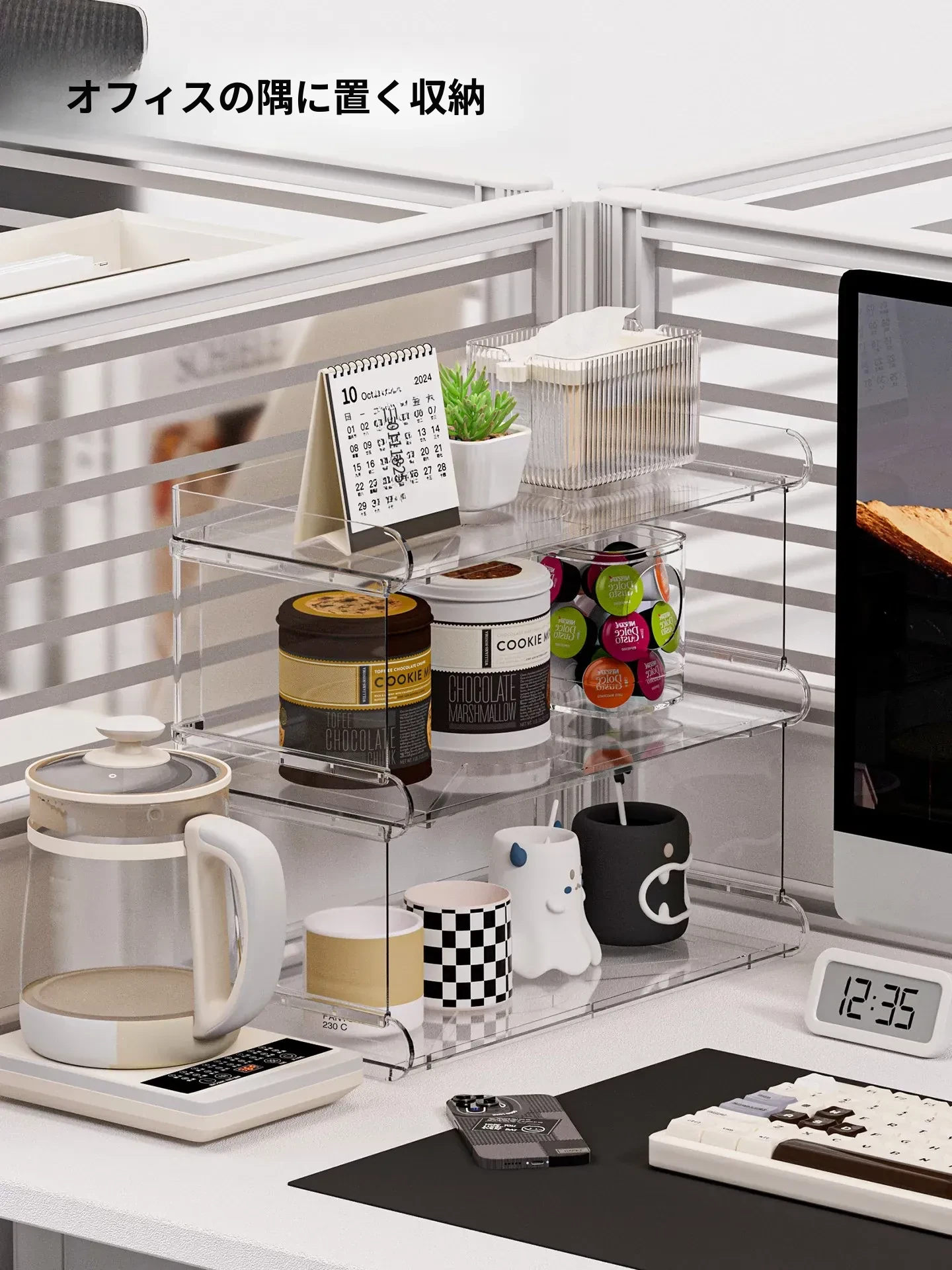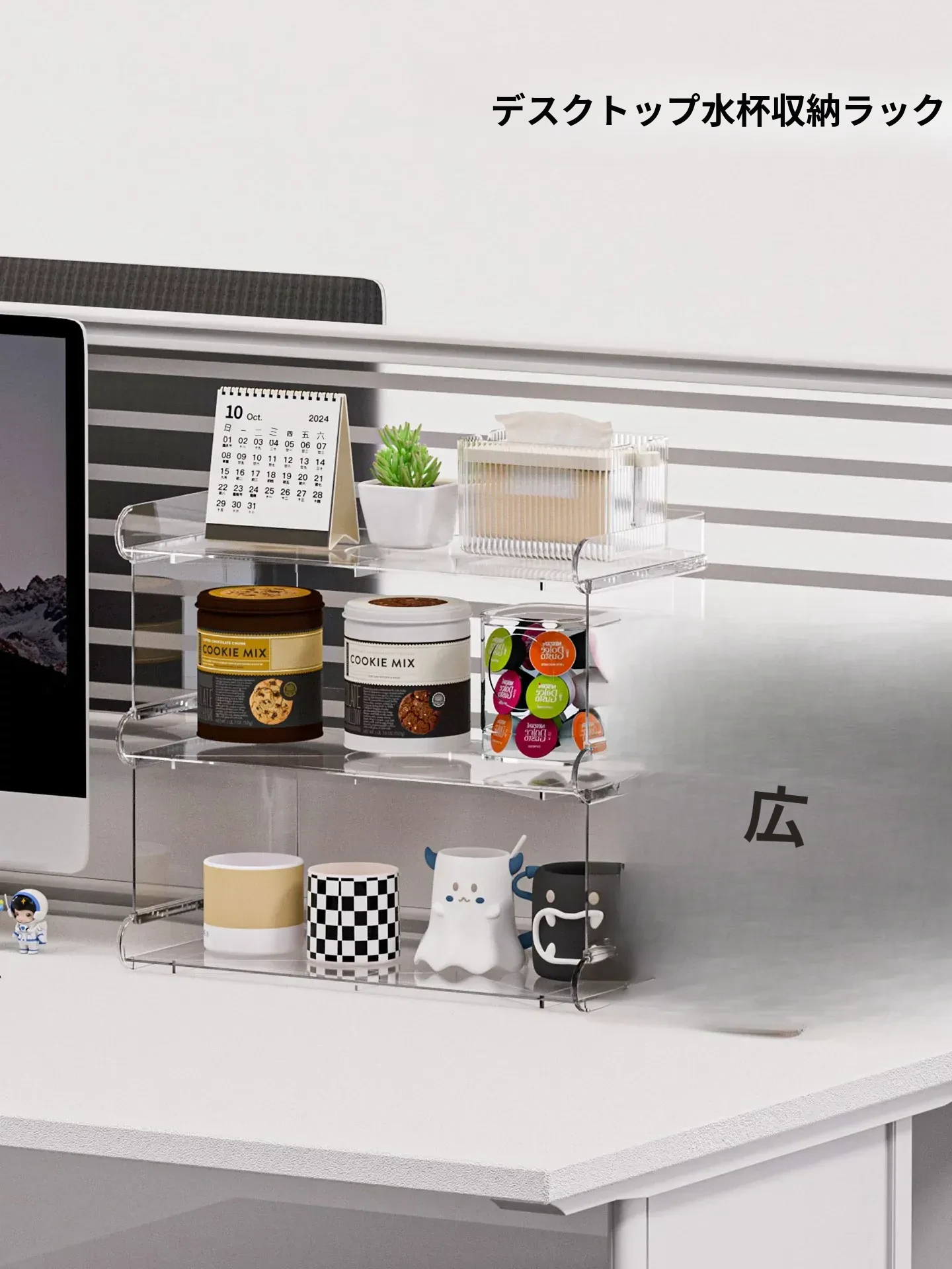 オフィスデスクの収納革命!アクリル製多層デスクオーガナイザー - デスク上の水筒や小物をスッキリ整理、スタイリッシュなインテリアにも!