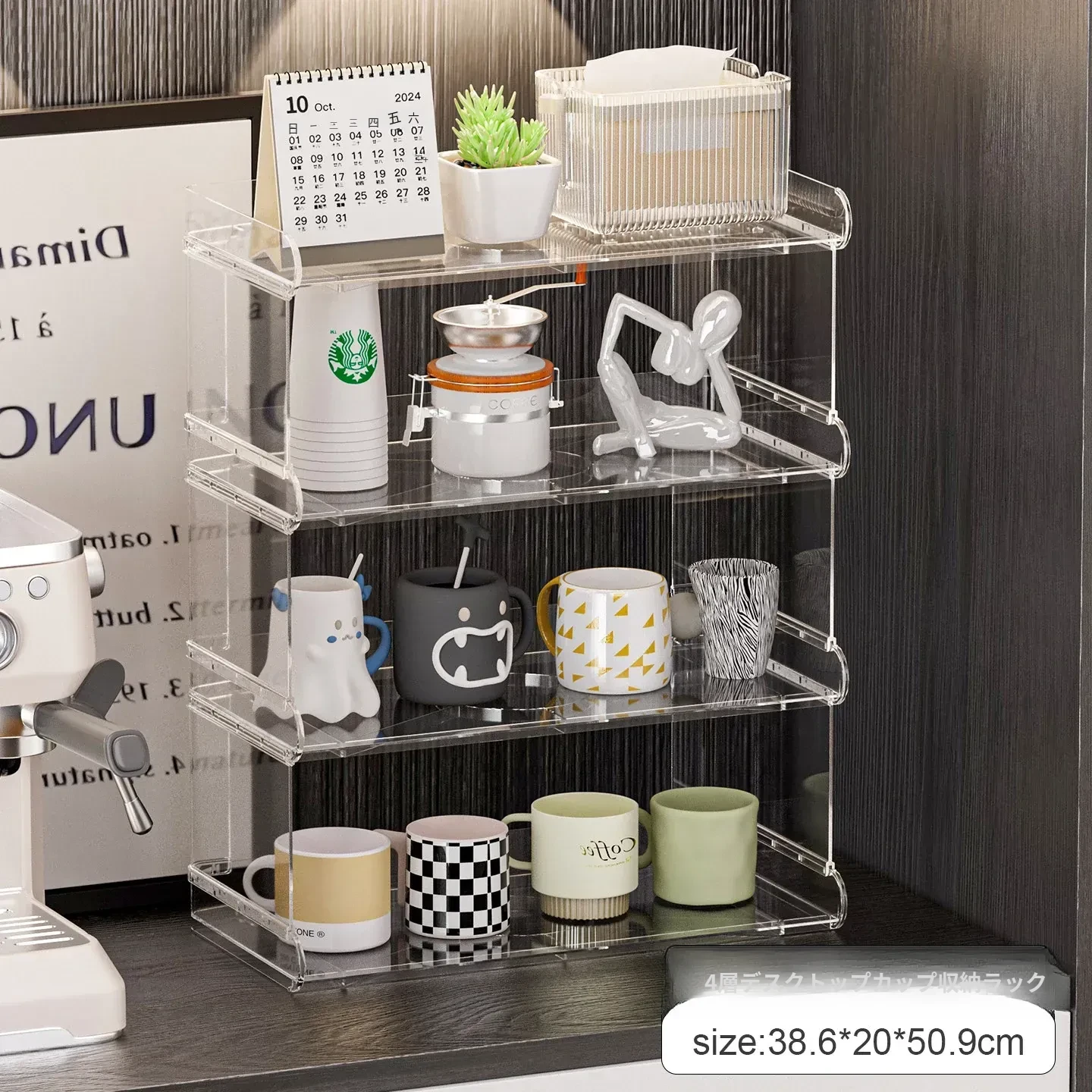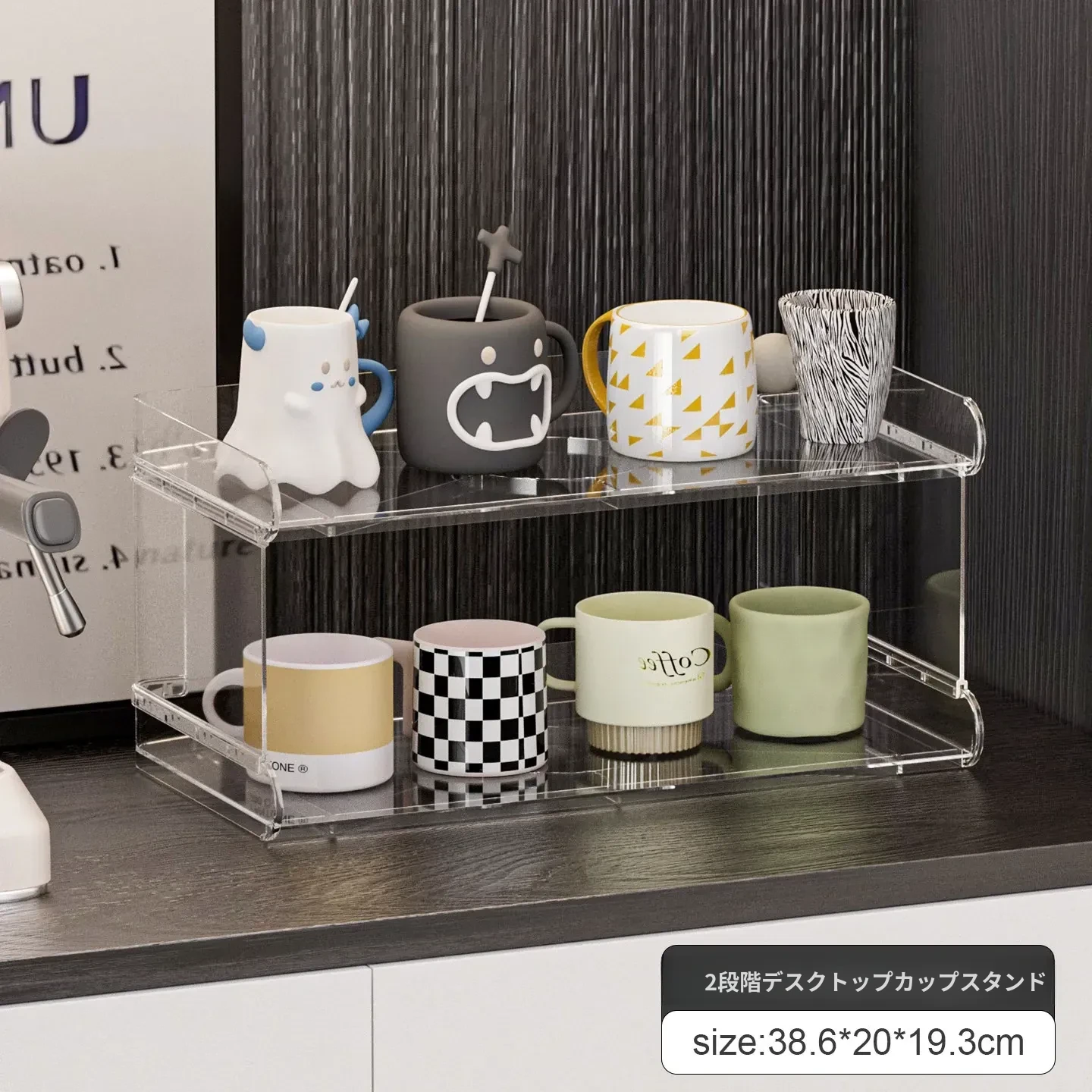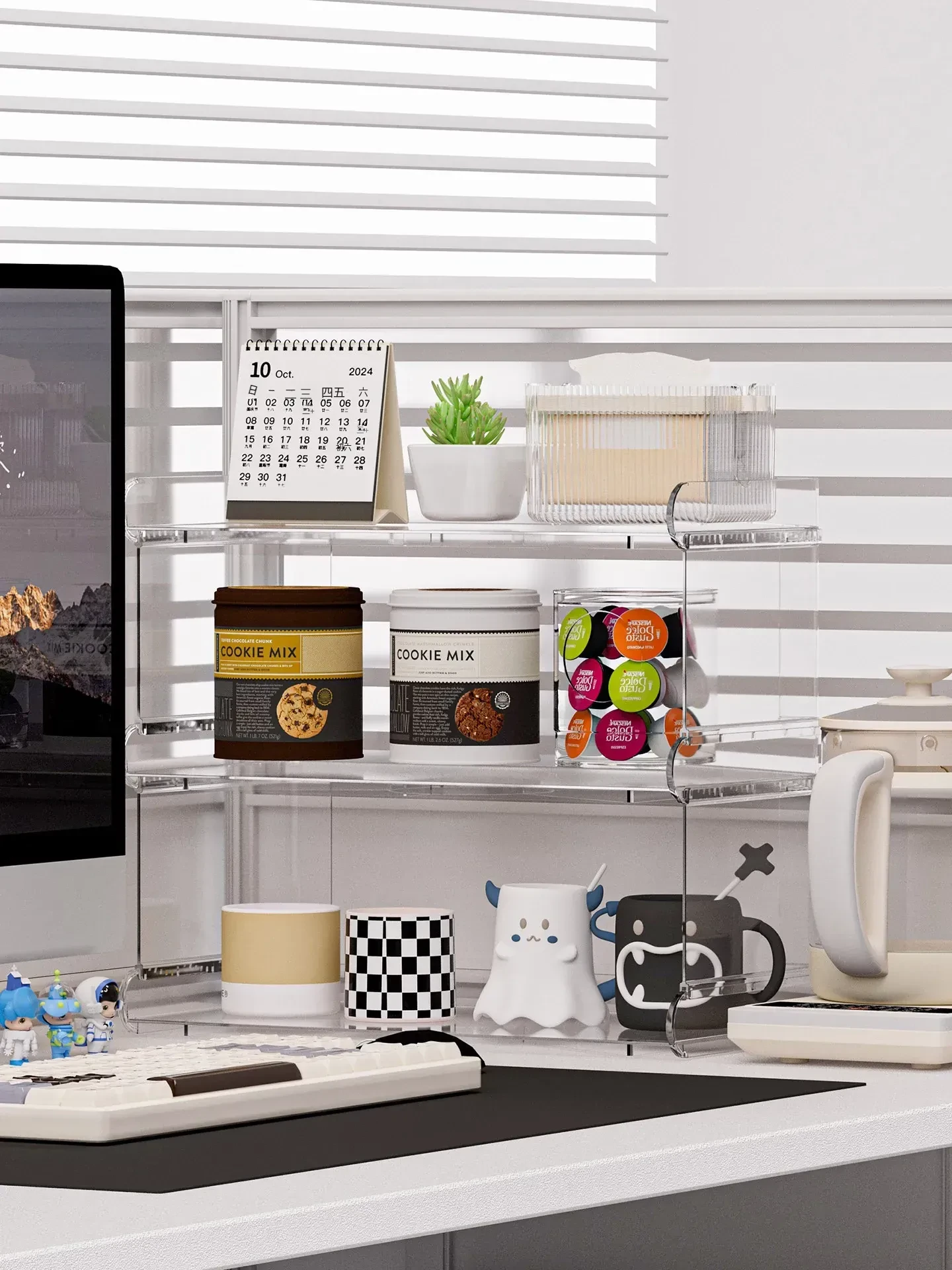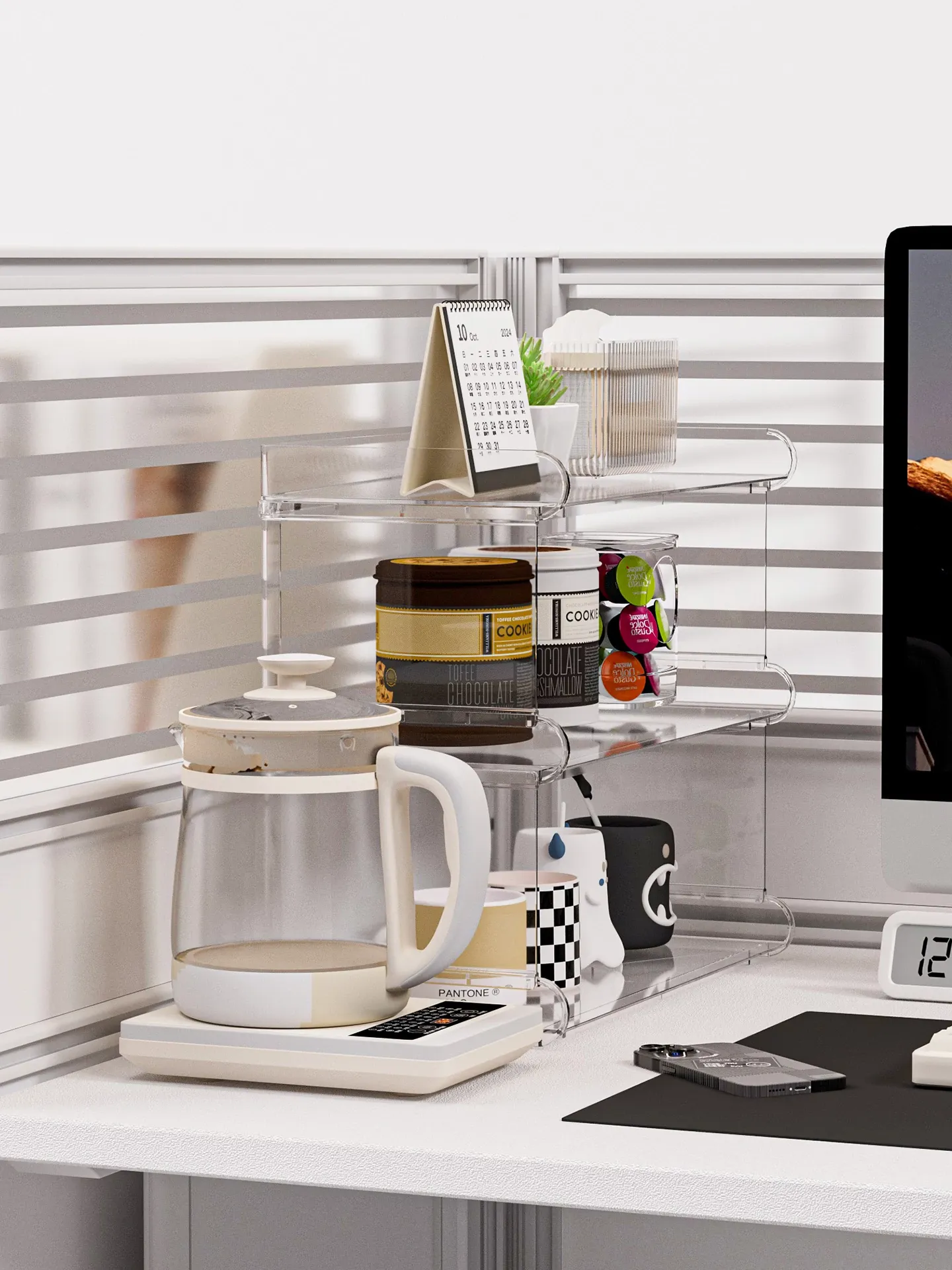 オフィスデスクの収納革命!アクリル製多層デスクオーガナイザー - デスク上の水筒や小物をスッキリ整理、スタイリッシュなインテリアにも!