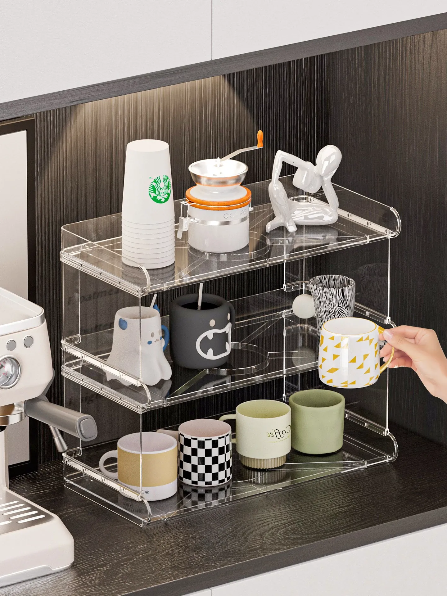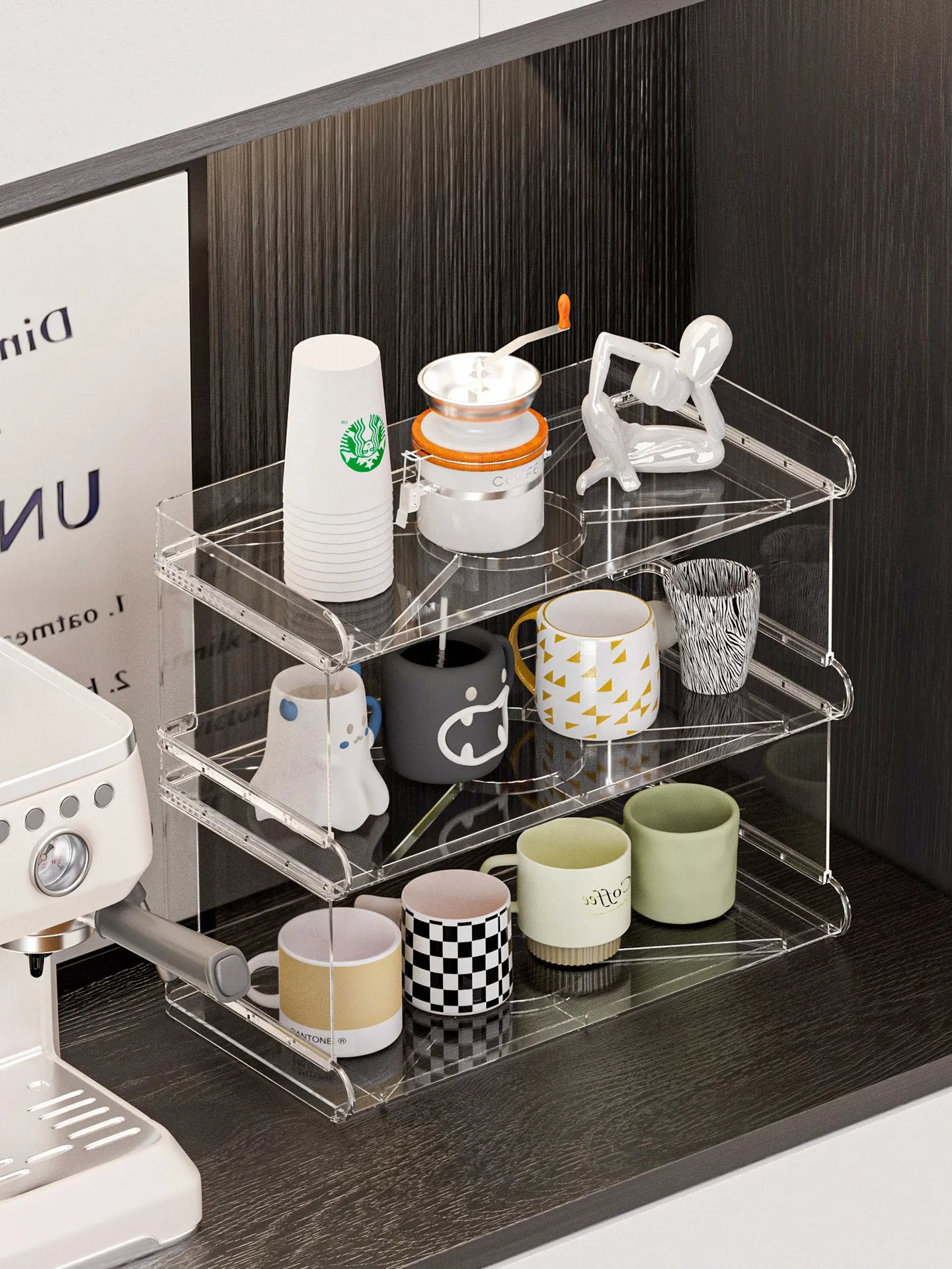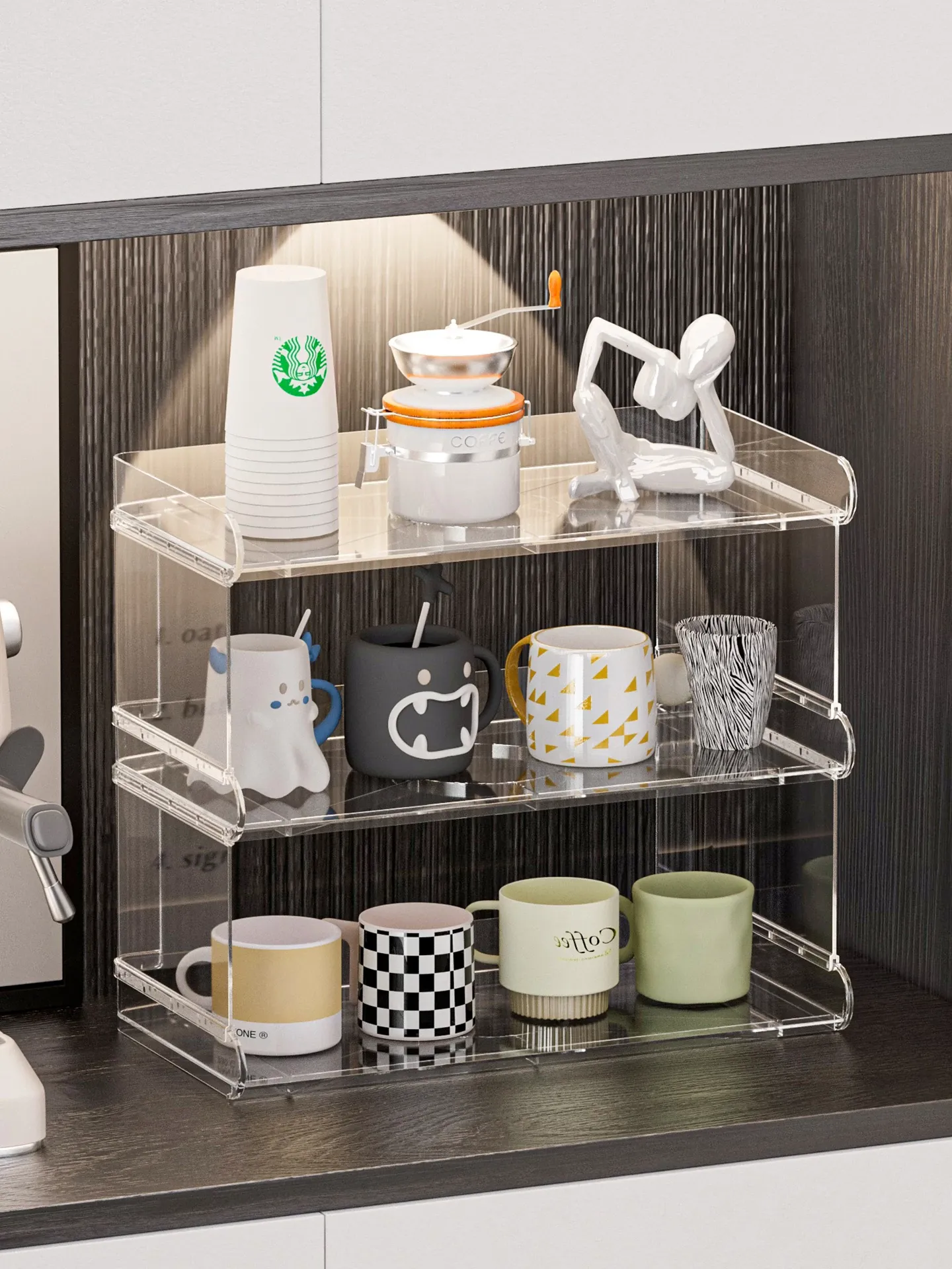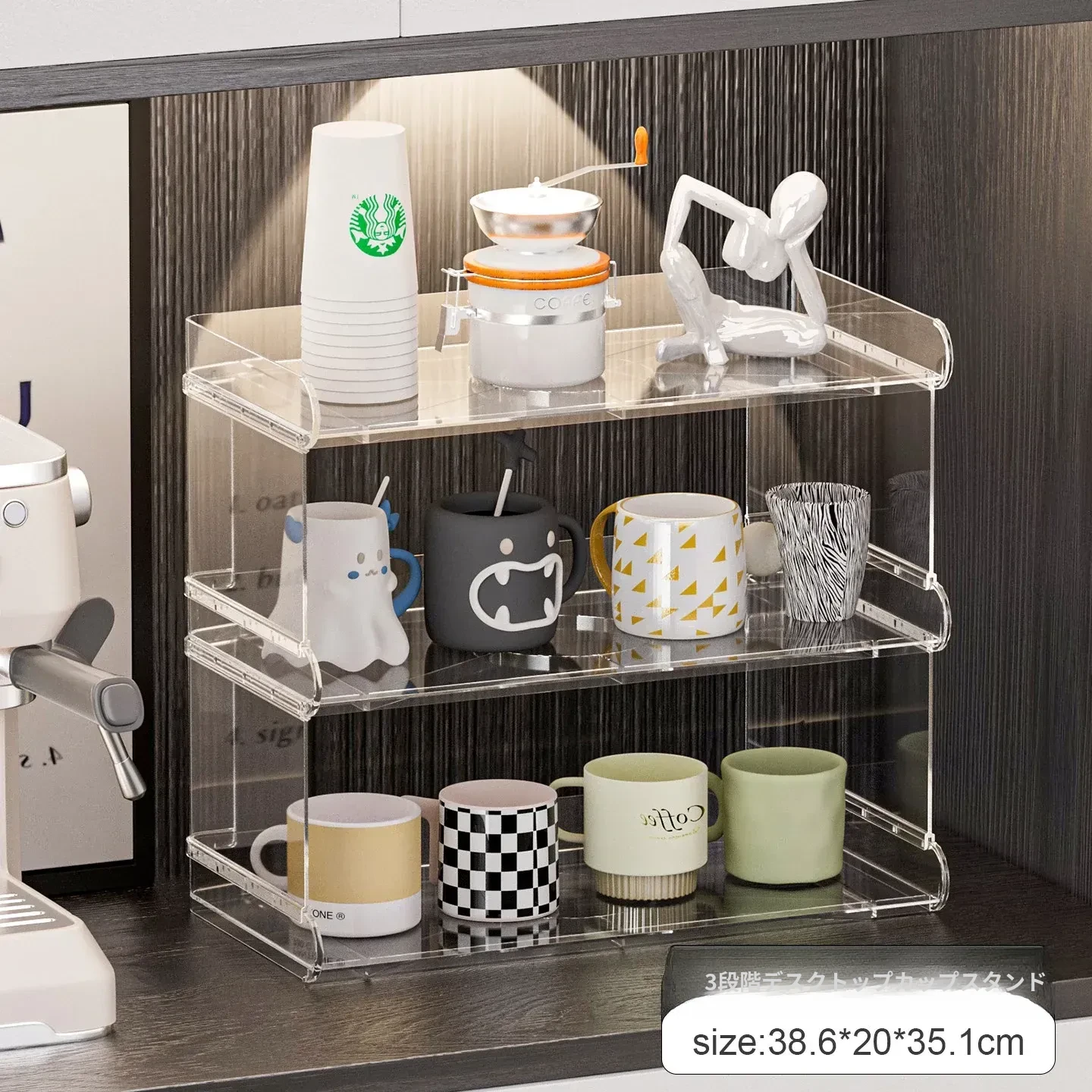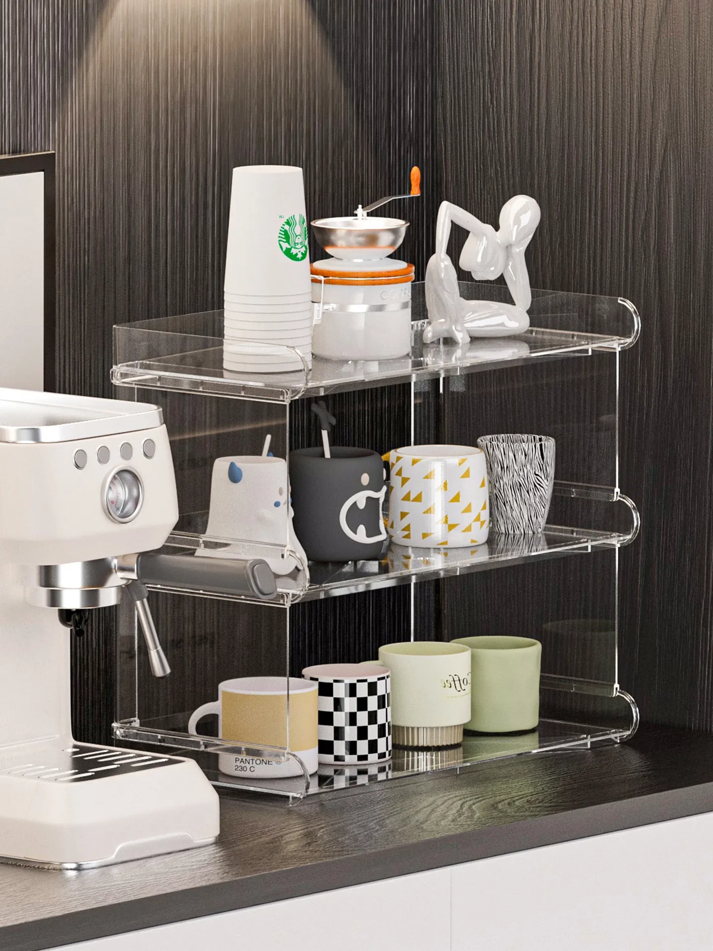 オフィスデスクの収納革命!アクリル製多層デスクオーガナイザー - デスク上の水筒や小物をスッキリ整理、スタイリッシュなインテリアにも!