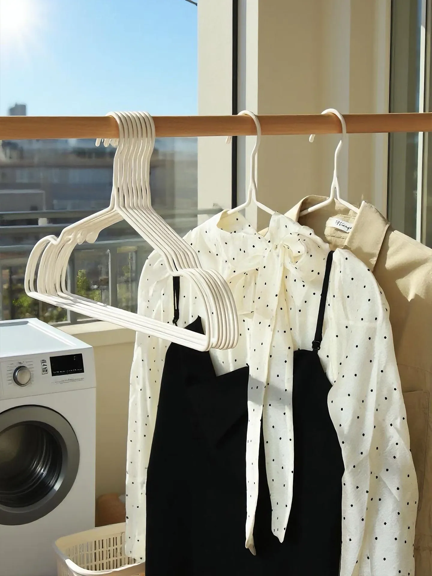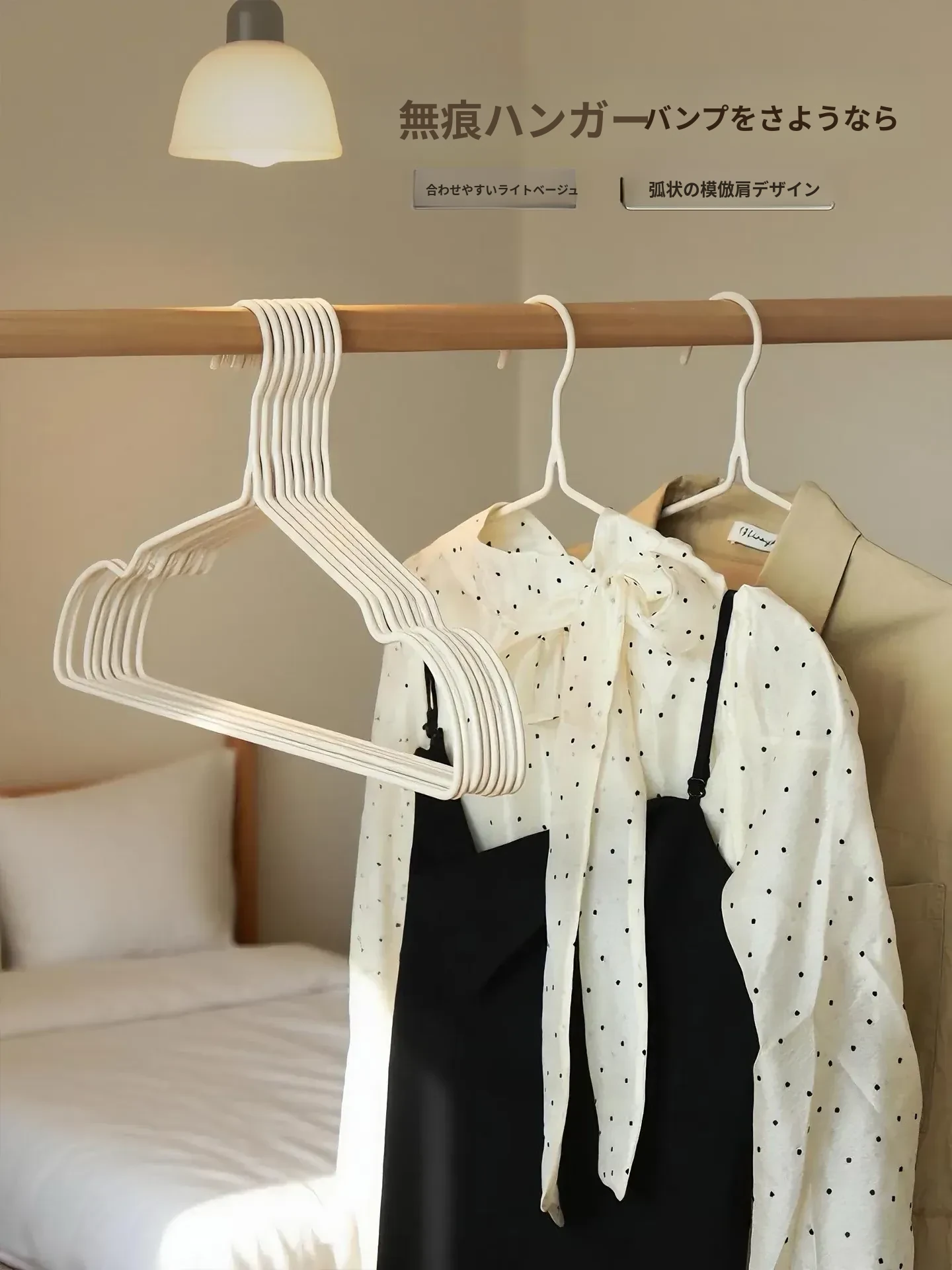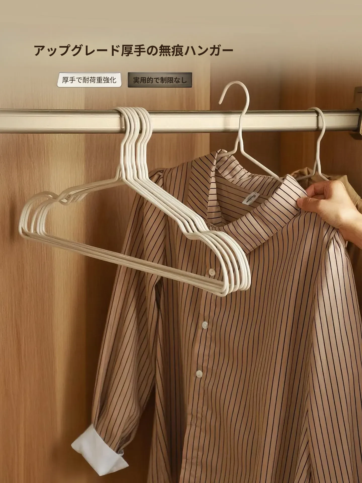 滑らない無痕の衣類ハンガー - 家庭用、バルコニーや学生寮に最適!肩を守る太めのデザインで、衣類をしっかり支え、収納も簡単。あなたの大切な衣類を美しく保つ必須アイテム!