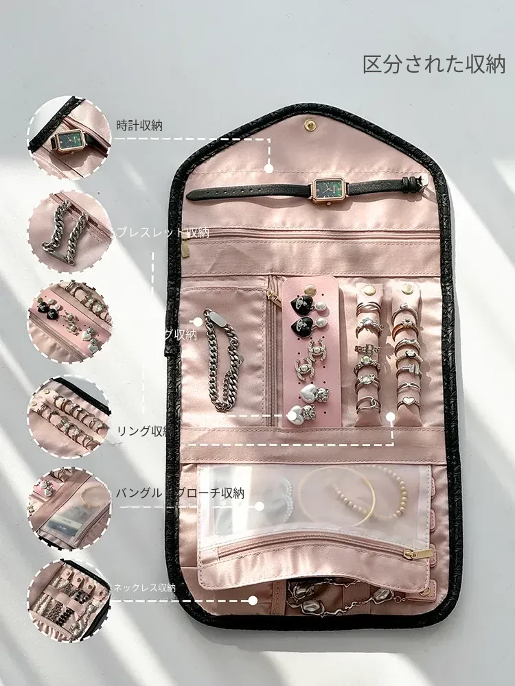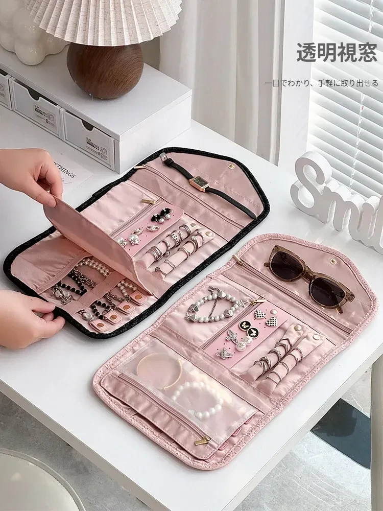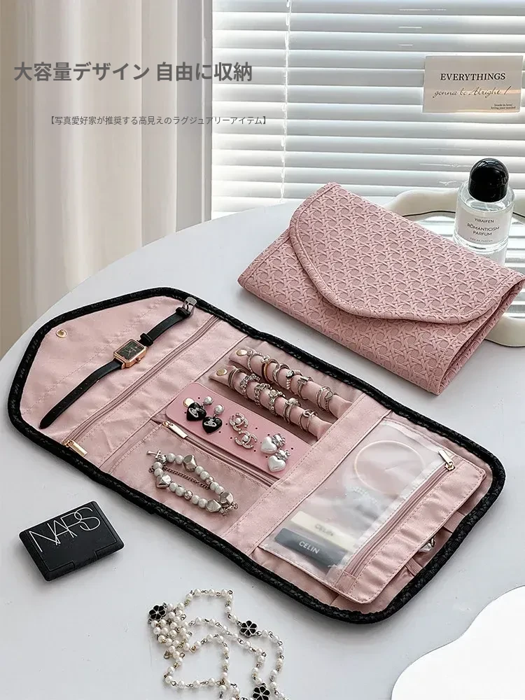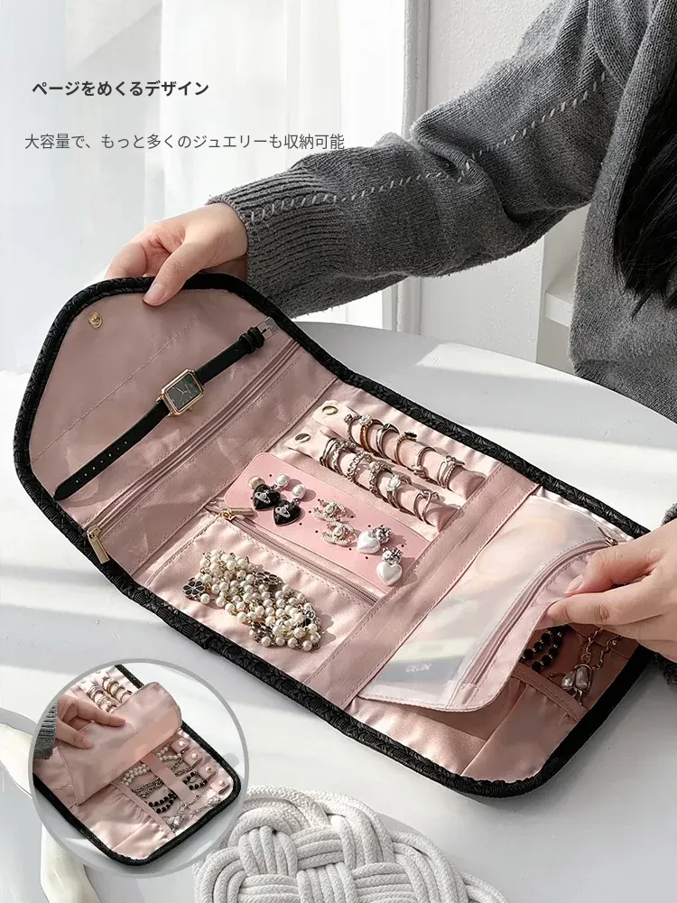 大容量折りたたみ式ポータブルジュエリーバッグ - ネックレス、リング、ピアス、イヤリングをすっきり収納!旅行や外出に最適なアクセサリー収納ケース。整理整頓が簡単で、あなたのスタイルを引き立てます!