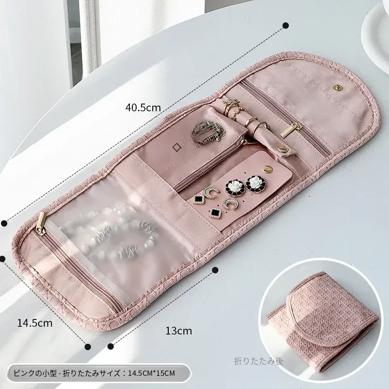 【ピンク/小サイズ/折りたたみ可能】PU携帯ジュエリーバッグ