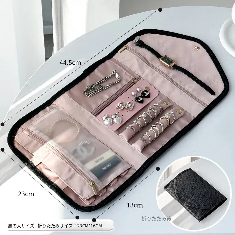 【ブラック/大サイズ/折りたたみ可能】PU携帯ジュエリーバッグ