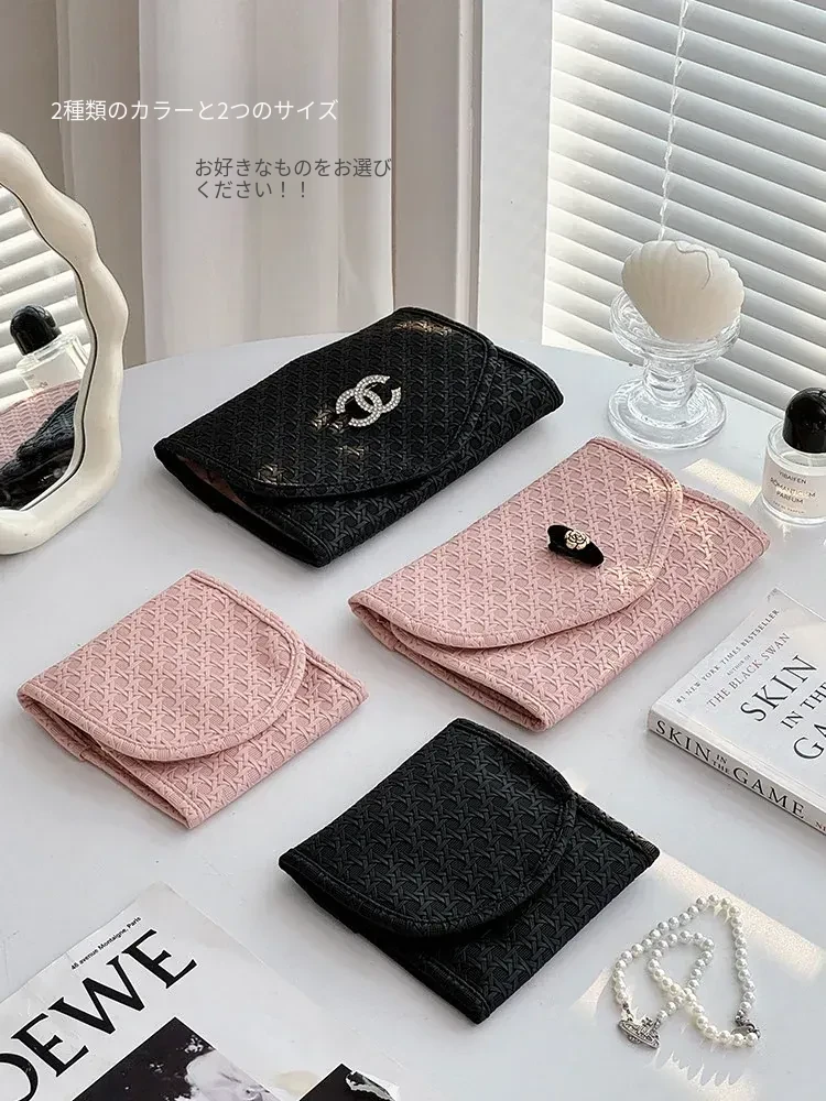 【ブラック/小サイズ/折りたたみ可能】PU携帯ジュエリーバッグ