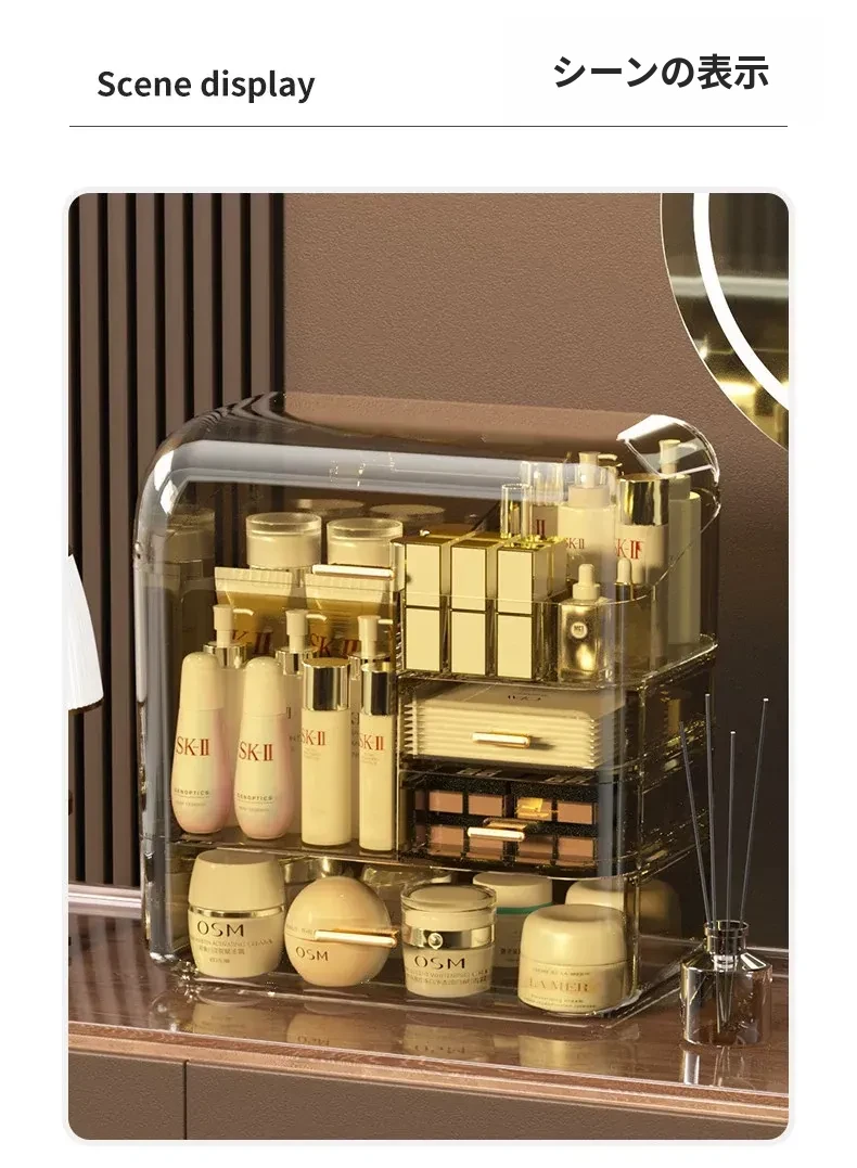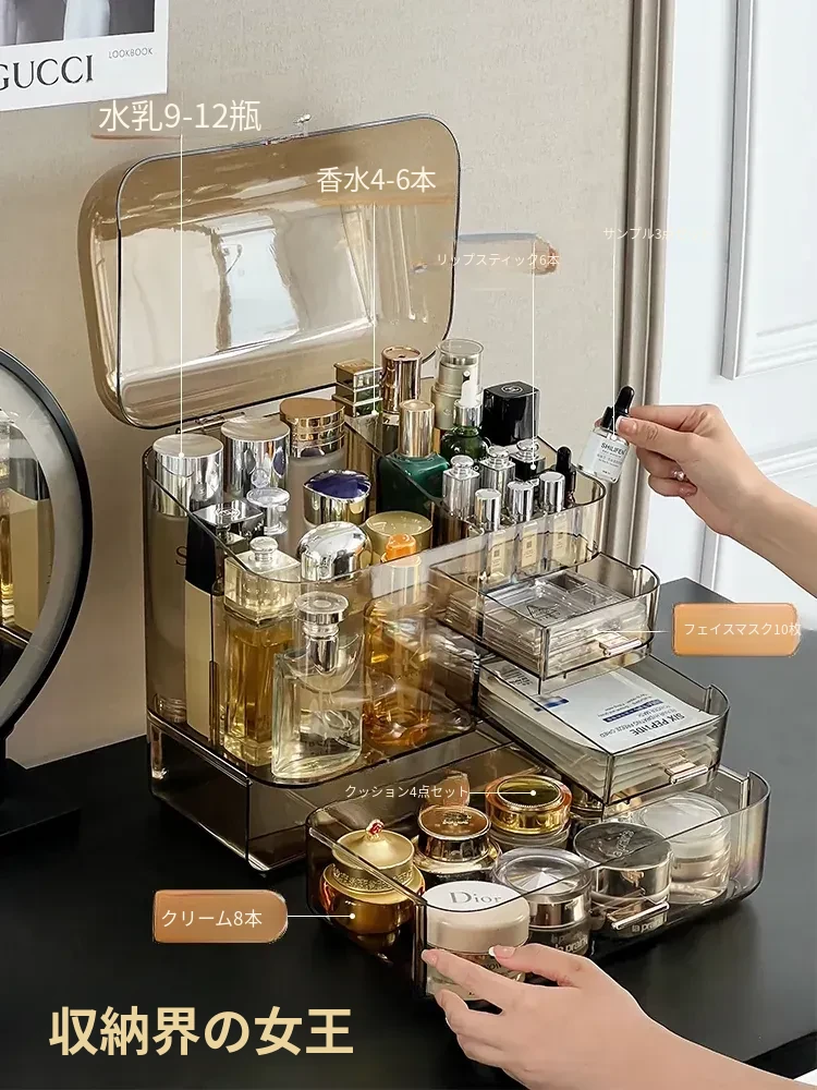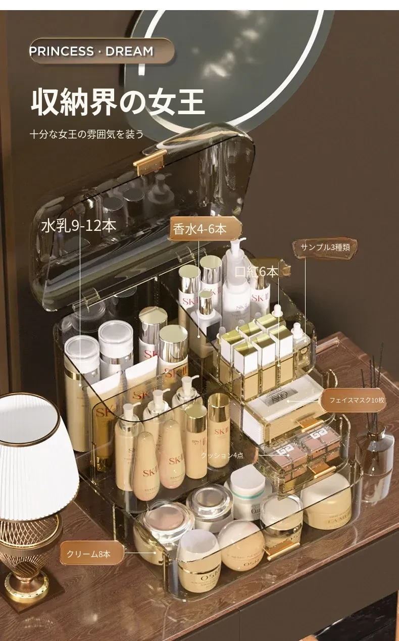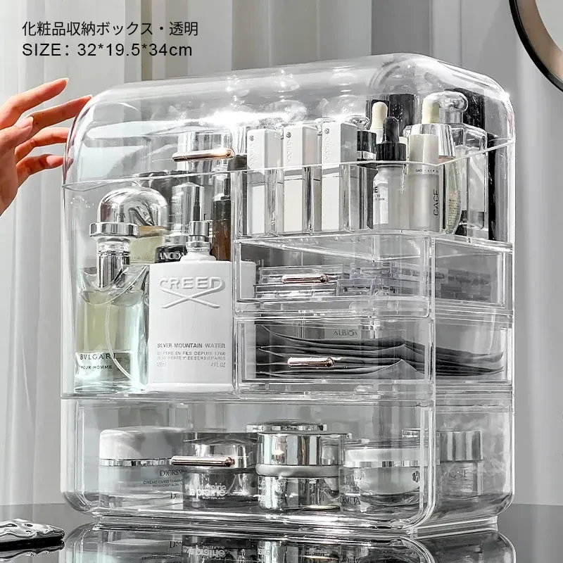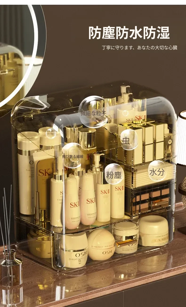 コスメ収納ボックス 化粧台用 アクリル製 スキンケアアイテム用 防塵デスクトップ 大容量 高級収納ケースで、すっきりとした美しさを演出!
