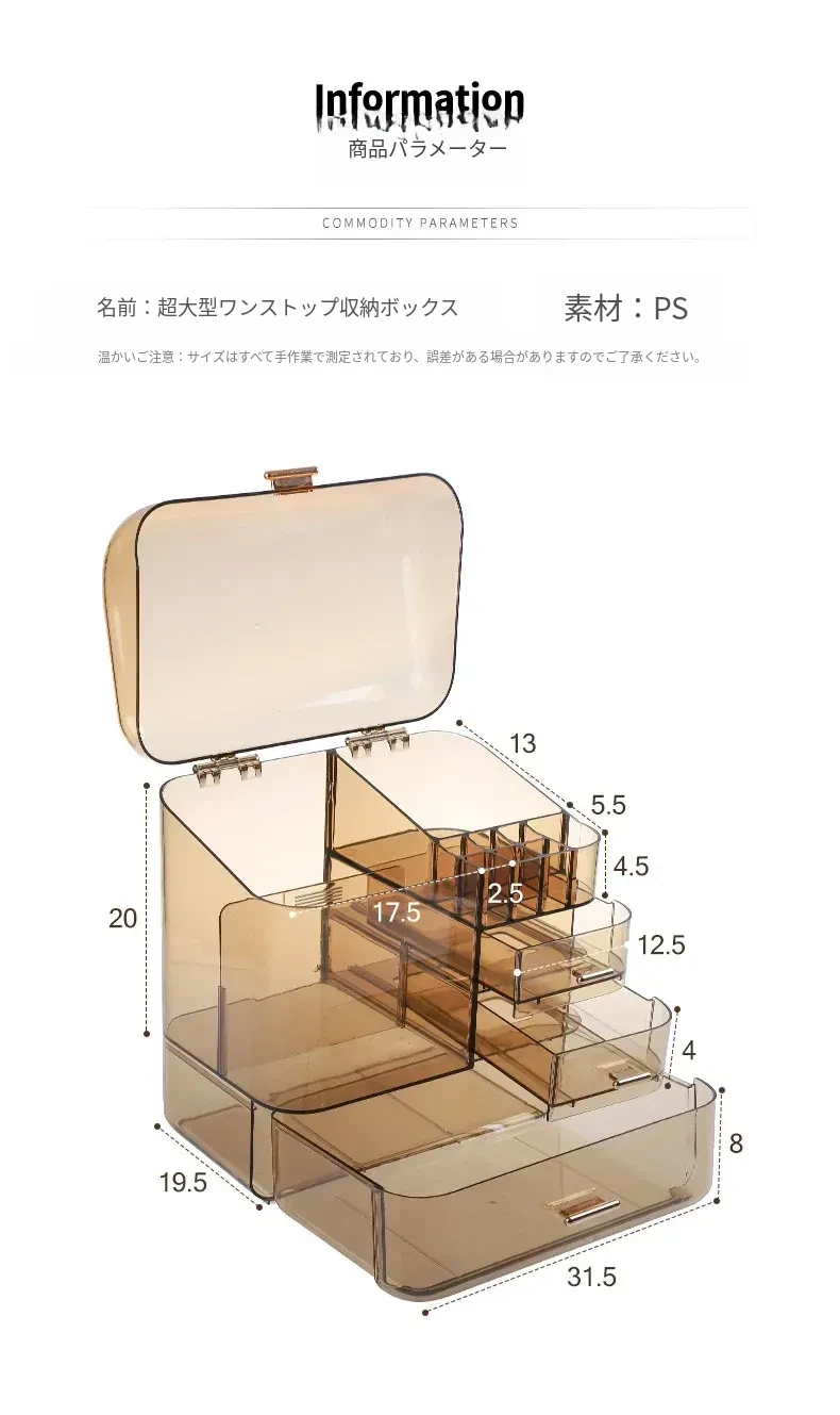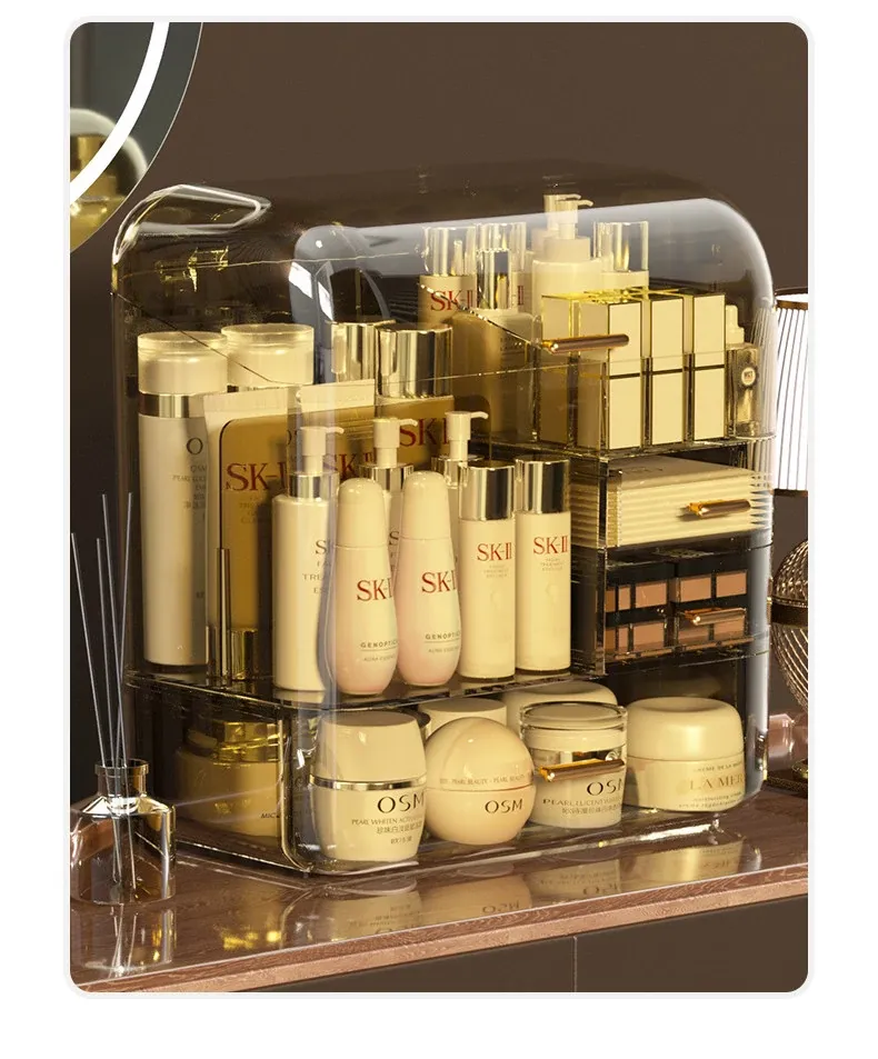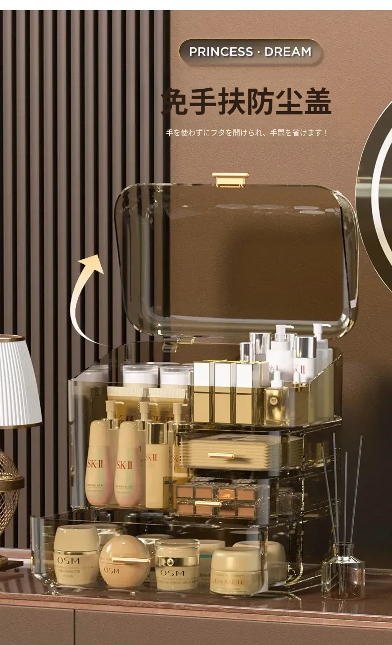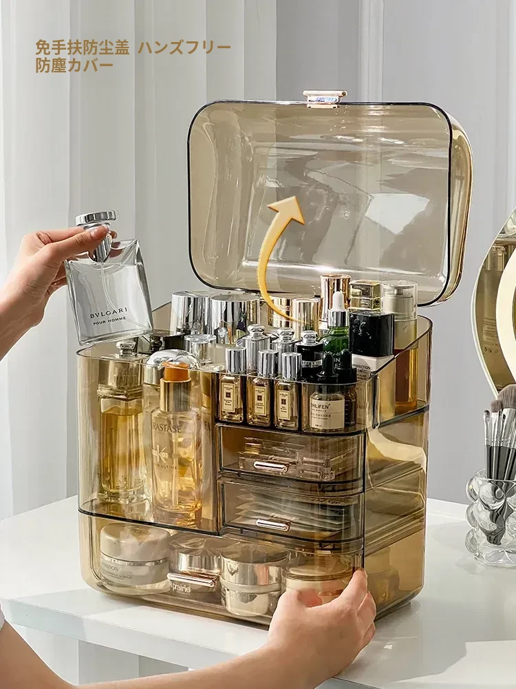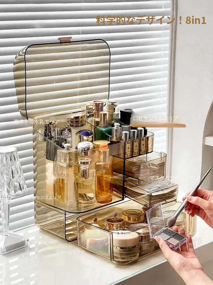 コスメ収納ボックス 化粧台用 アクリル製 スキンケアアイテム用 防塵デスクトップ 大容量 高級収納ケースで、すっきりとした美しさを演出!
