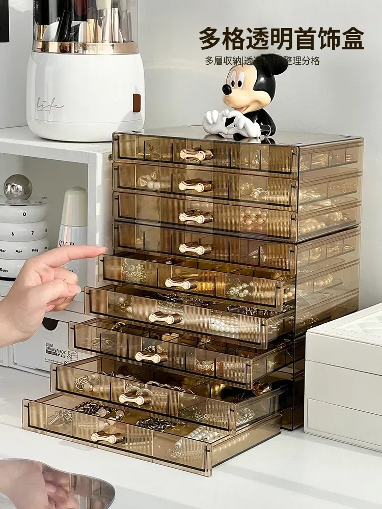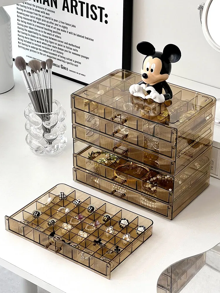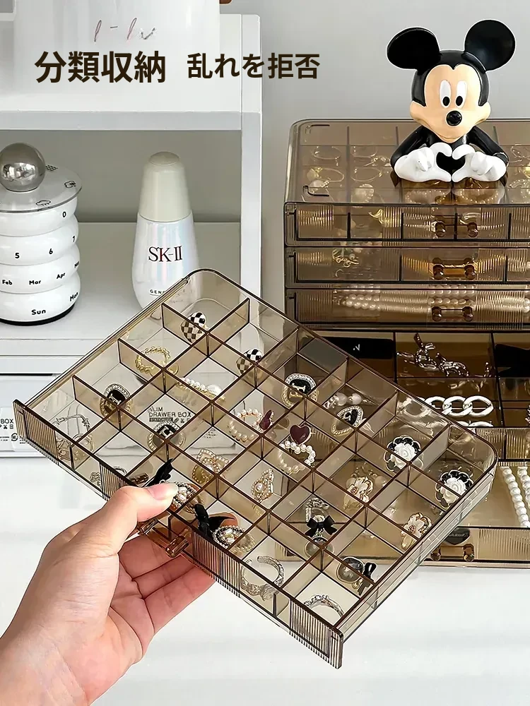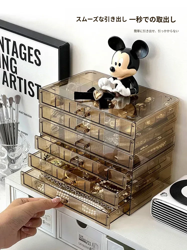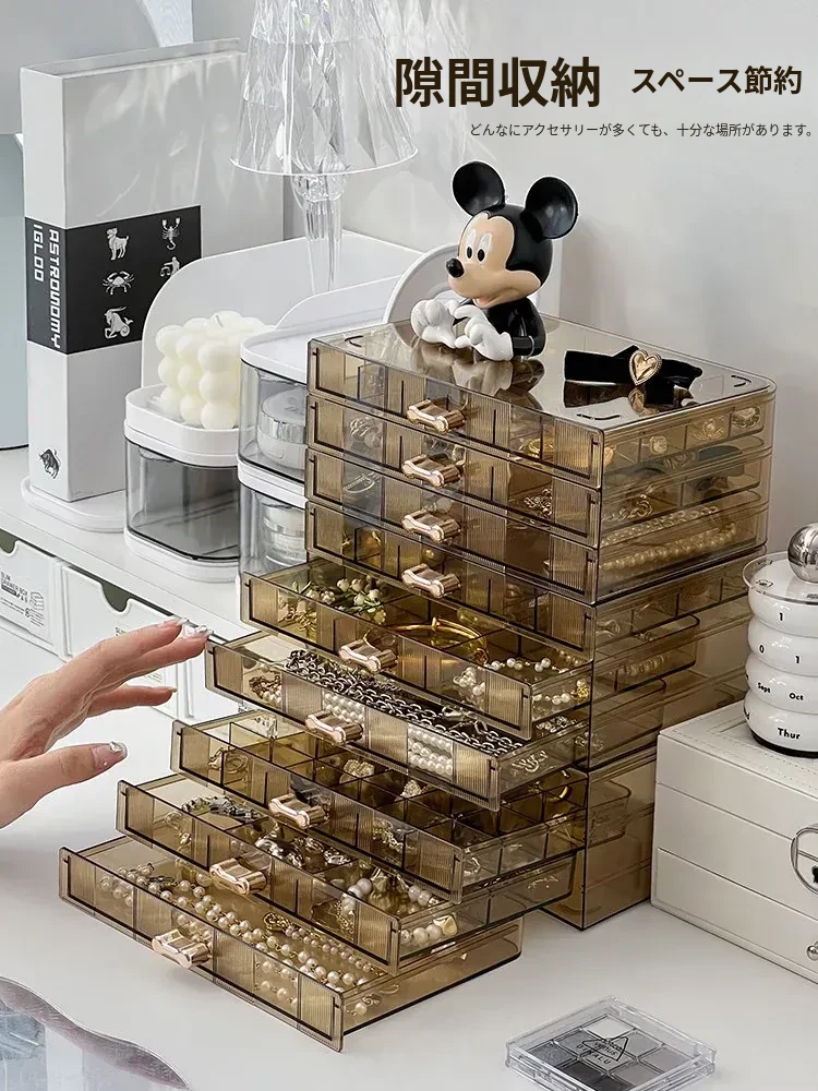 【アンバー色-72格】三段引き出し式ジュエリーボックス