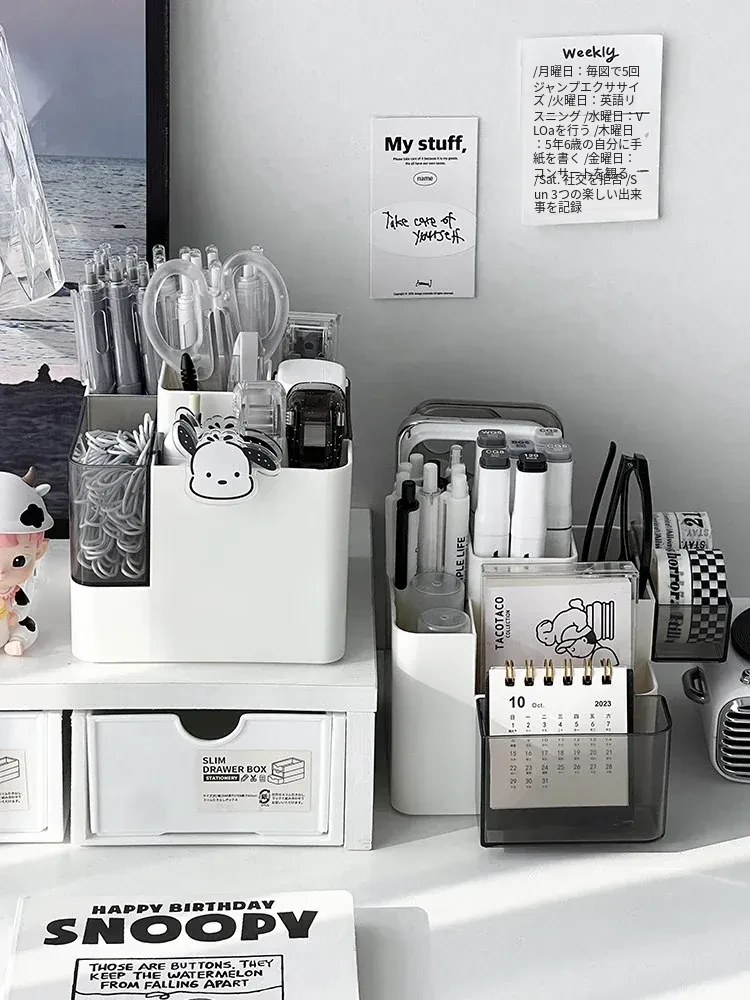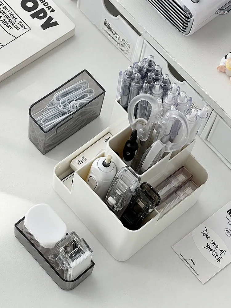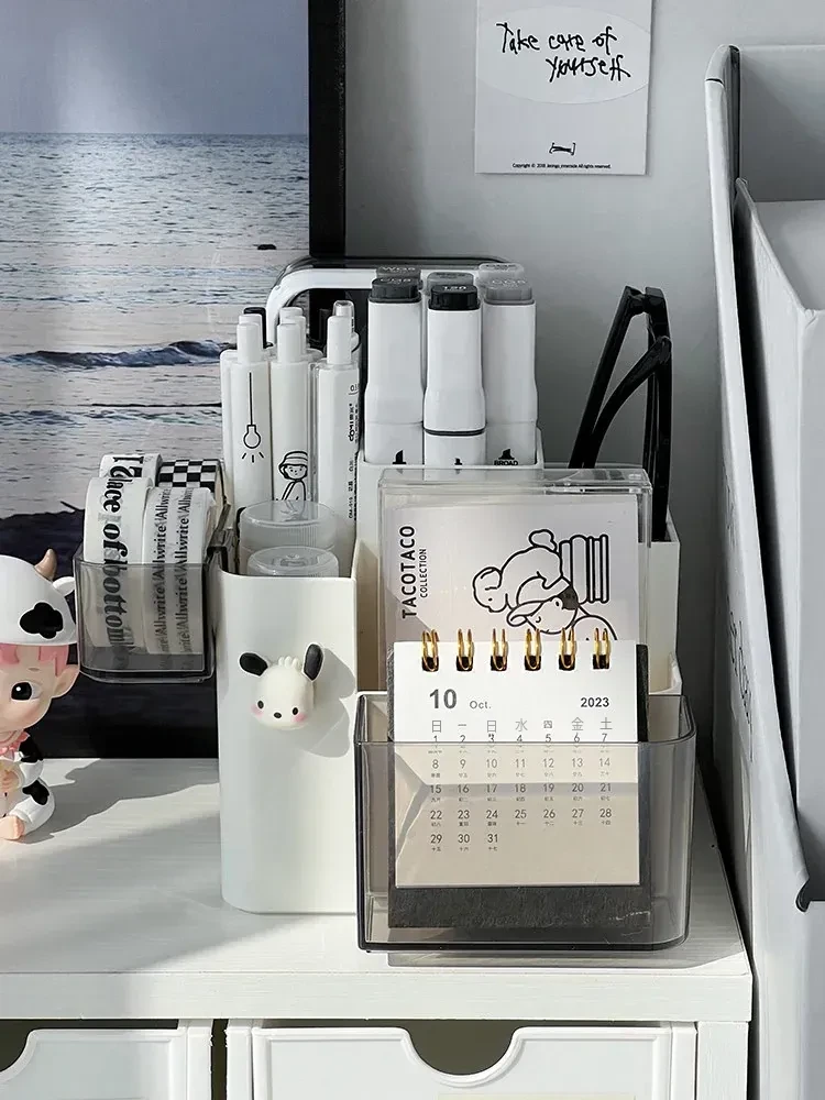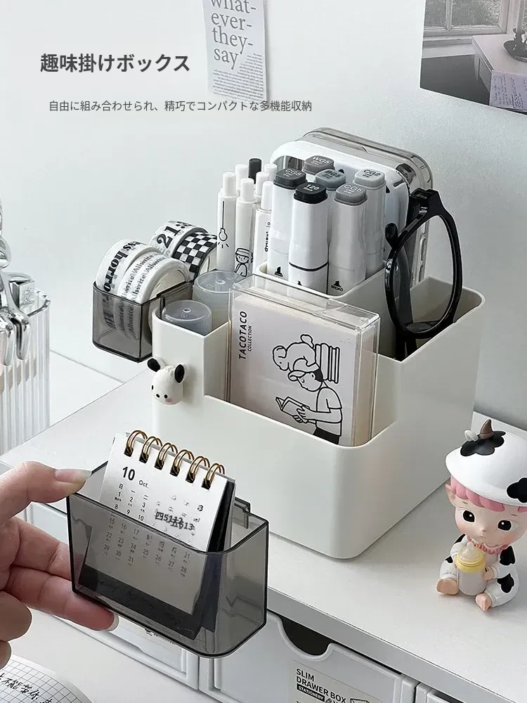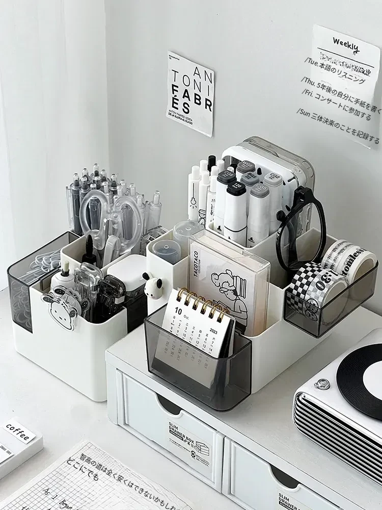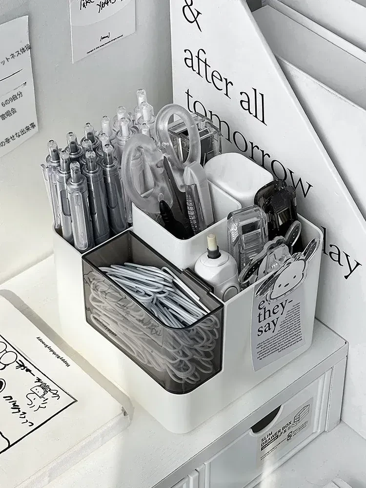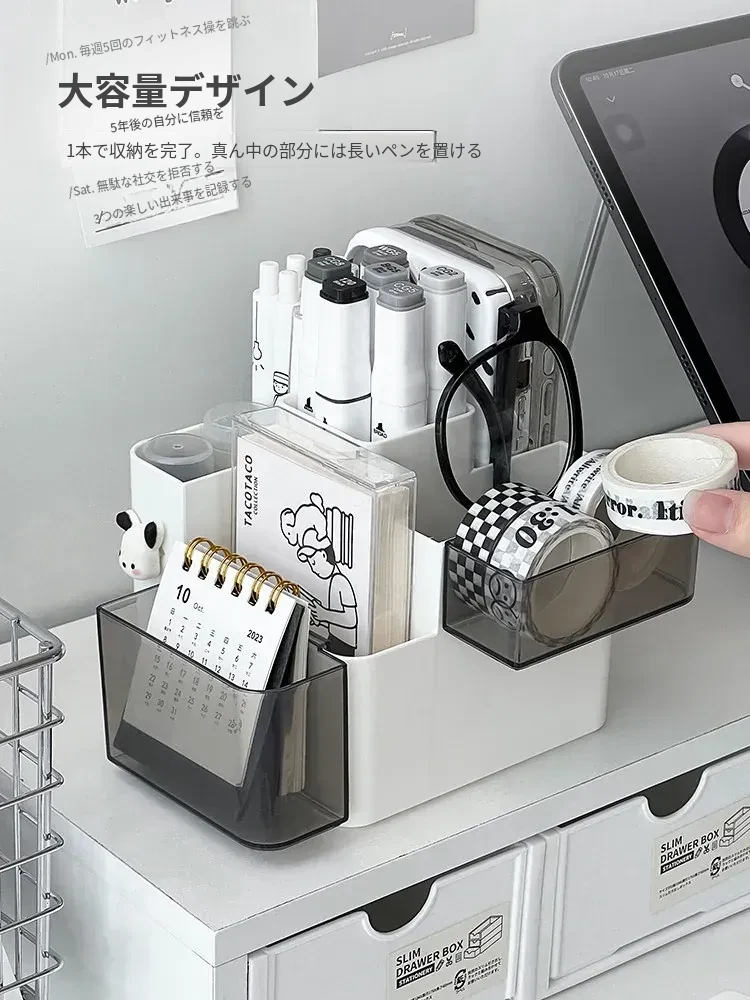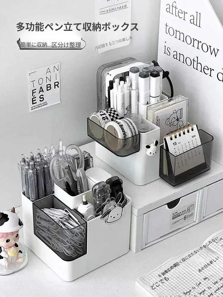 スタイリッシュなデスク文具収納ボックス|学生用書斎に最適|マーカー・手帳・小物整理に便利な多機能ペン立て|子供も大喜びのデザイン!