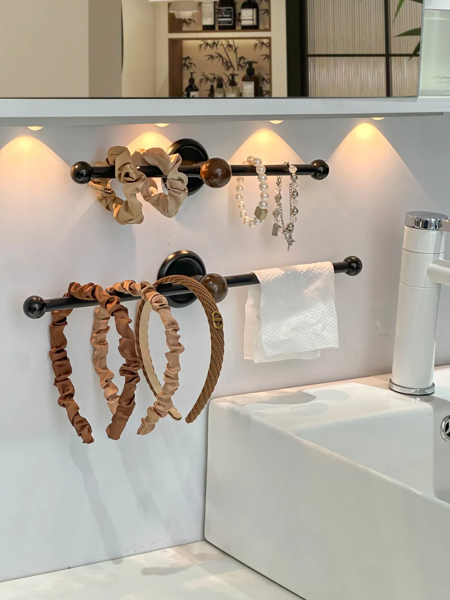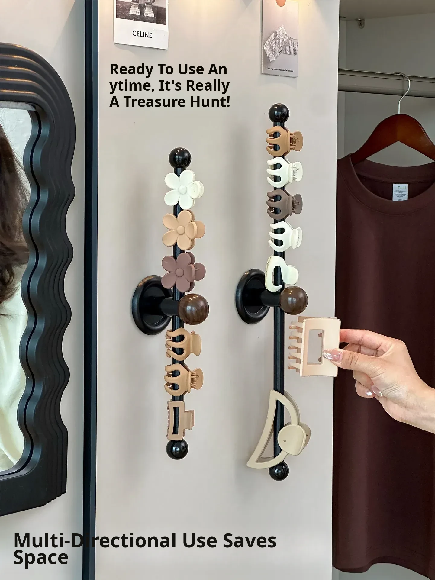 Revolutionary Hair Accessory Organizer - No Drill Hair Tie Display Rack with Shark Clip Holders for Effortless Hair Management and Stylish Storage Solutions! Perfect for Salon or Home Use.