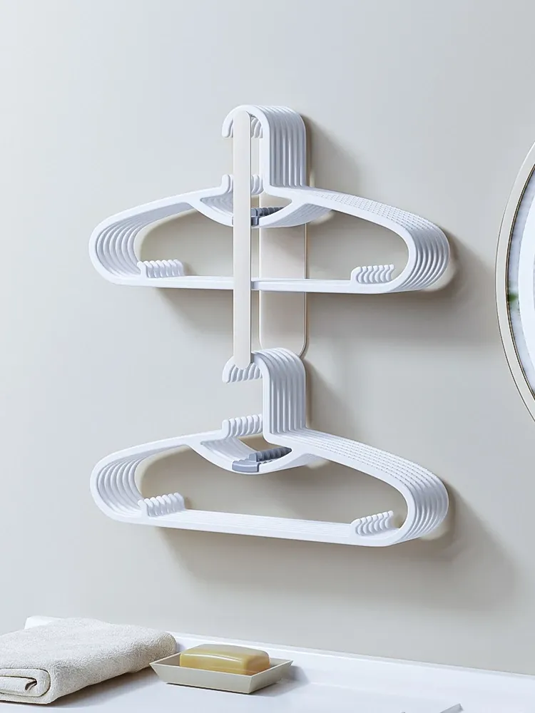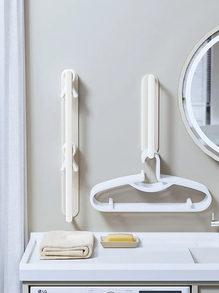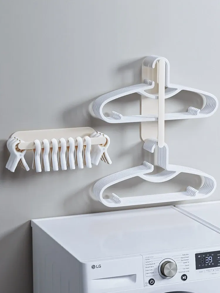 バルコニー用壁掛け衣類収納ハンガー - 穴を開けずに簡単取り付け!多機能クリップ付きで、タオルや衣類をスッキリ整理。家庭にぴったりの便利アイテム!