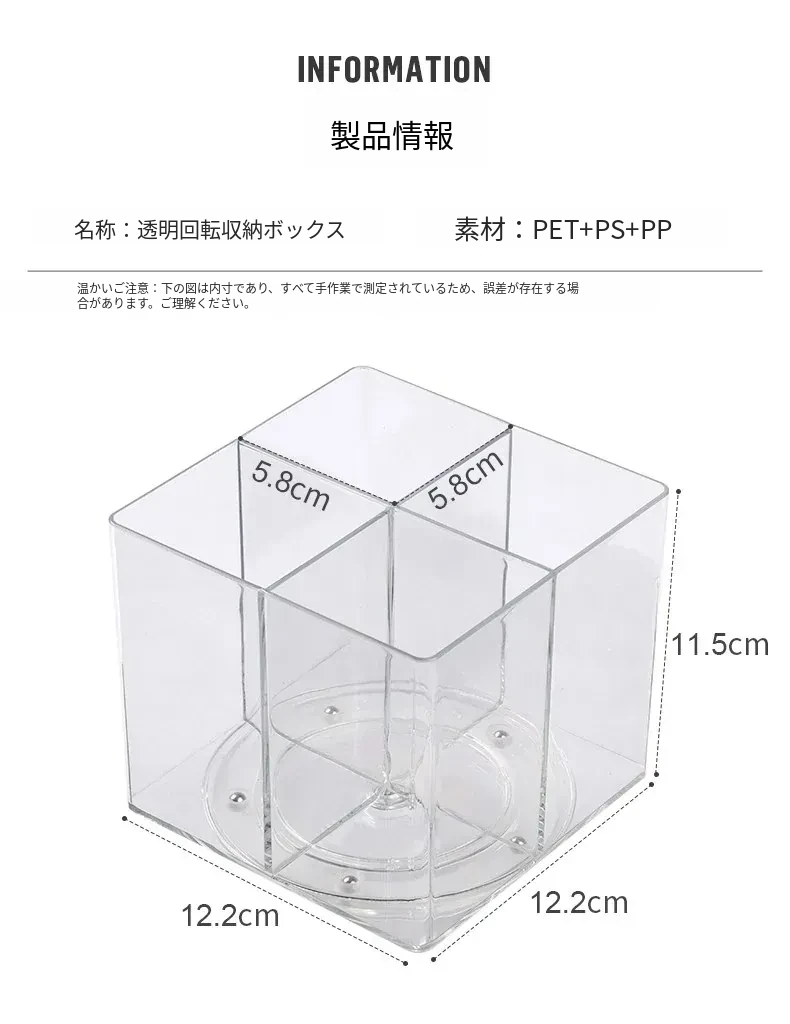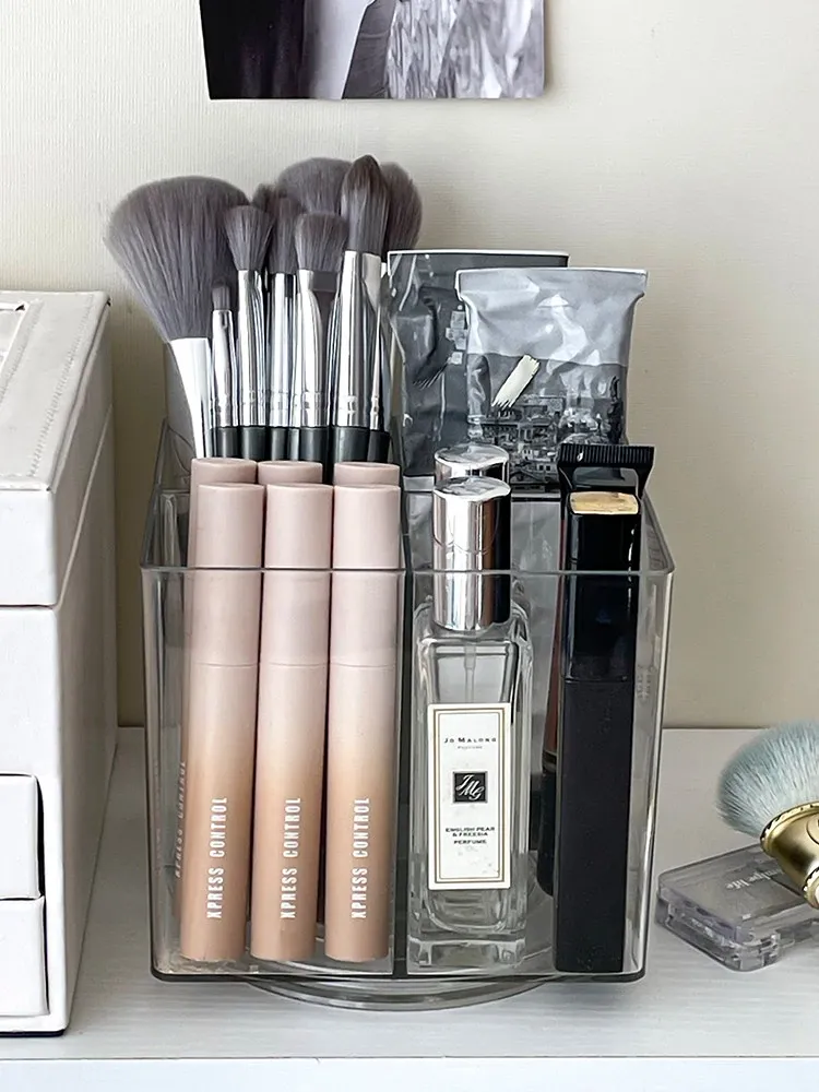 回転ブラシ筒付き防塵化粧品収納ボックス・大容量のドレッサーデスク用・リップスティックやアイシャドウブラシのスタンド・整理整頓に最適!