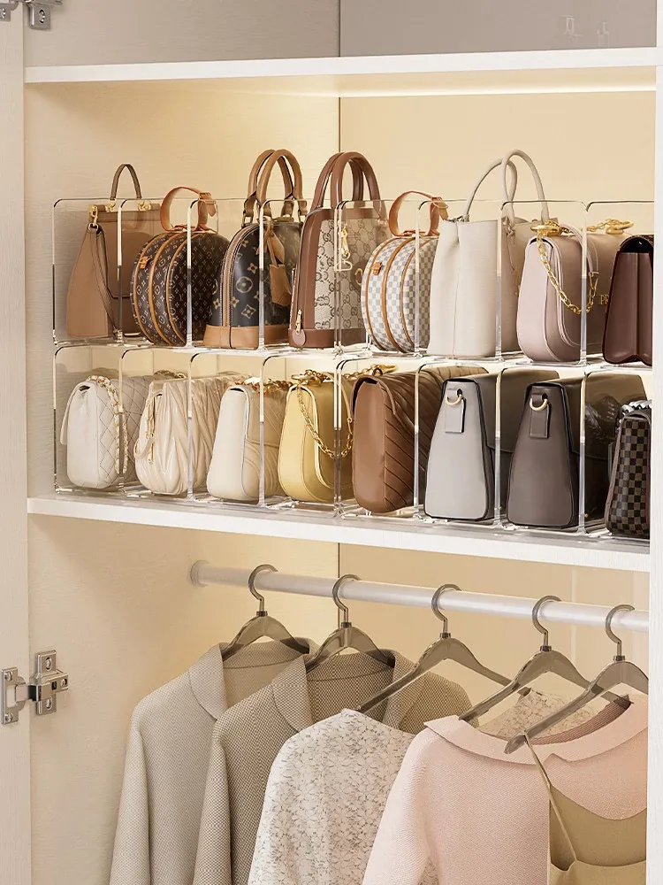 収納力抜群!おしゃれなバッグ収納用衣類棚用仕切り板 - スペースを有効活用し、家の中をスッキリ整理!バッグを美しく展示できる収納ラック。
