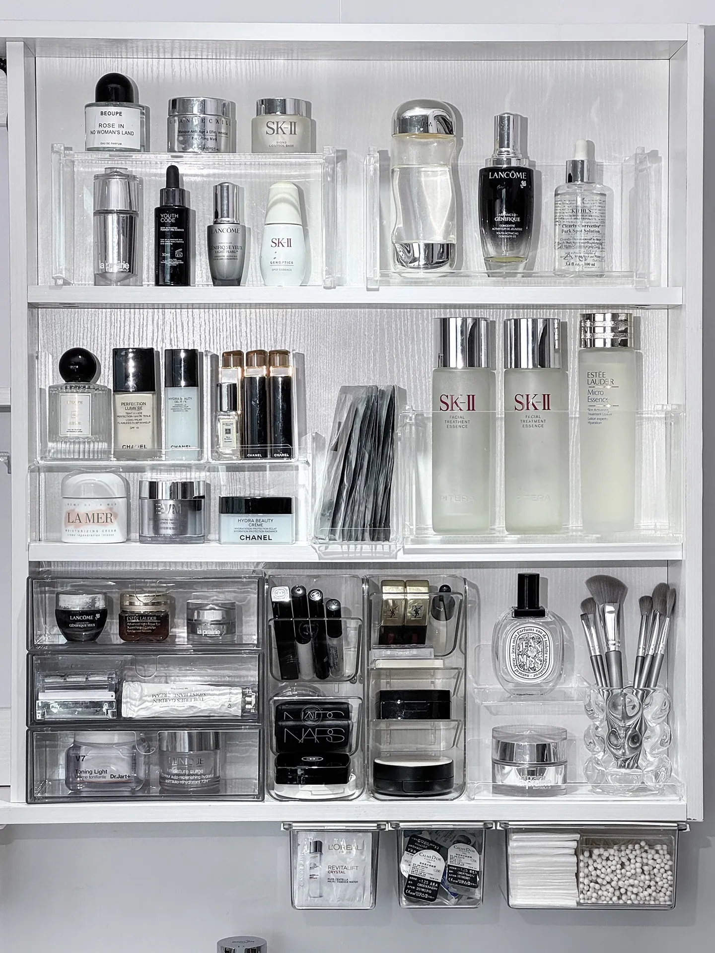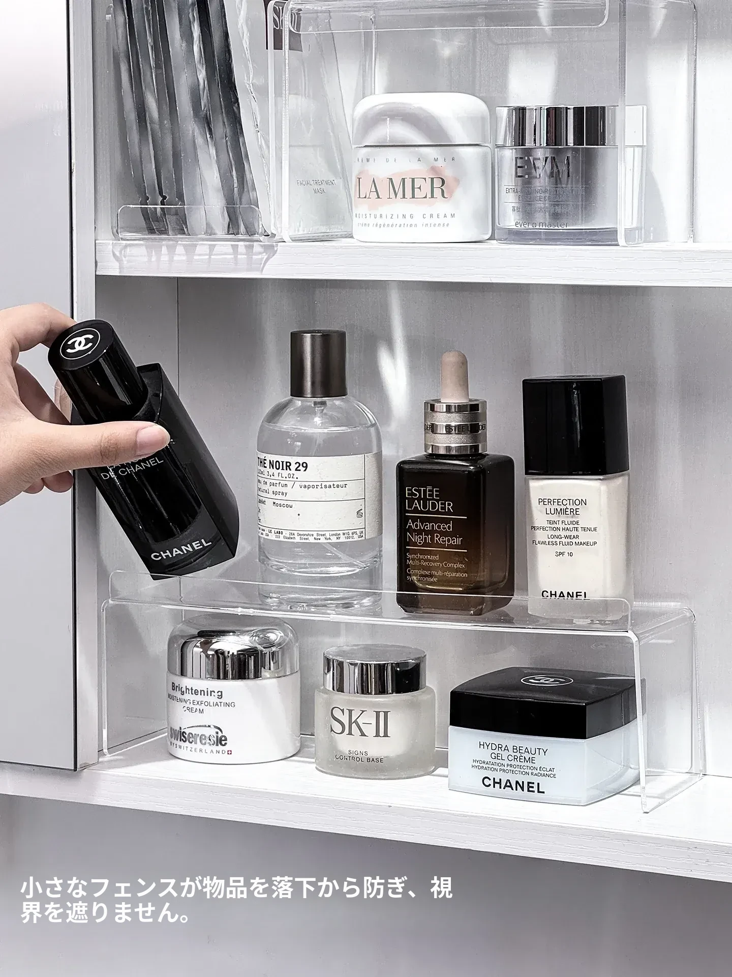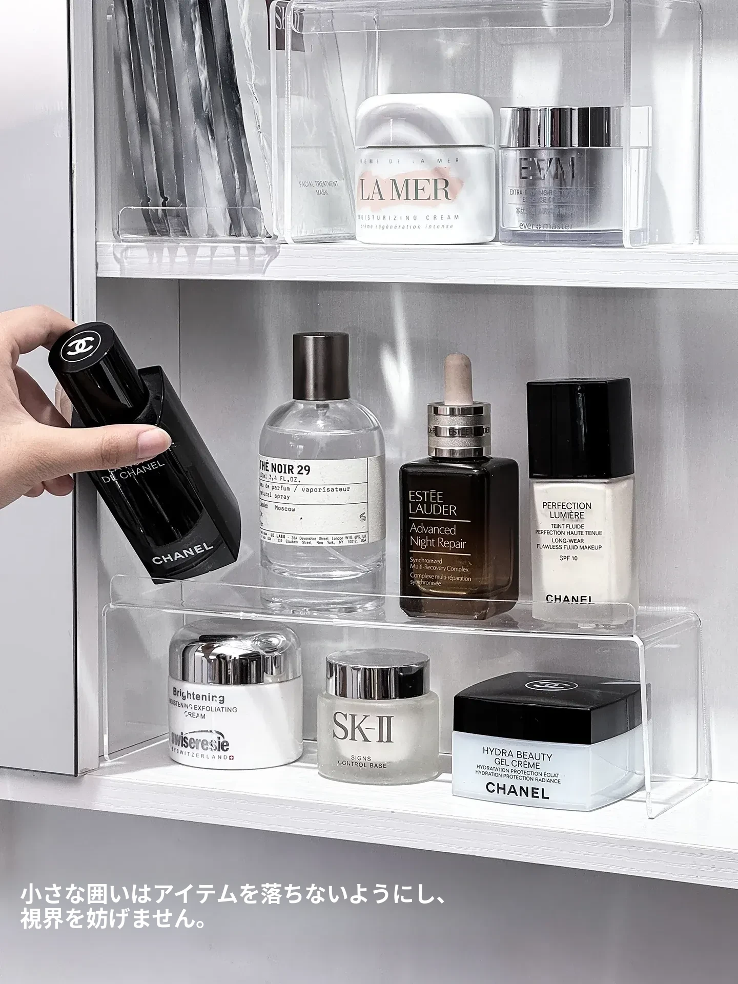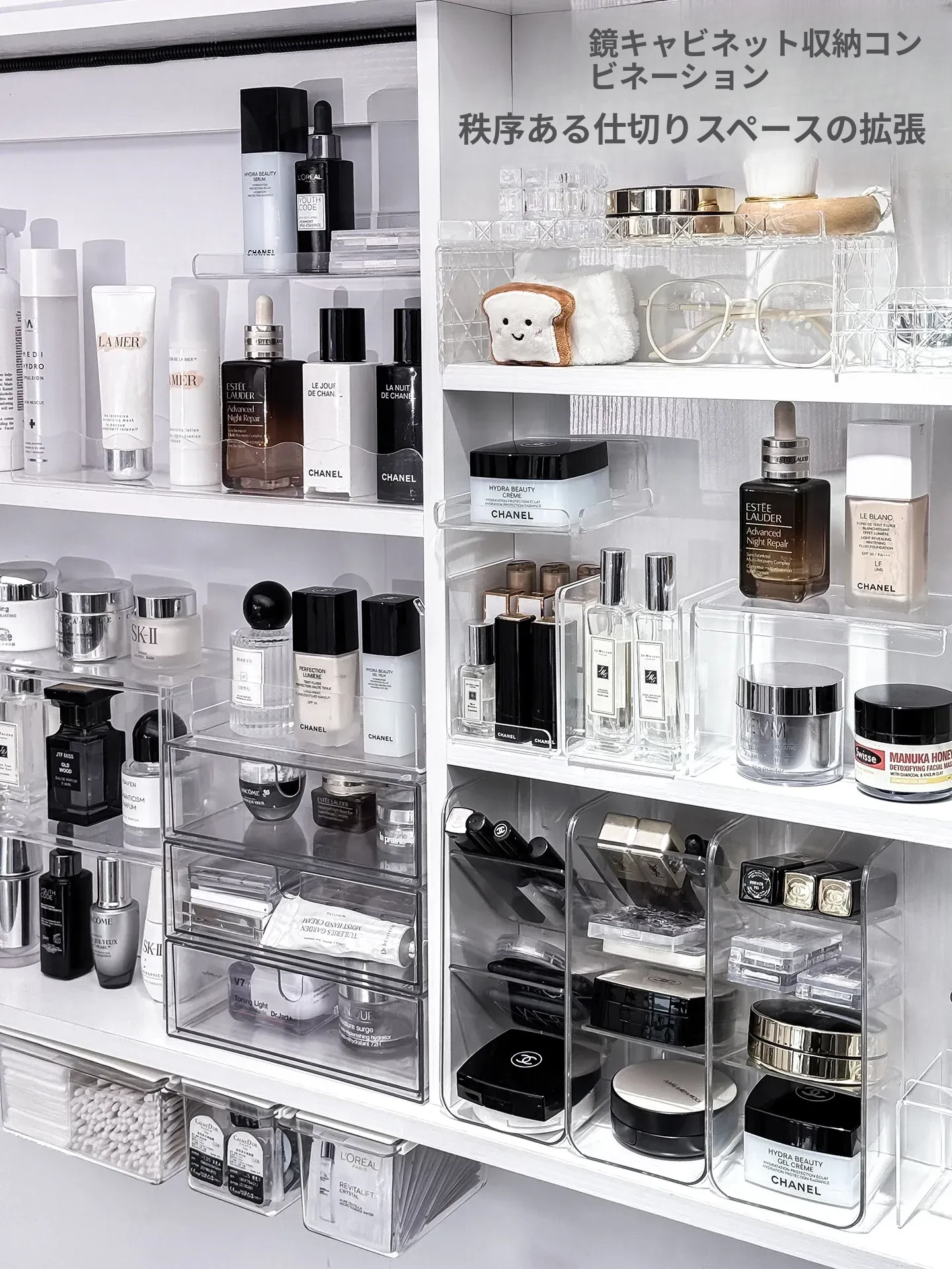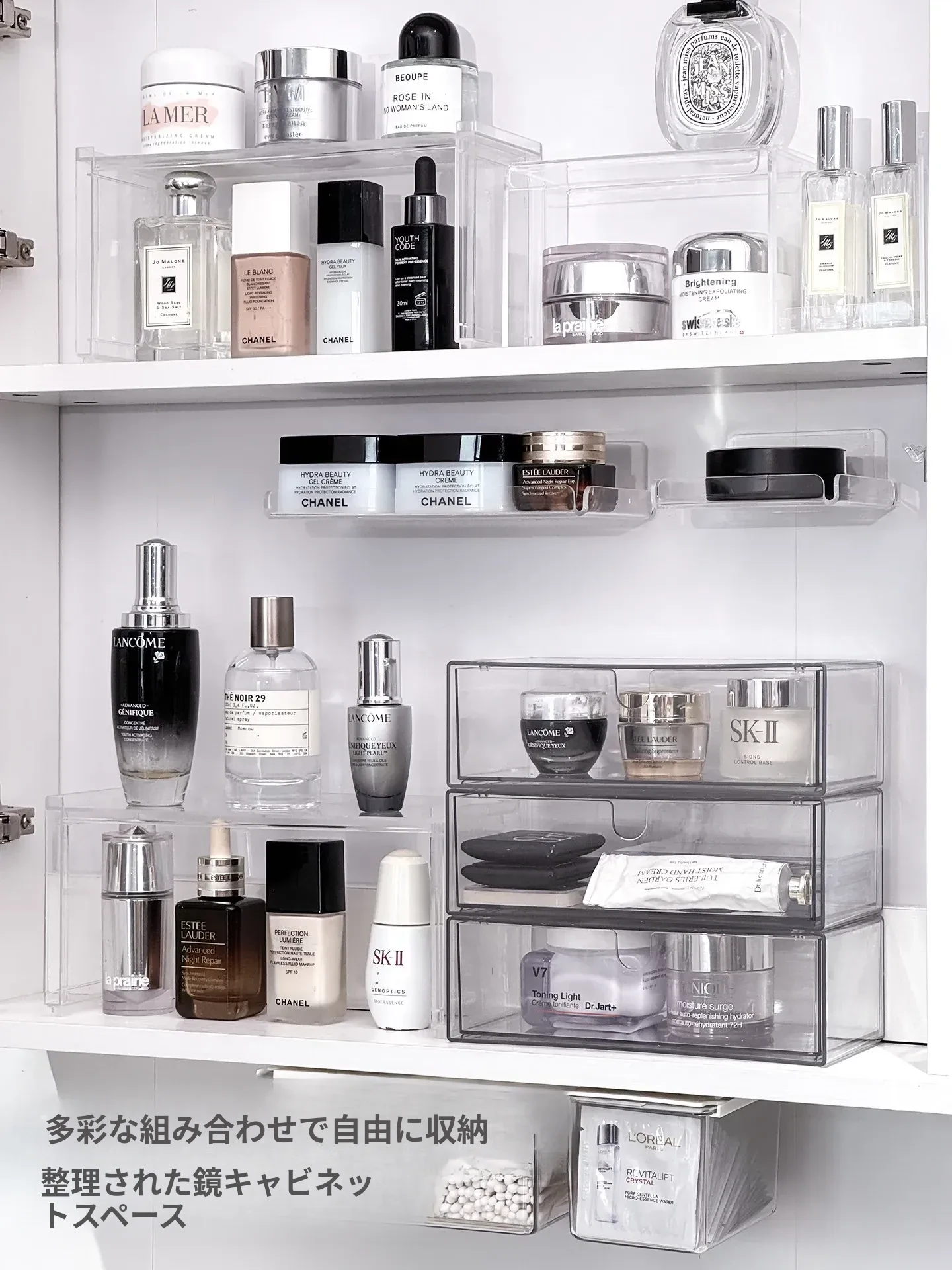 バスルームの鏡キャビネット収納の神アイテム!スペースを節約できる多層仕切りラックで、口紅や化粧品をスッキリ整理。使いやすさとスタイリッシュさを兼ね備えたおしゃれな収納ソリューション!