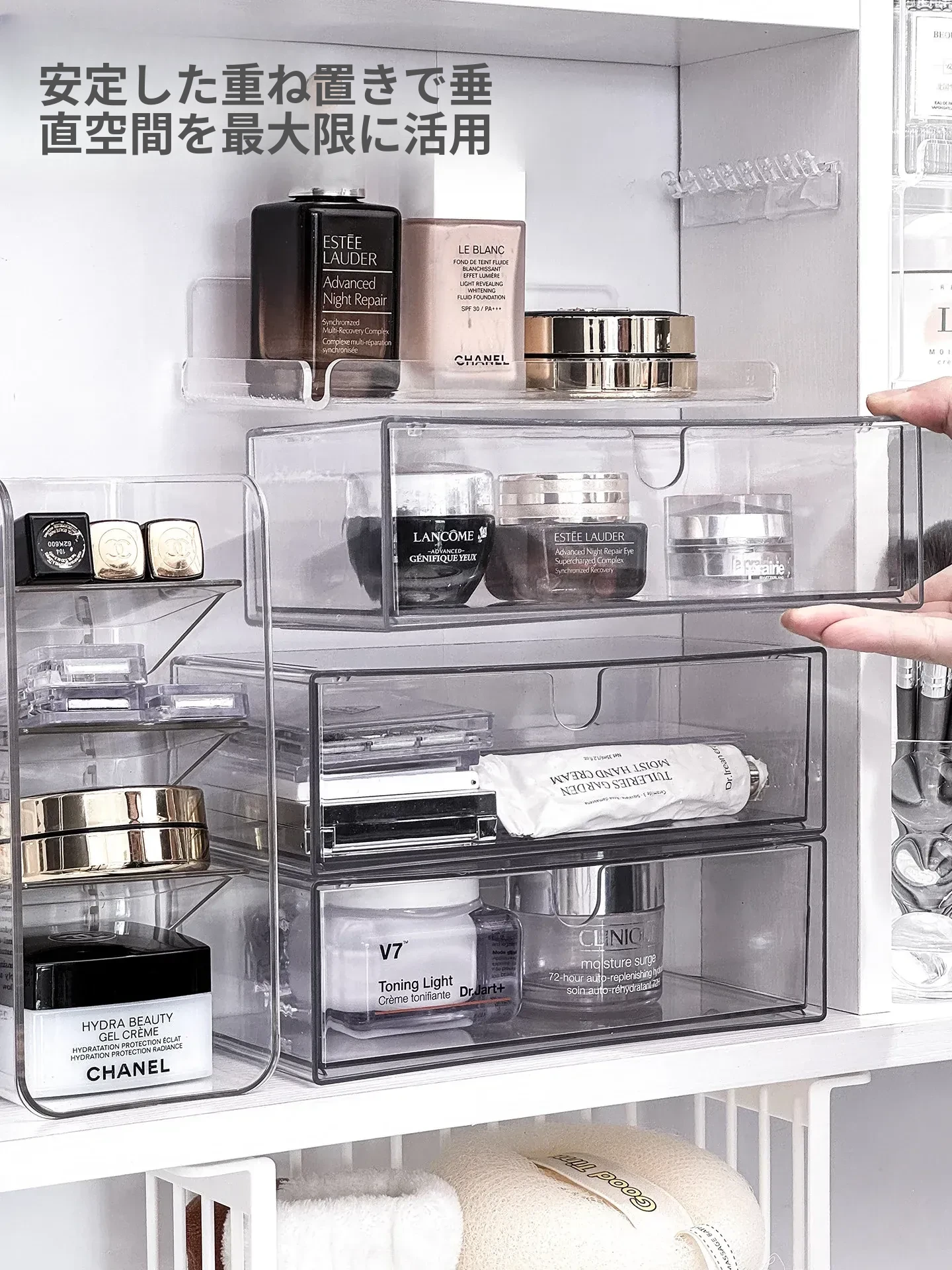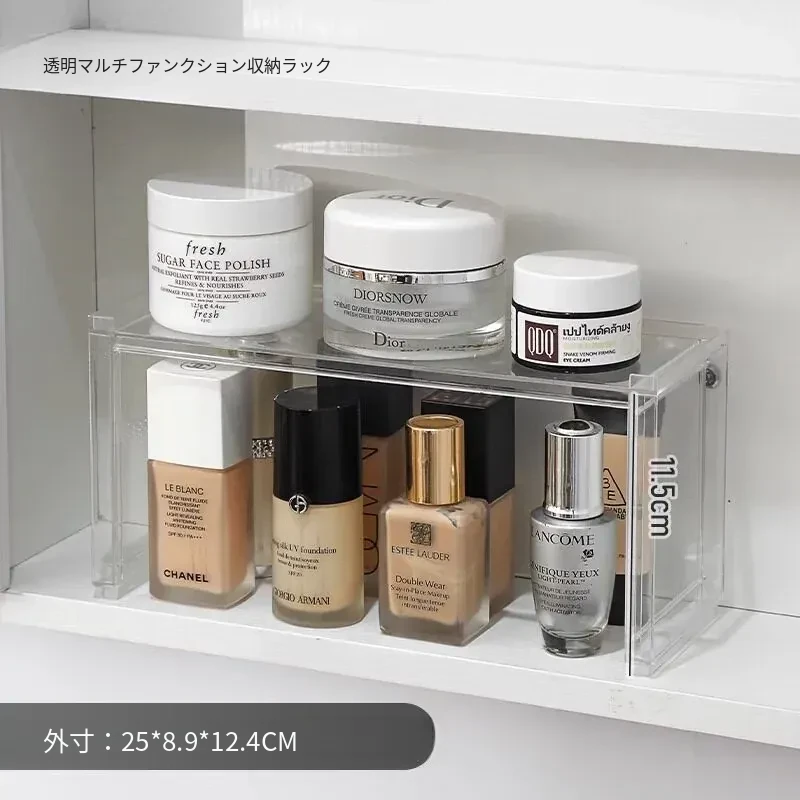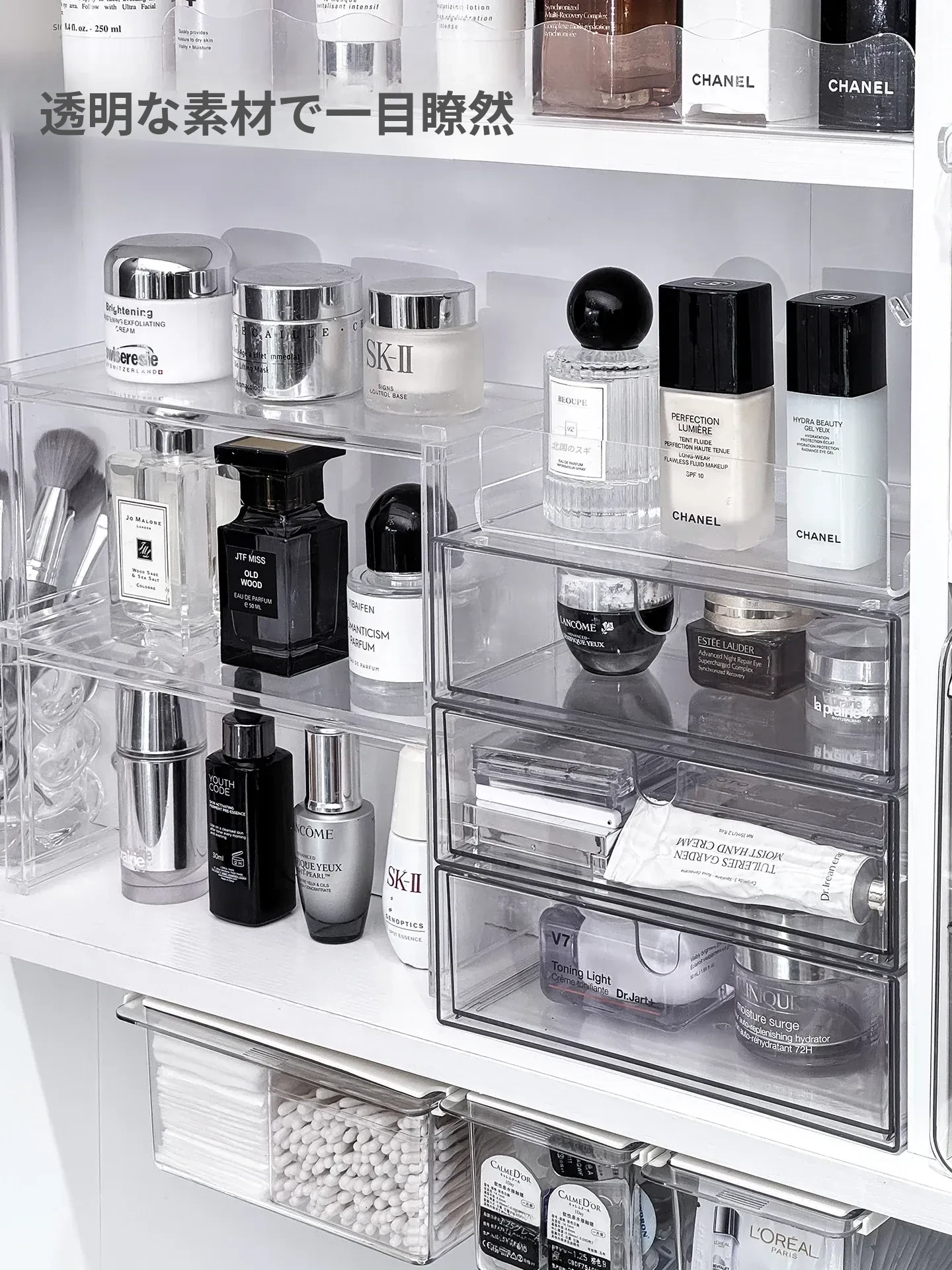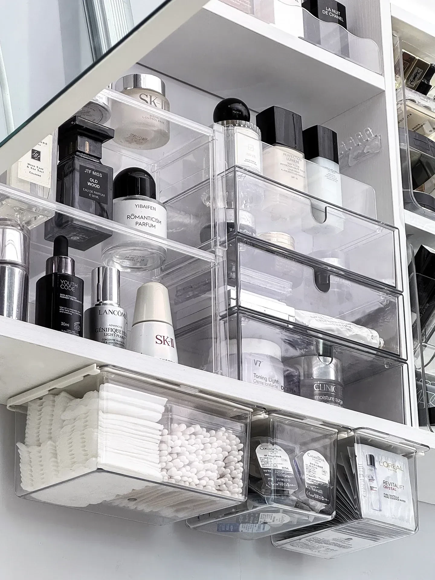 バスルームの鏡キャビネット収納の神アイテム!スペースを節約できる多層仕切りラックで、口紅や化粧品をスッキリ整理。使いやすさとスタイリッシュさを兼ね備えたおしゃれな収納ソリューション!