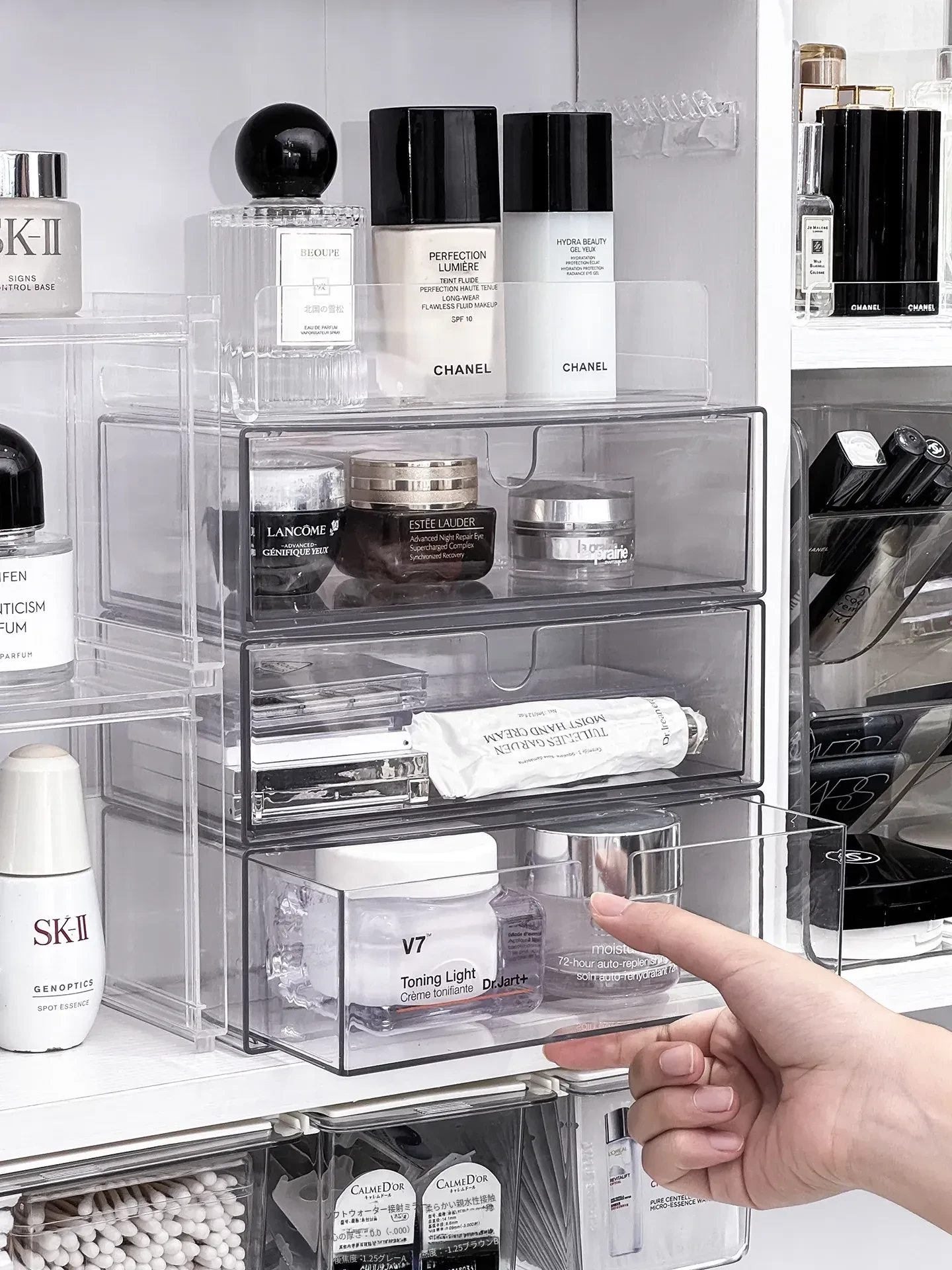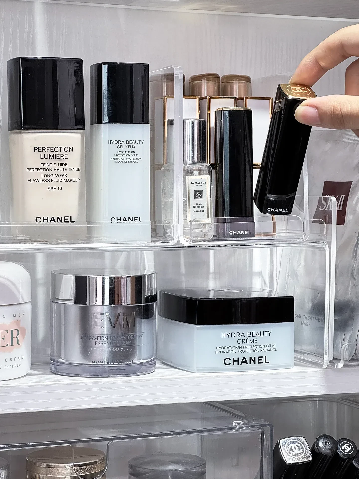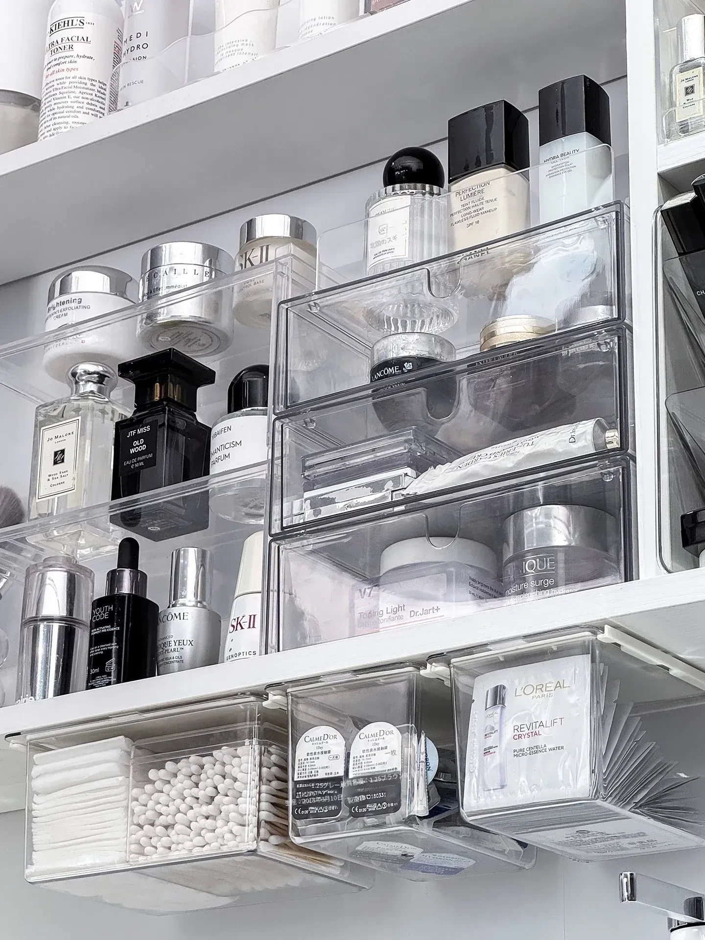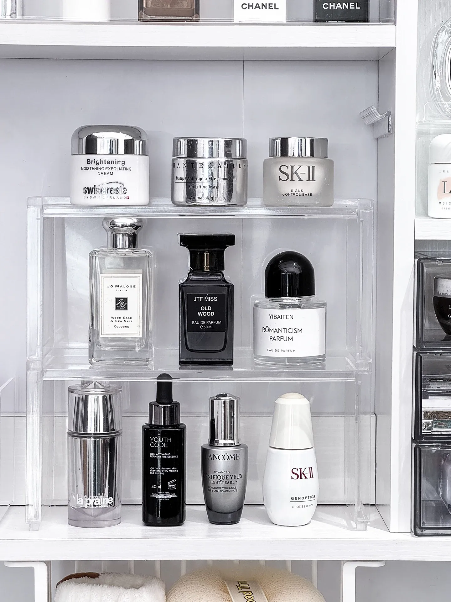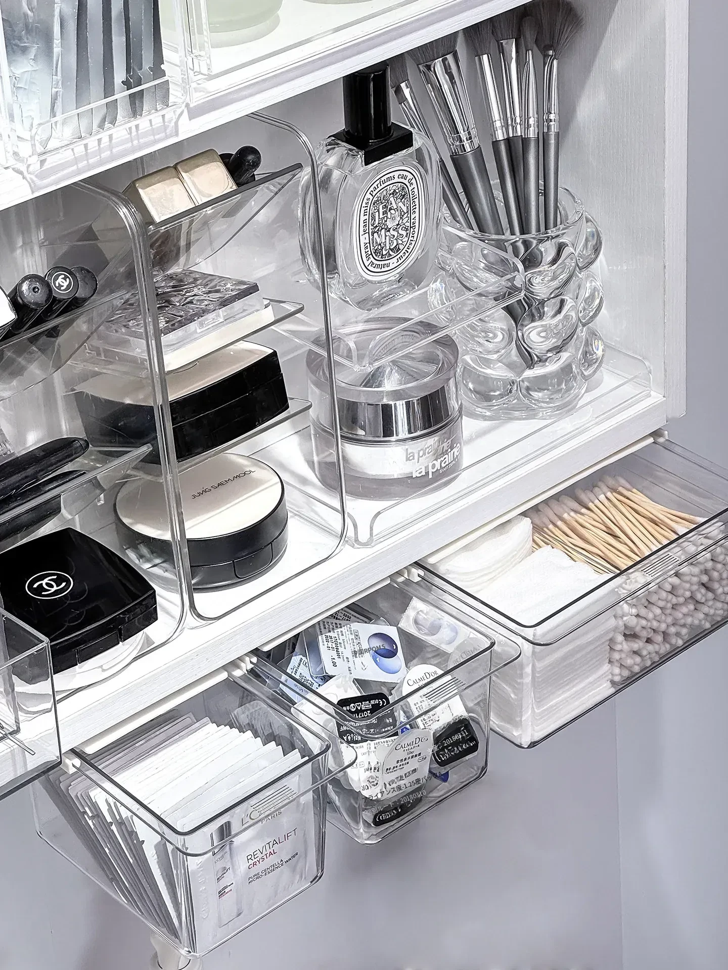 バスルームの鏡キャビネット収納の神アイテム!スペースを節約できる多層仕切りラックで、口紅や化粧品をスッキリ整理。使いやすさとスタイリッシュさを兼ね備えたおしゃれな収納ソリューション!
