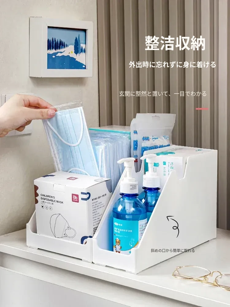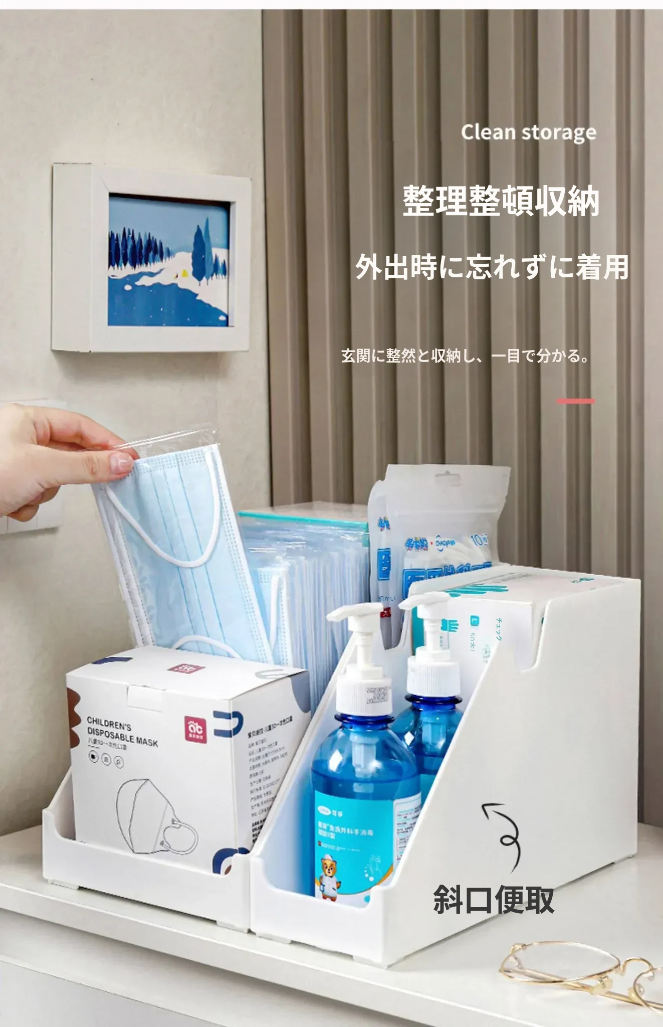 玄関用マスク・アルコール収納ボックス 家庭用デスクトップ収納カゴ 大容量でスッキリ整理!入室時に便利な収納ラック