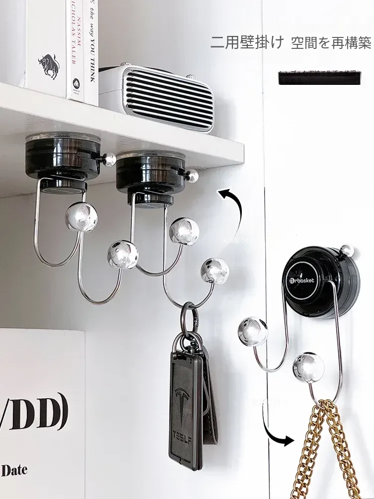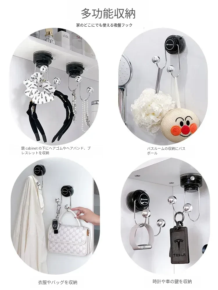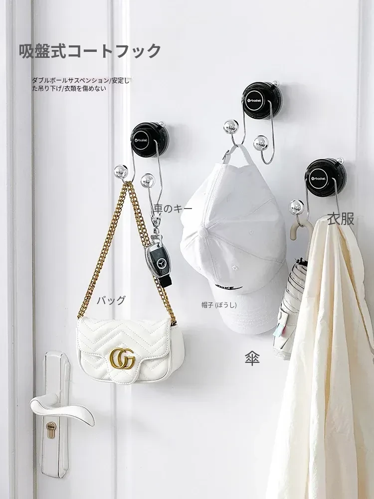 穴あけ不要!吸盤フックで玄関をスッキリ整理!鍵やバッグ、衣類をすぐにかけられる便利な壁掛け収納。おしゃれで実用的なアイテムで、あなたの生活空間をもっと快適に!