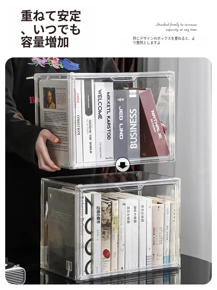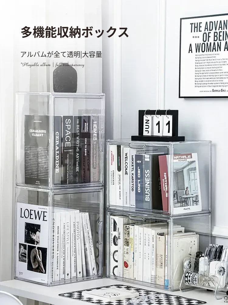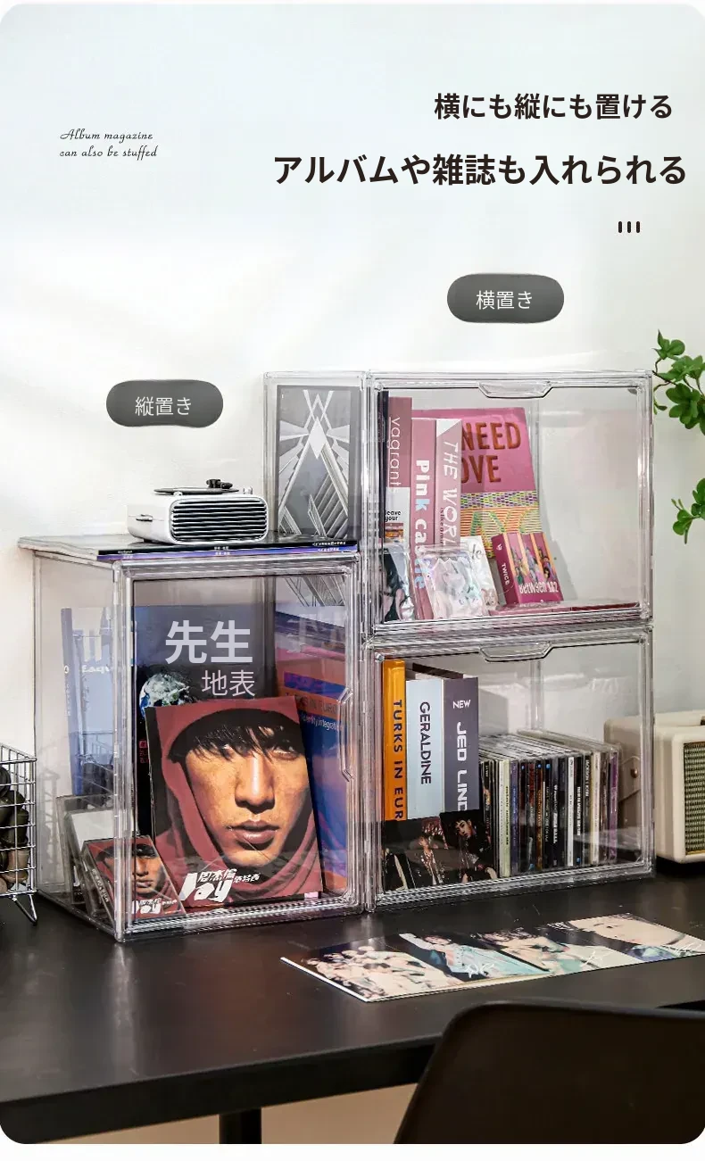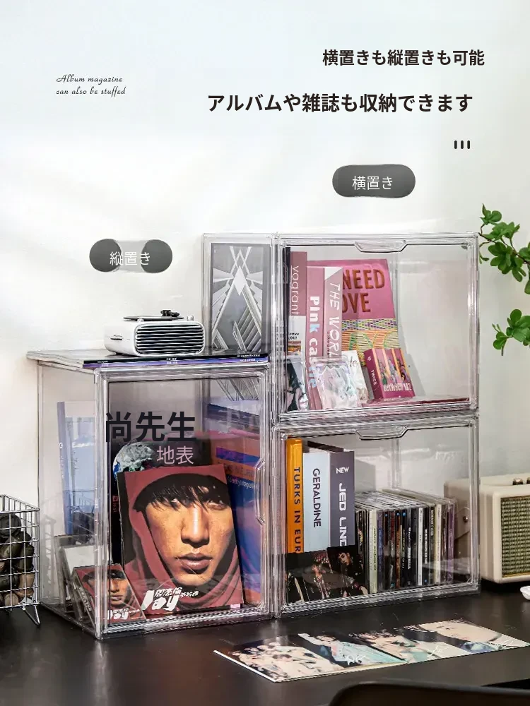 透明アクリルCD収納ボックス - おしゃれで機能的なディスプレイラック!あなたのアルバムや光盤を美しく整理し、デスク周りをスッキリ!魅力的なデザインで、どんなインテリアにもマッチします。収納力抜群の必須アイテム!