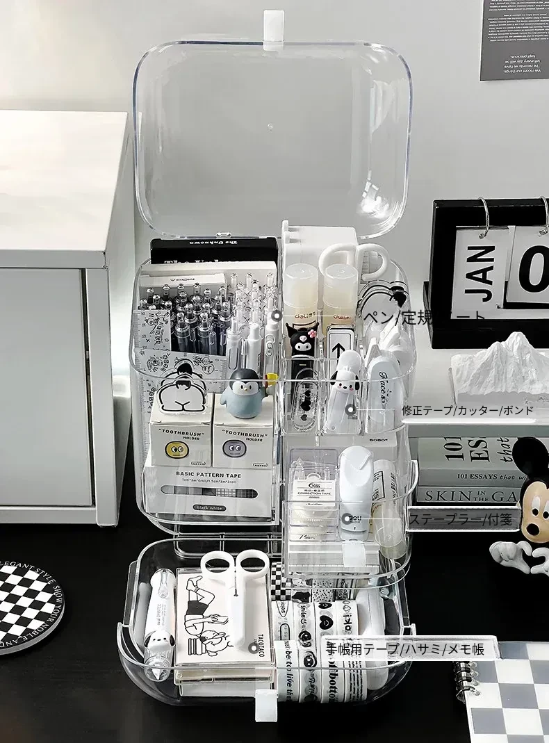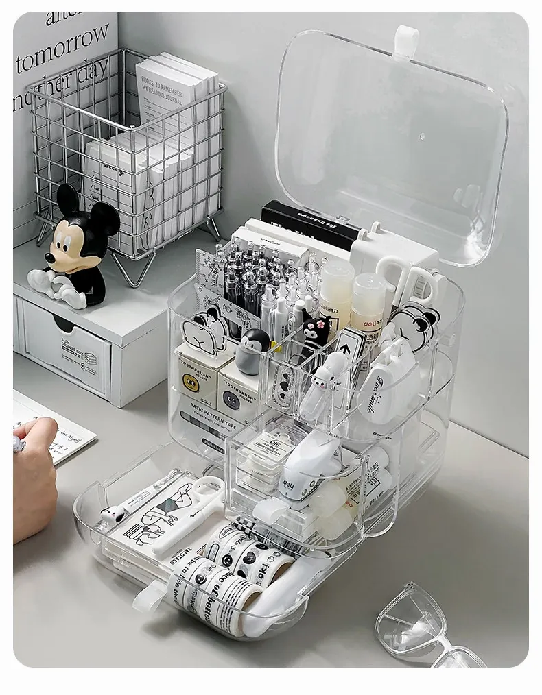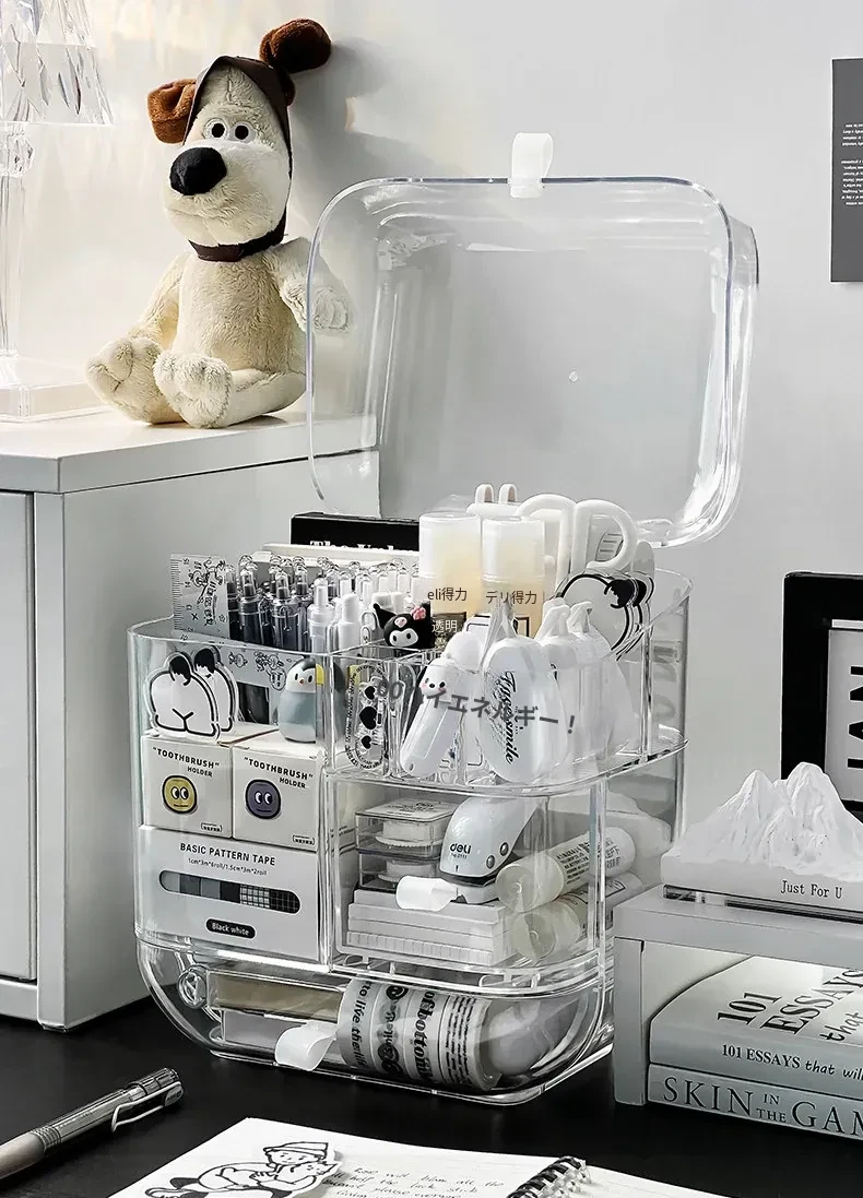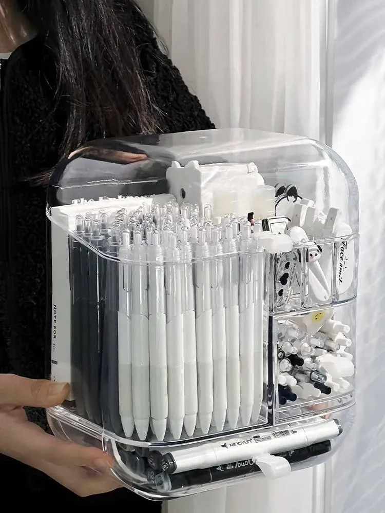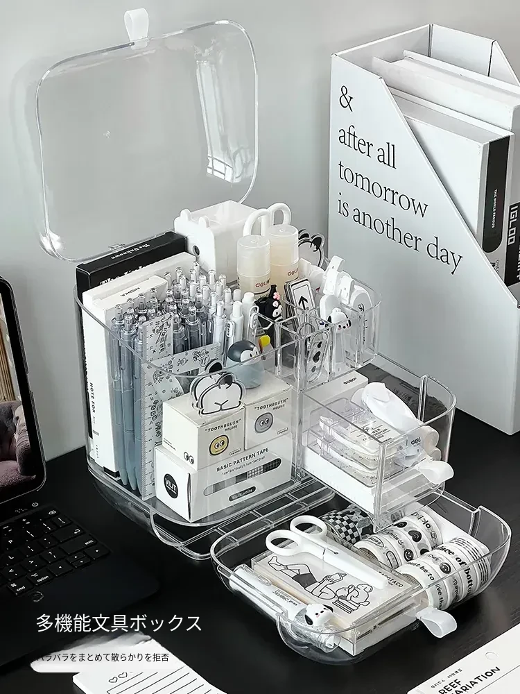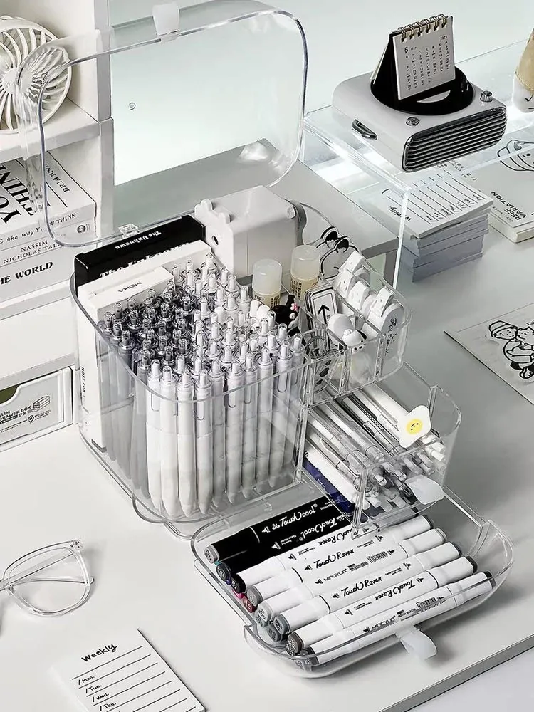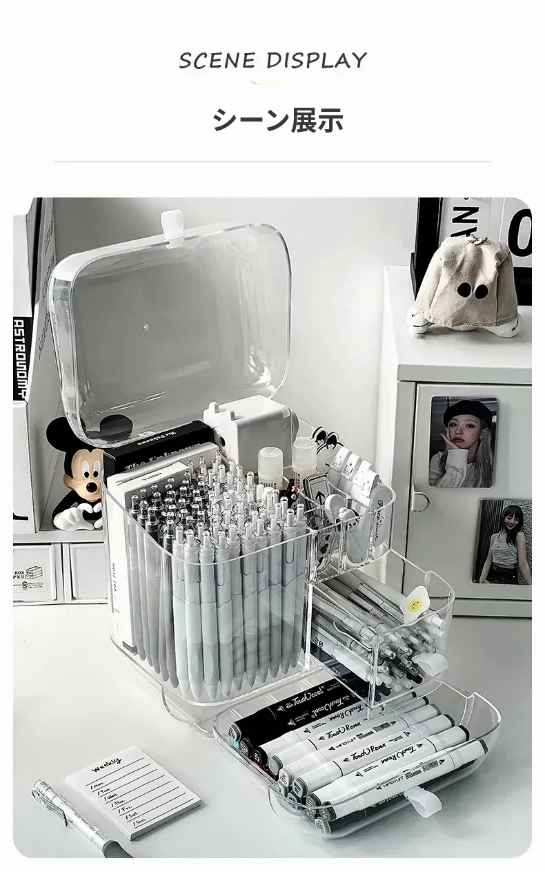 学生向け透明アクリルペンスタンド!おしゃれで実用的な文具収納ボックス、デスク周りをスッキリ整理!カラフルなマーカーや色鉛筆も楽々収納できる便利アイテムです!