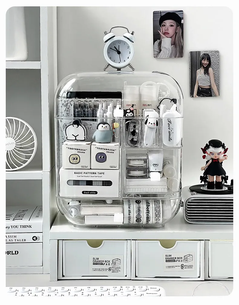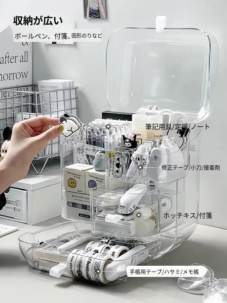 【防塵ベルト付き引き出し】ペン立て文房具収納ボックス・SF1221