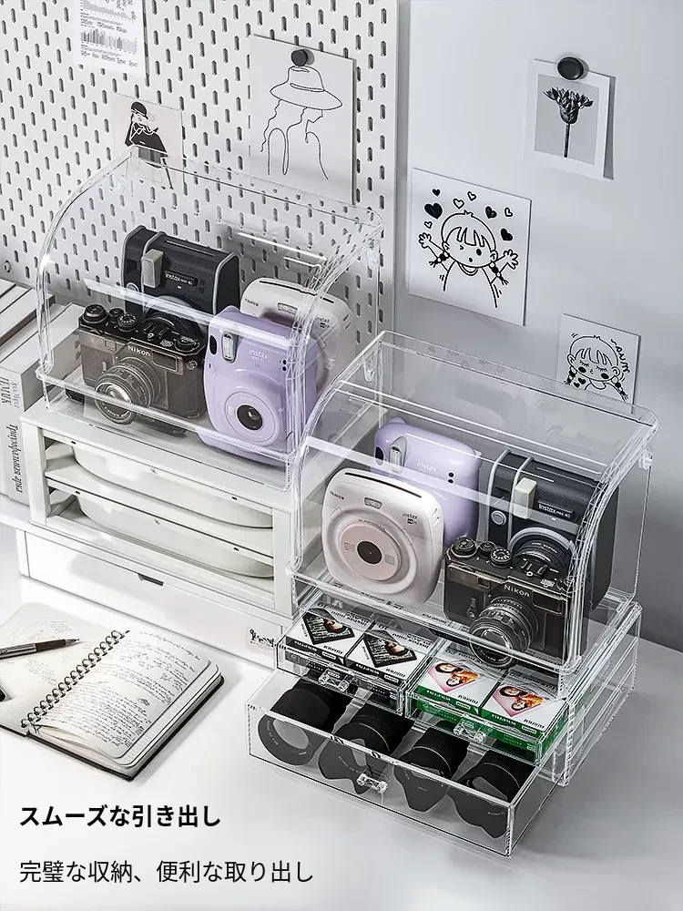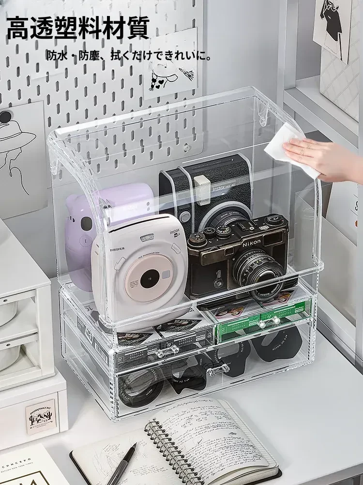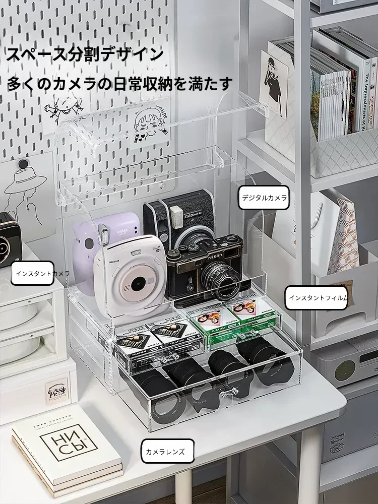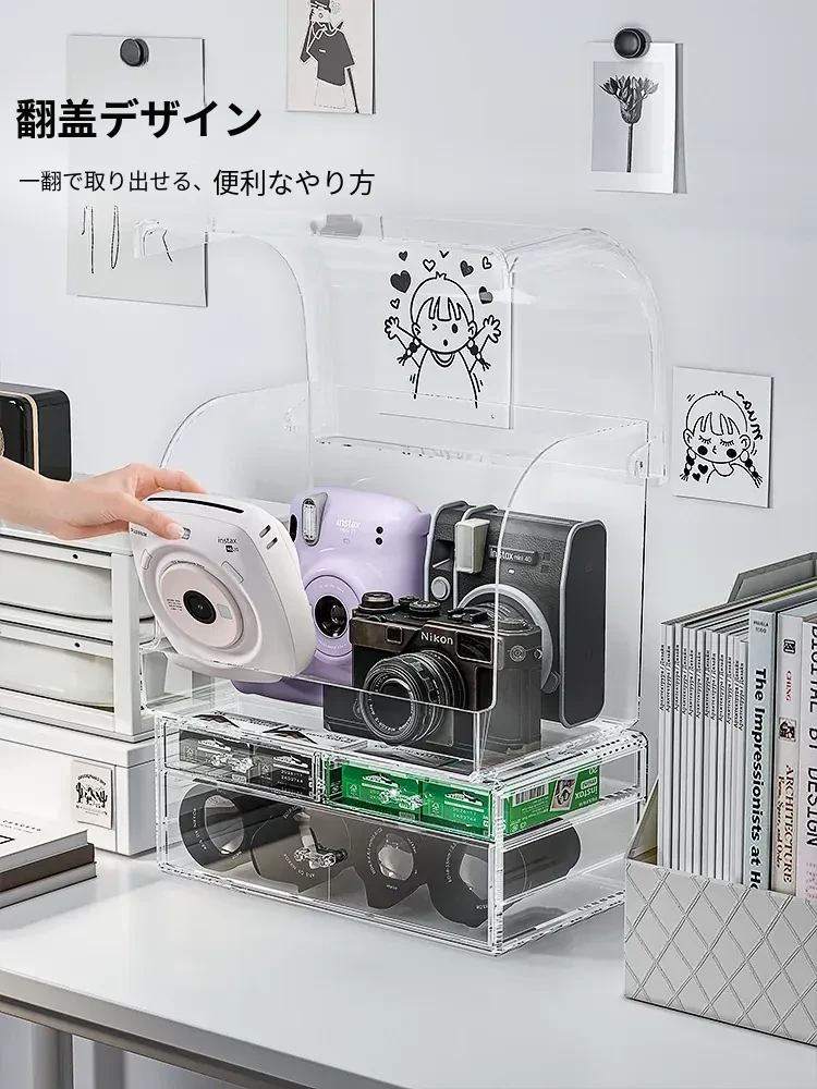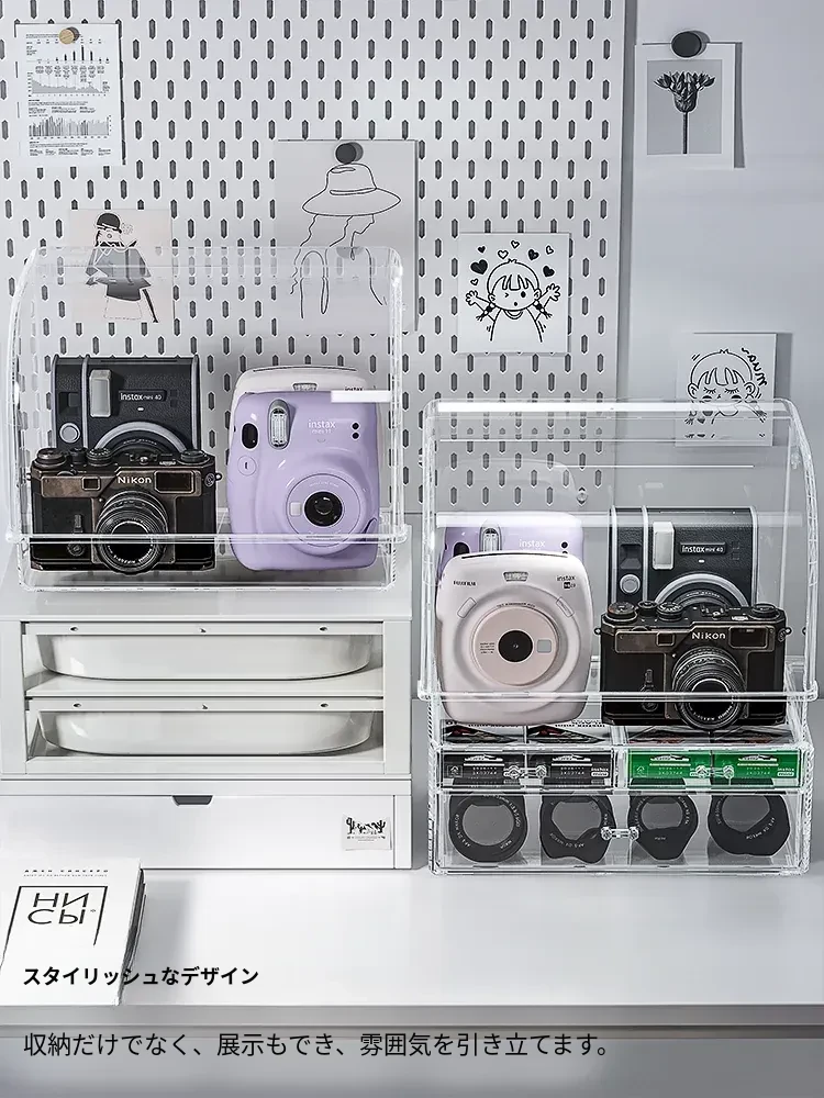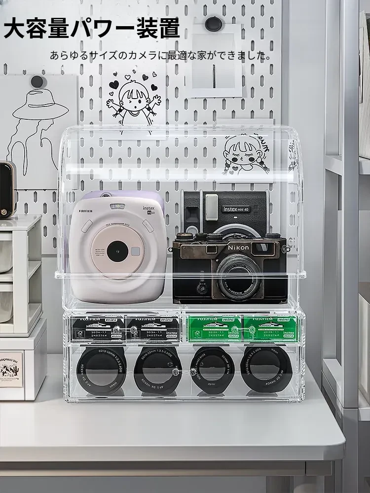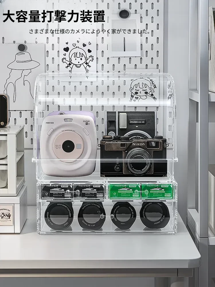 CCDデジタルカメラ収納ボックス 透明フォトプリント防塵キャビネット デスクトップ用 一眼レフレンズアクセサリーと写真用収納ラックで、あなたの撮影ライフをもっと便利に!