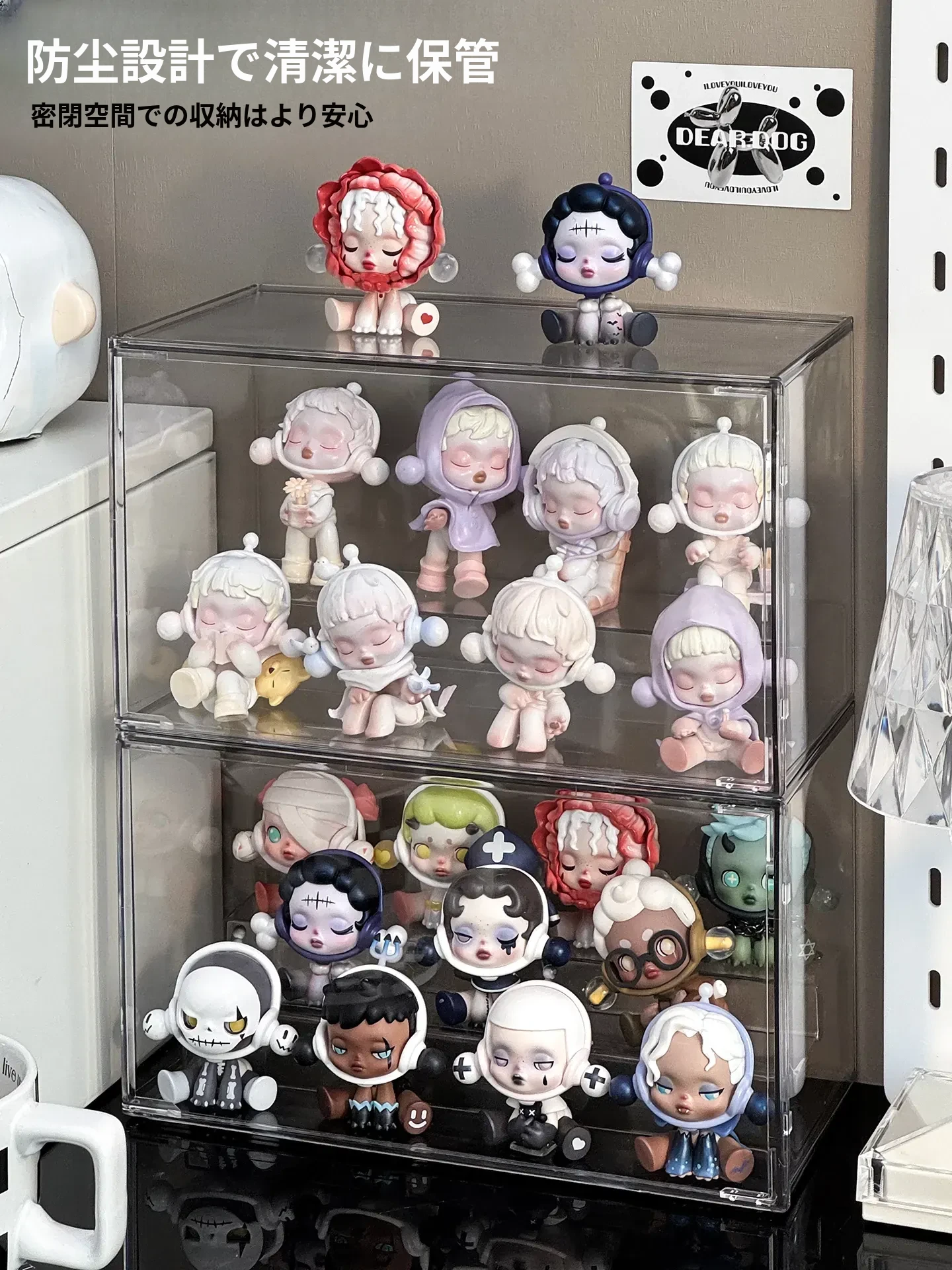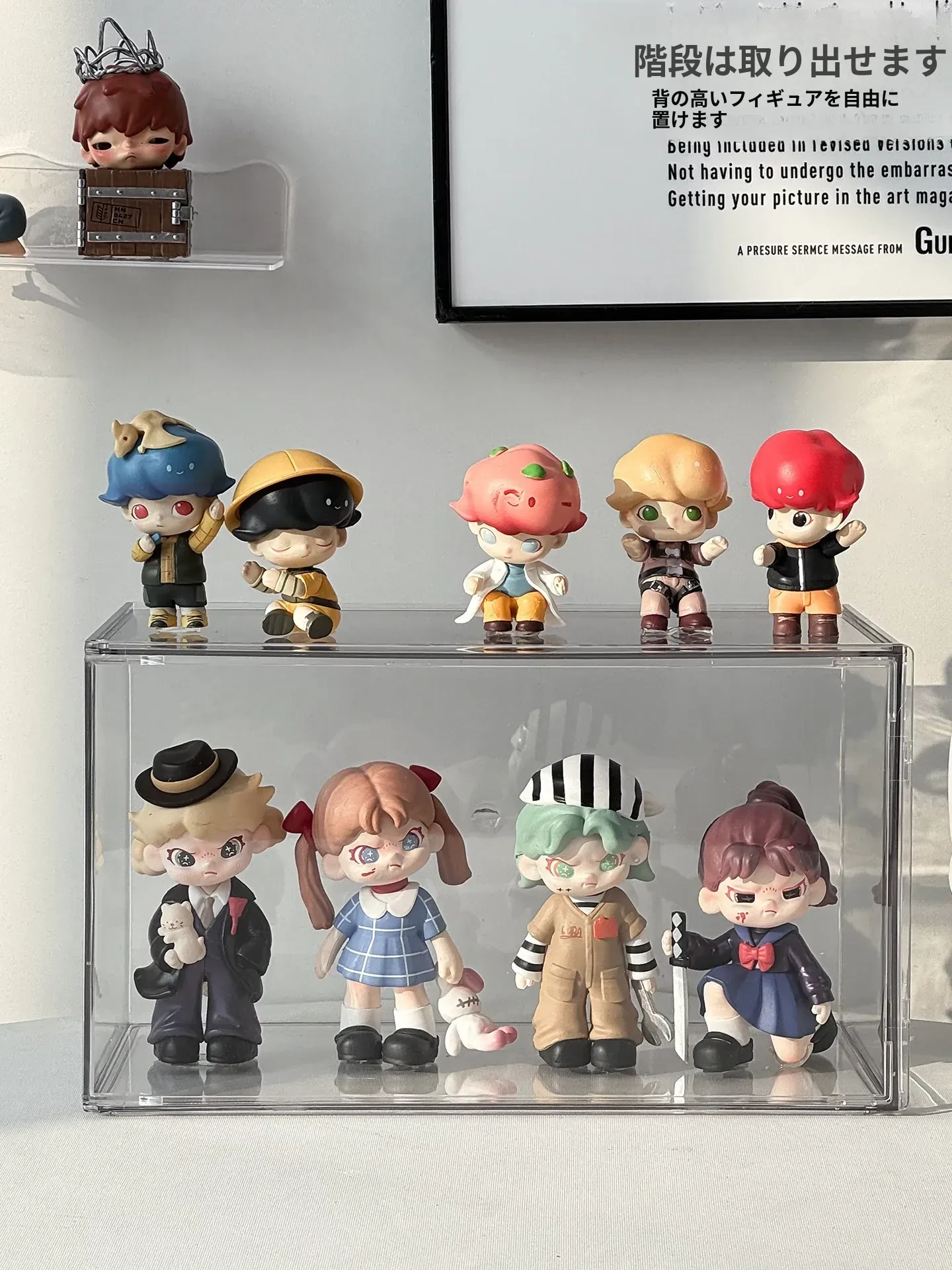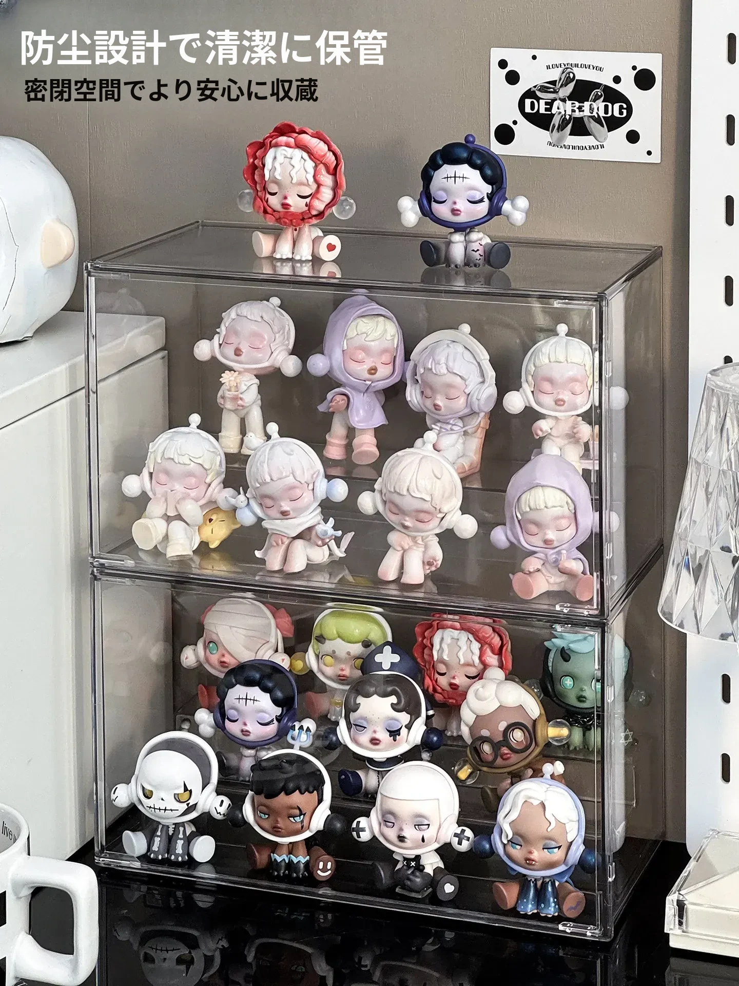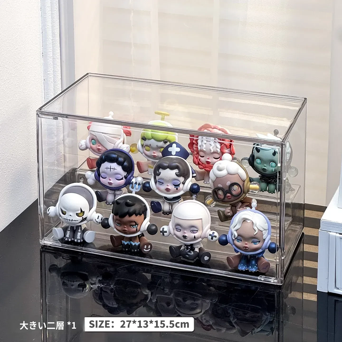 透明アクリル製フィギュアディスプレイケース - SP星人のブラインドボックス収納ボックス!ほこりから守るおしゃれな階段型置物棚で、あなたのコレクションを美しく演出!